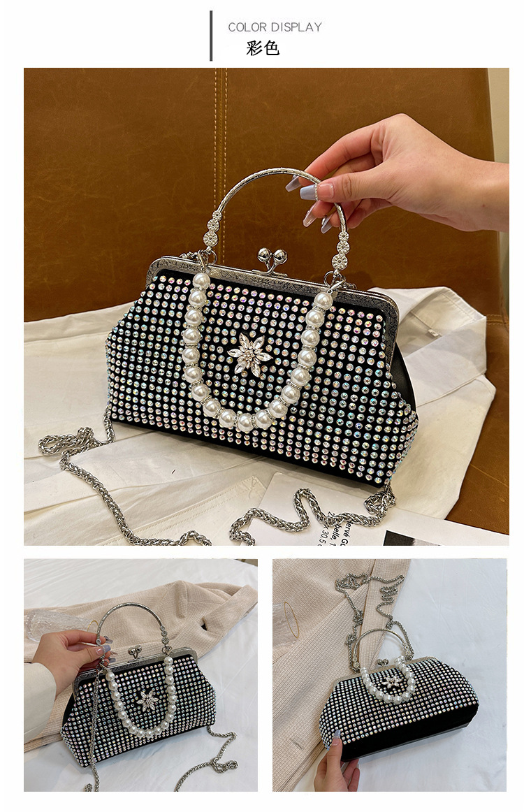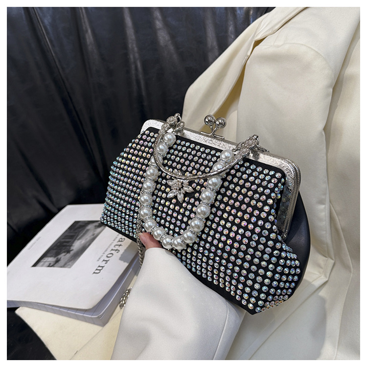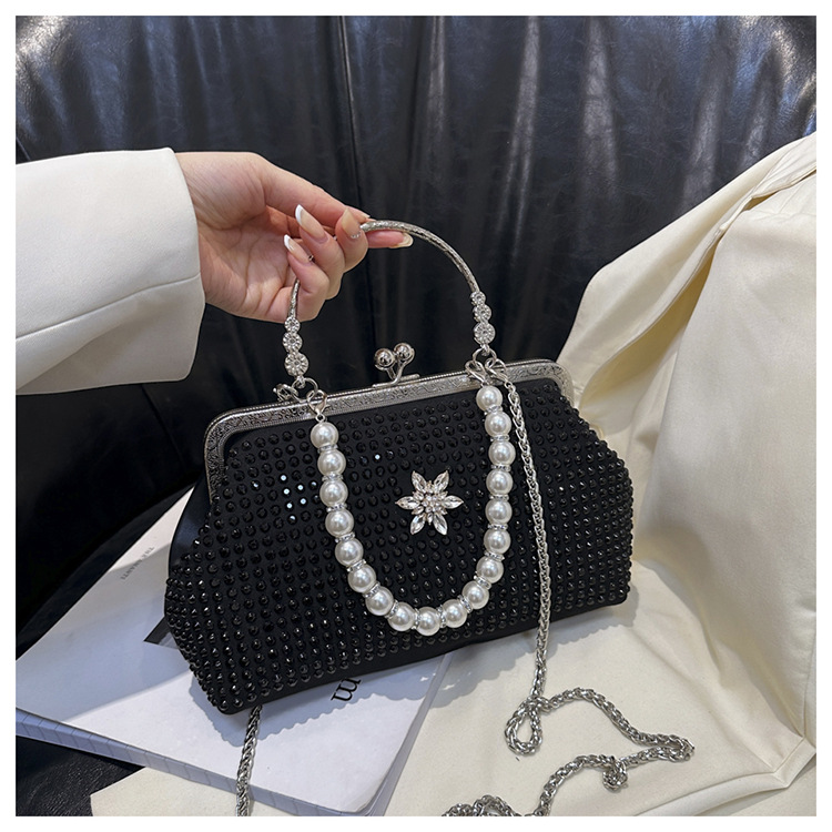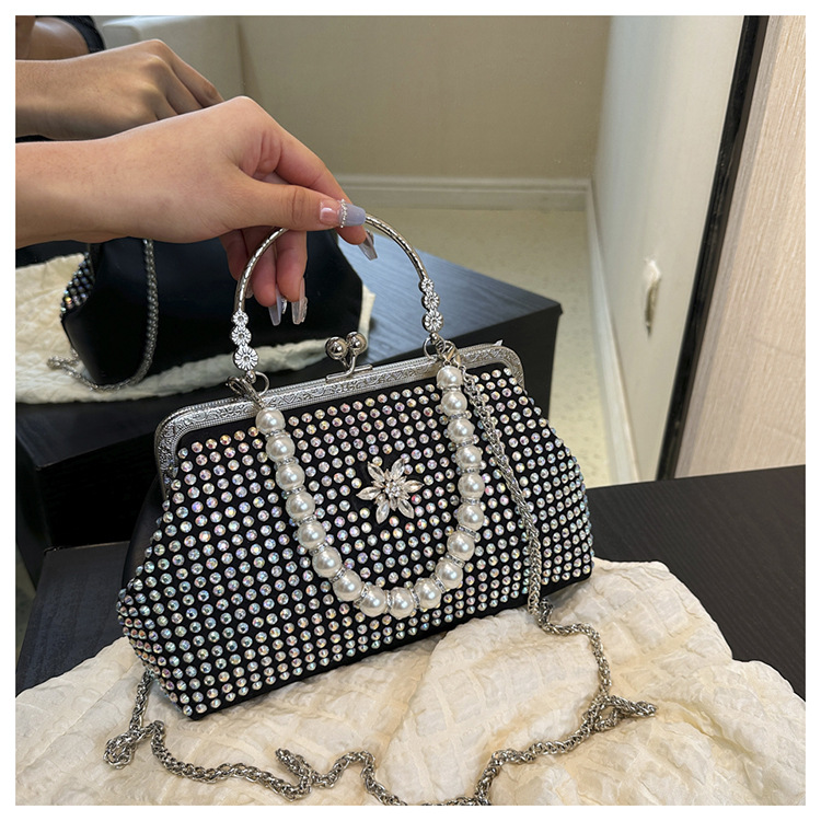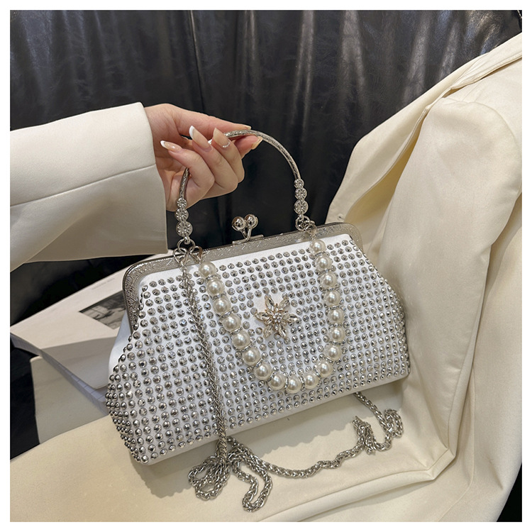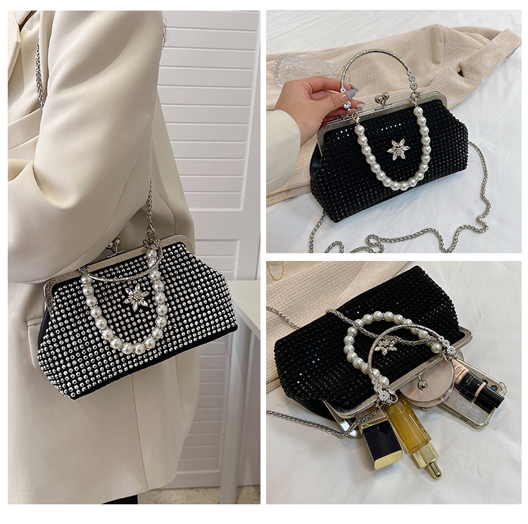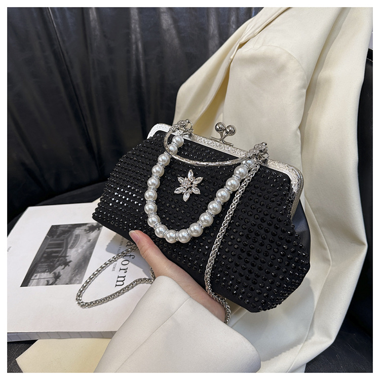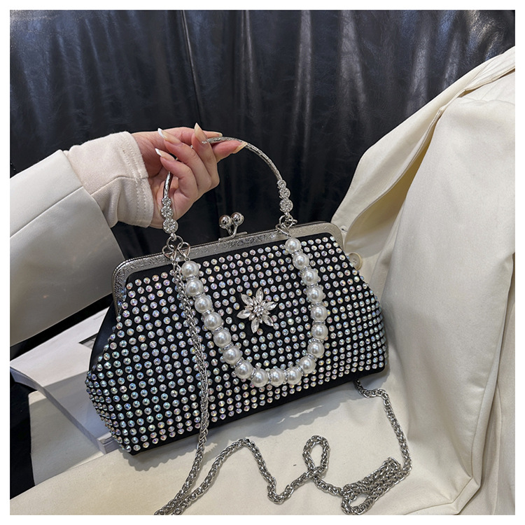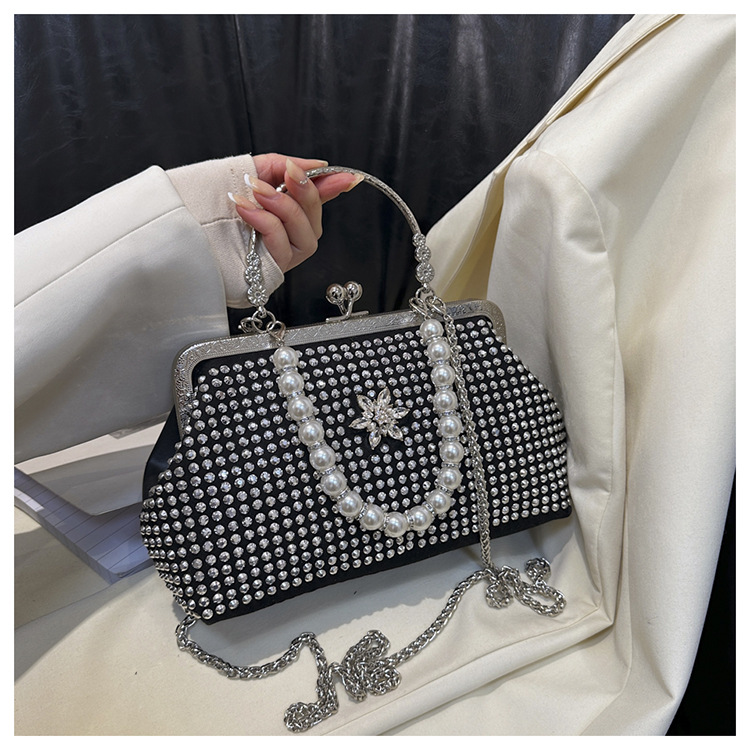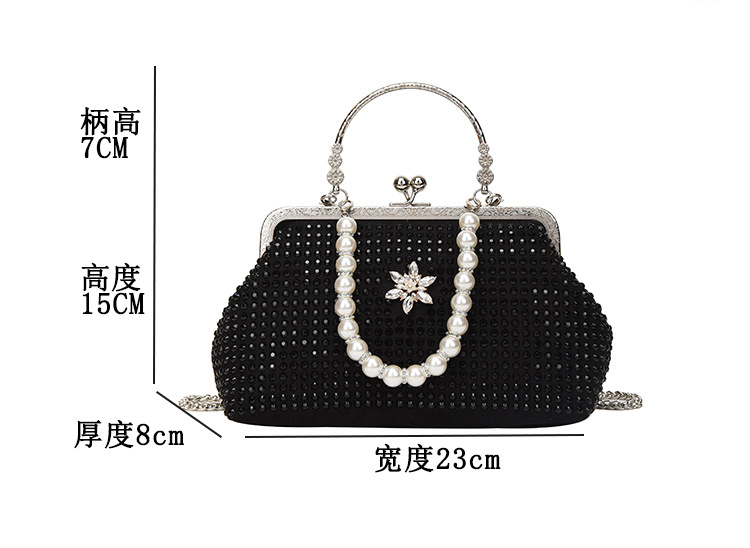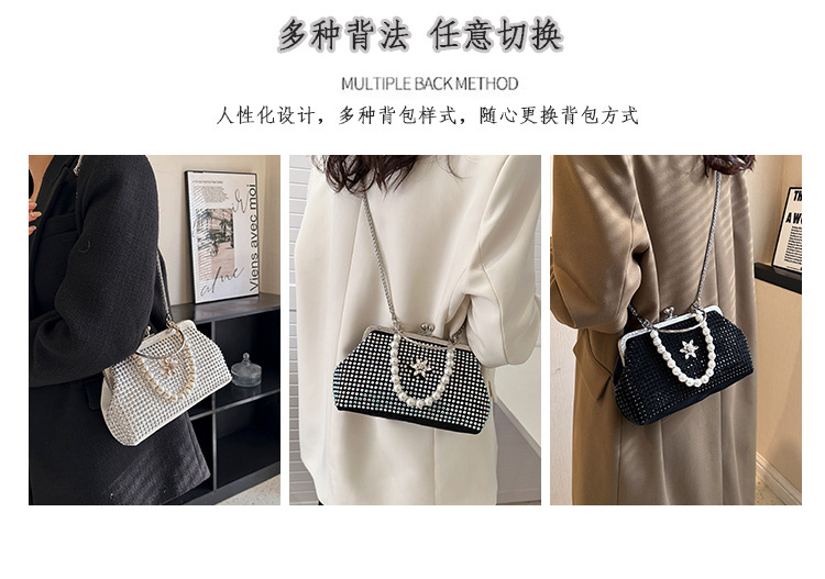 跨境2023新款夹口珍珠晚宴满钻包时尚质感手提斜挎单肩女士贝壳包
