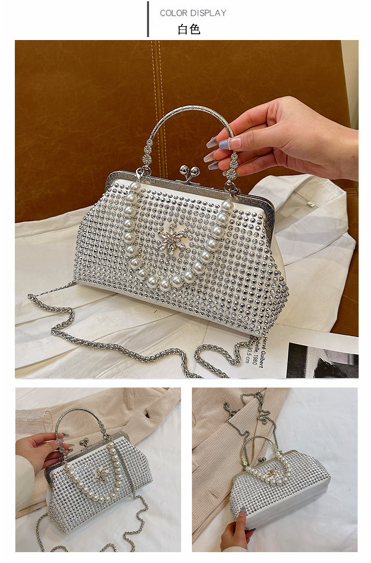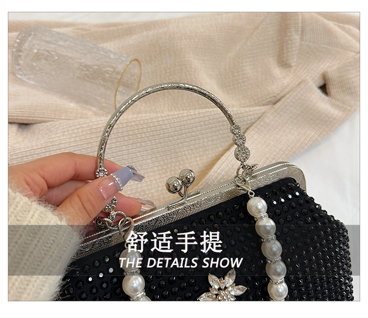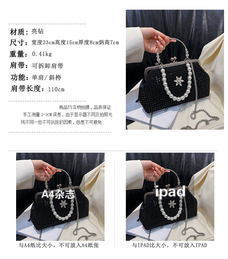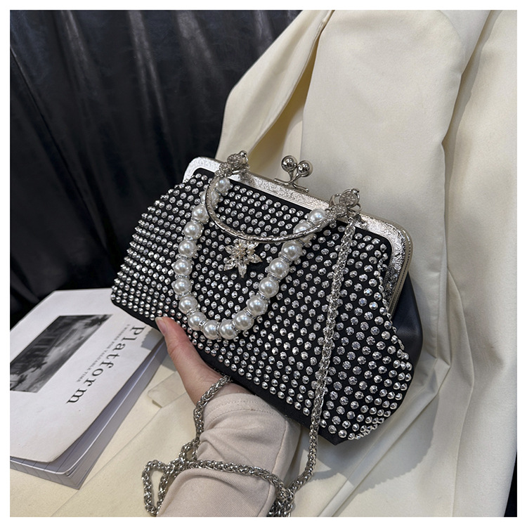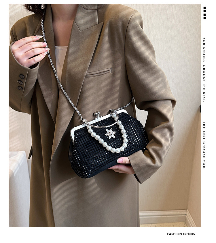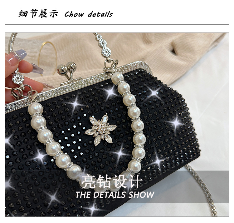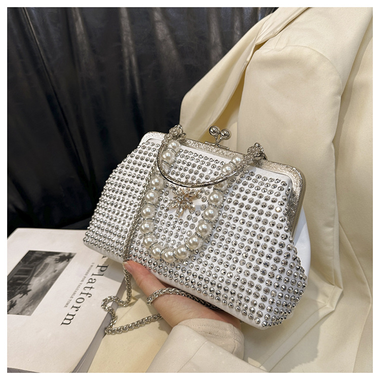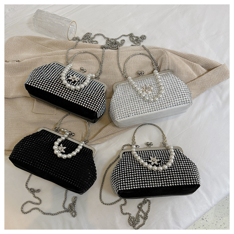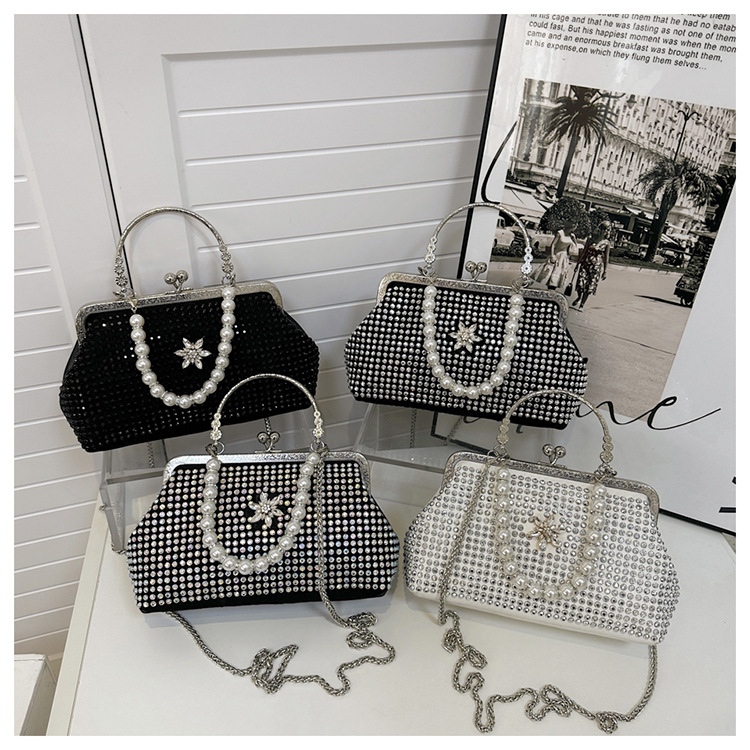 跨境2023新款夹口珍珠晚宴满钻包时尚质感手提斜挎单肩女士贝壳包