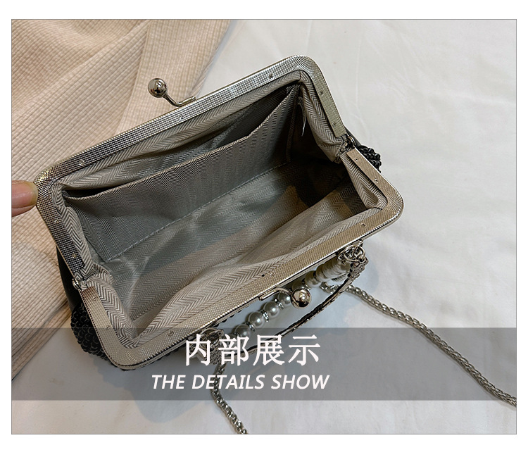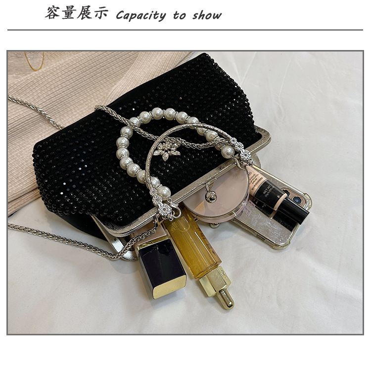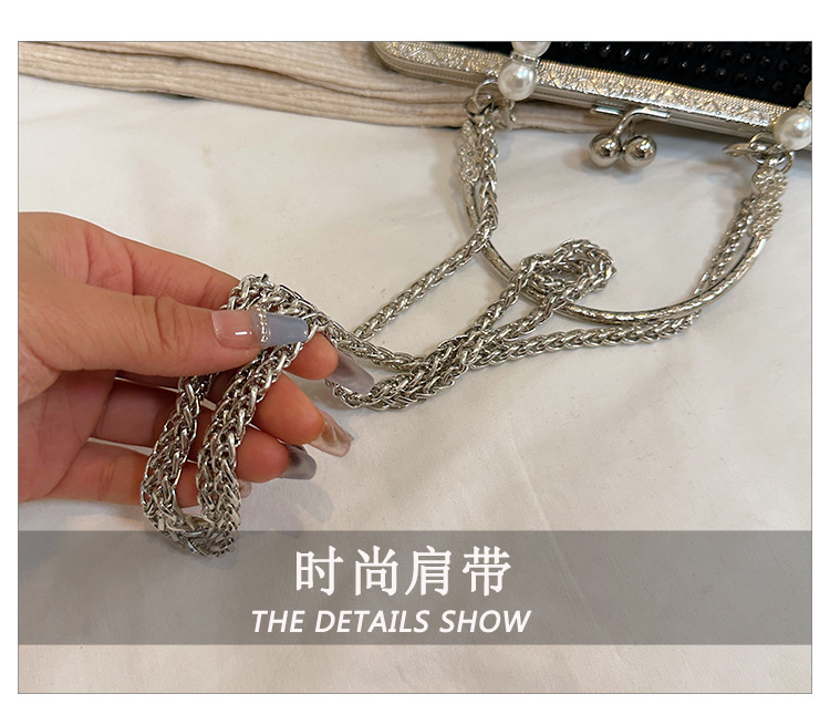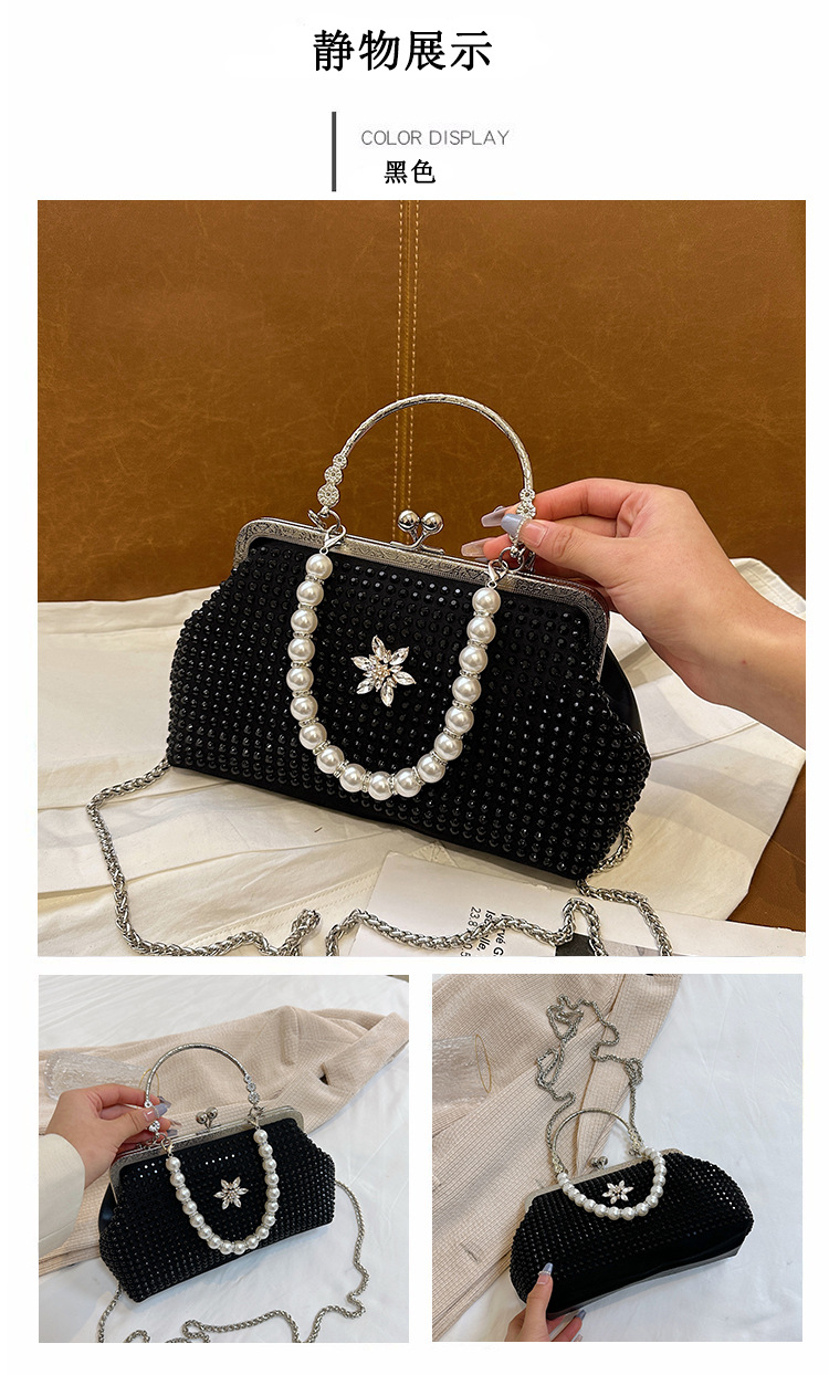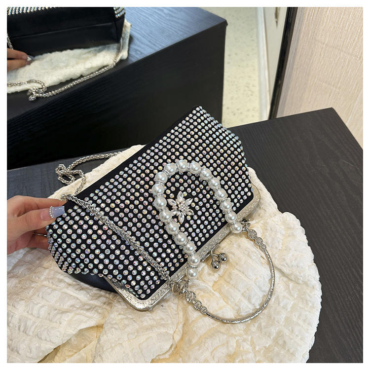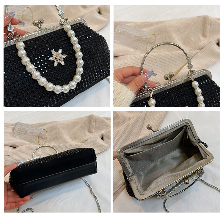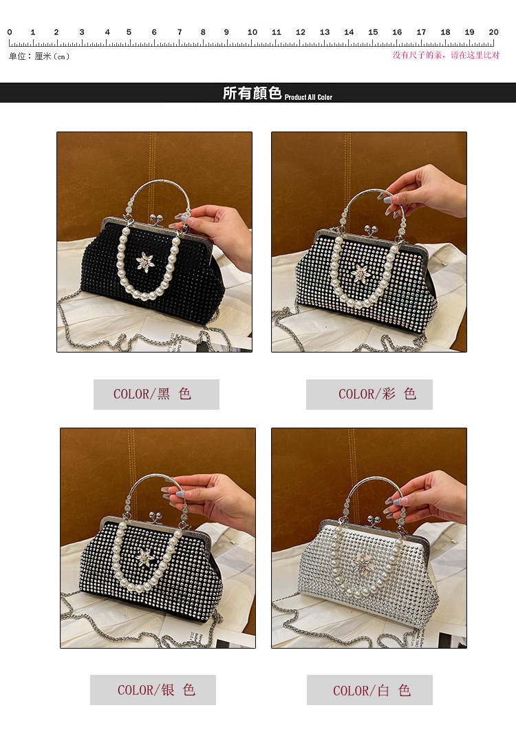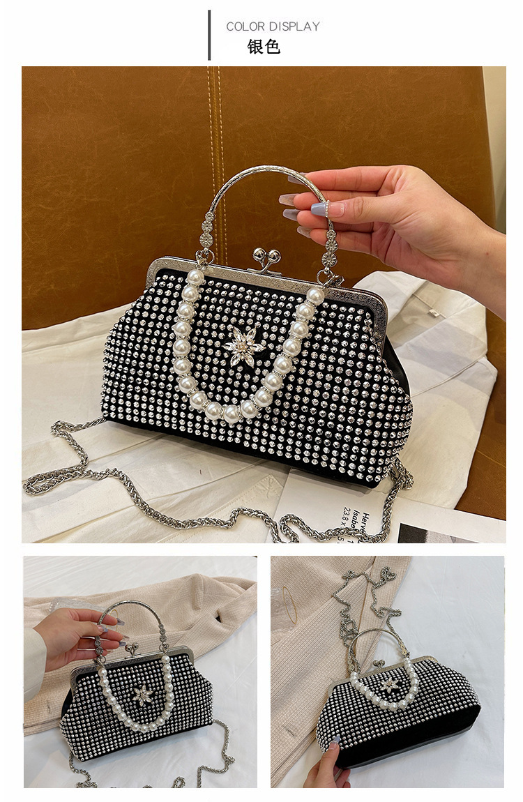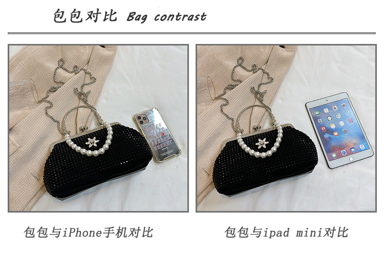 跨境2023新款夹口珍珠晚宴满钻包时尚质感手提斜挎单肩女士贝壳包