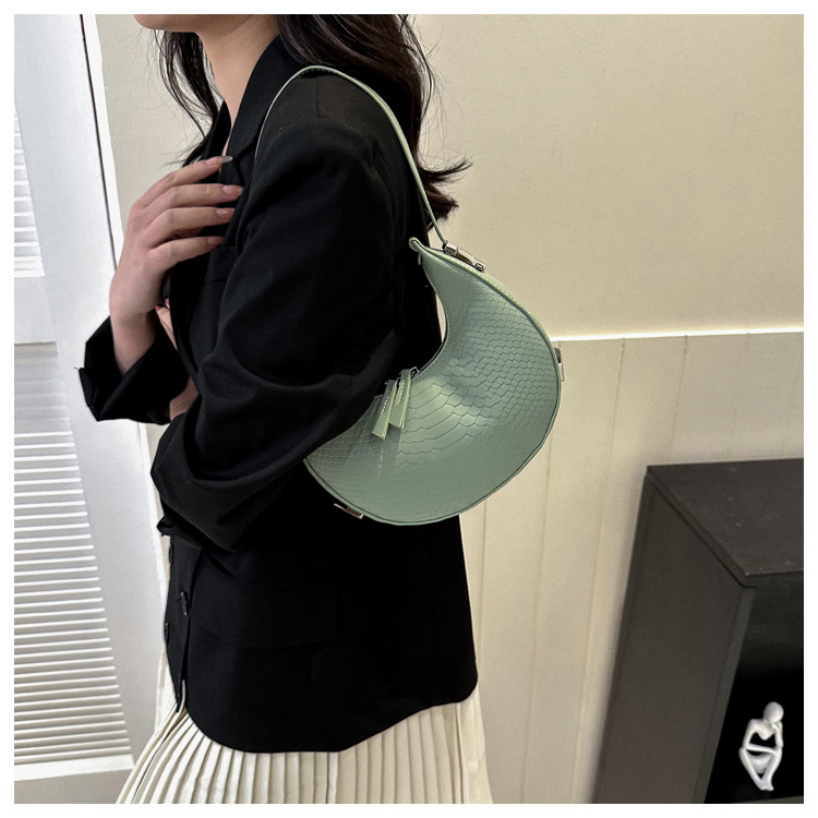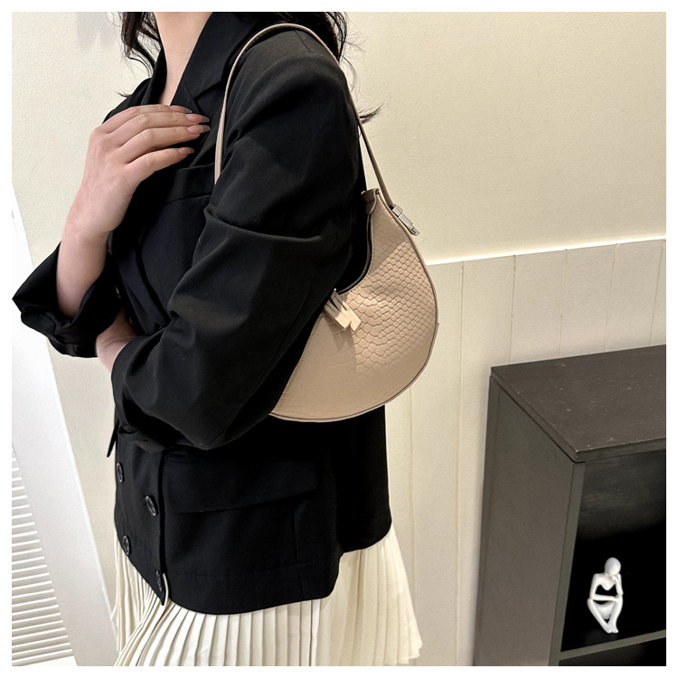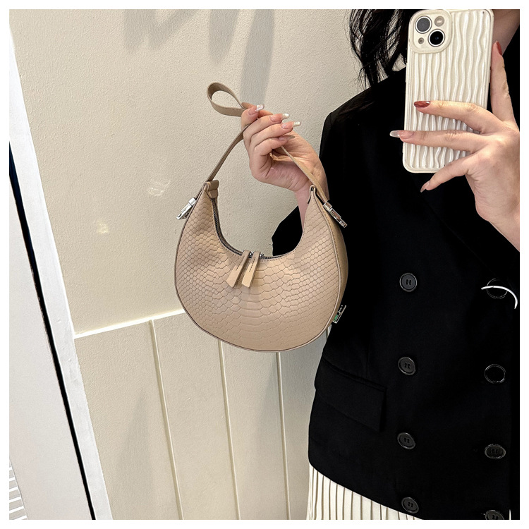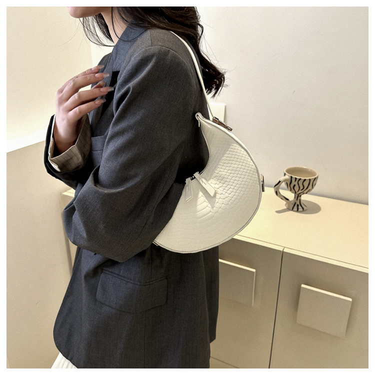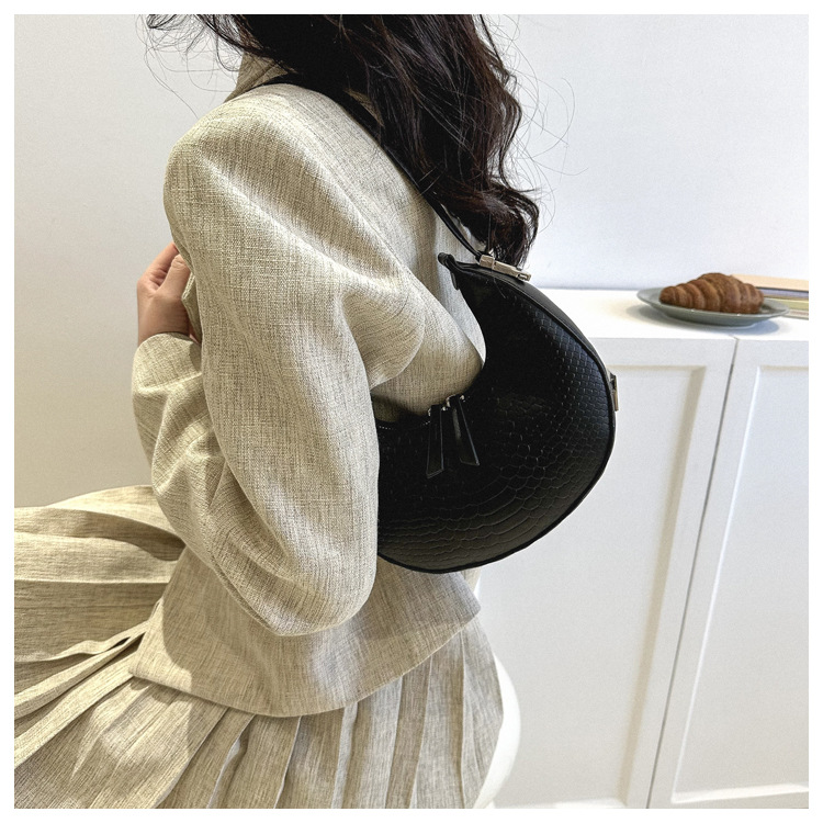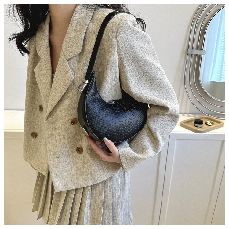 ins风百搭手拎腋下包2023春季时尚高级感百搭鳄鱼纹女士单肩包小