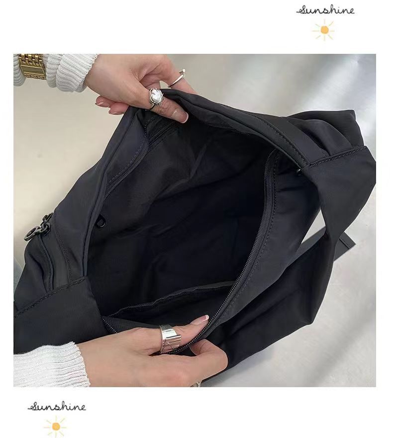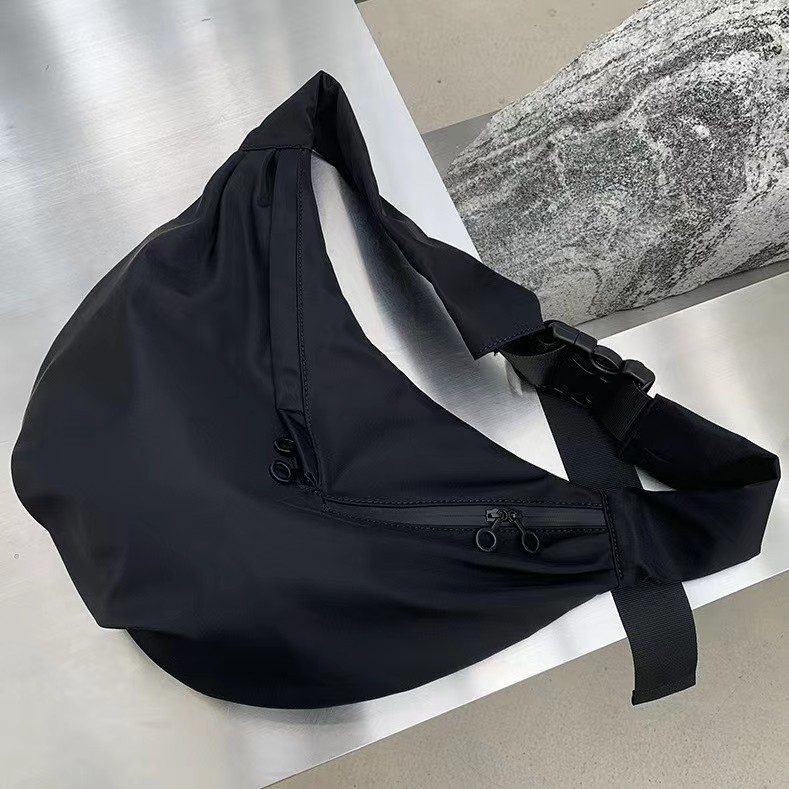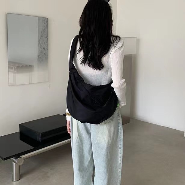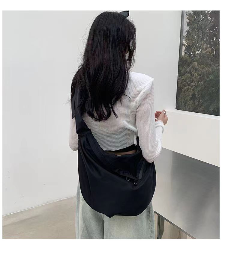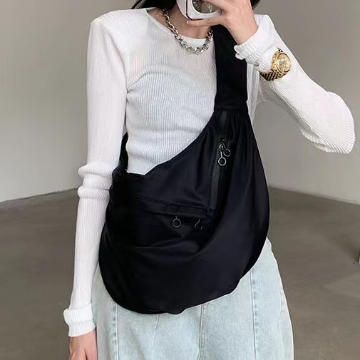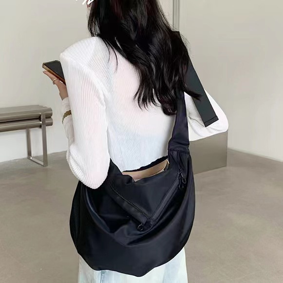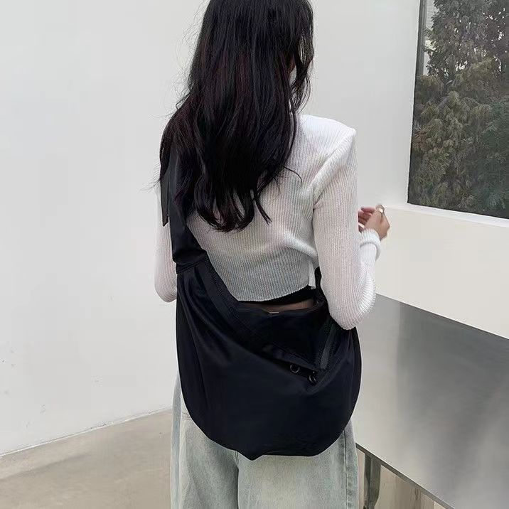 0 Trendy Wide Shoulder Dumpling Bag Diagonal Straddle Bag Men's Oxford Cloth One Shoulder Large Capacity Canvas Bag Women's Black Large Bag