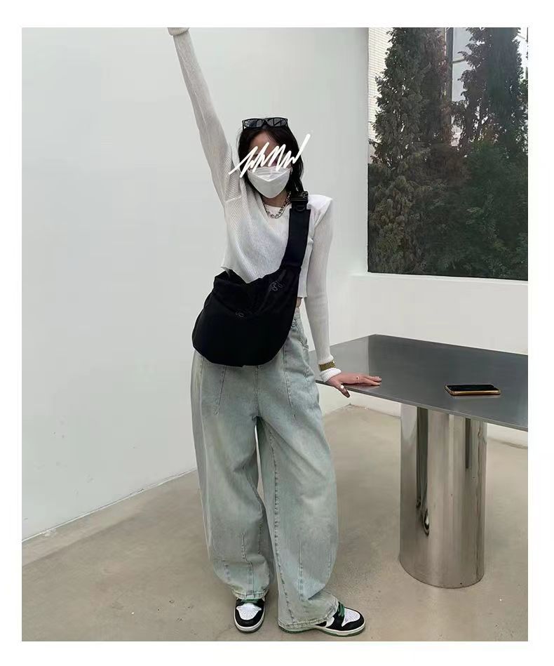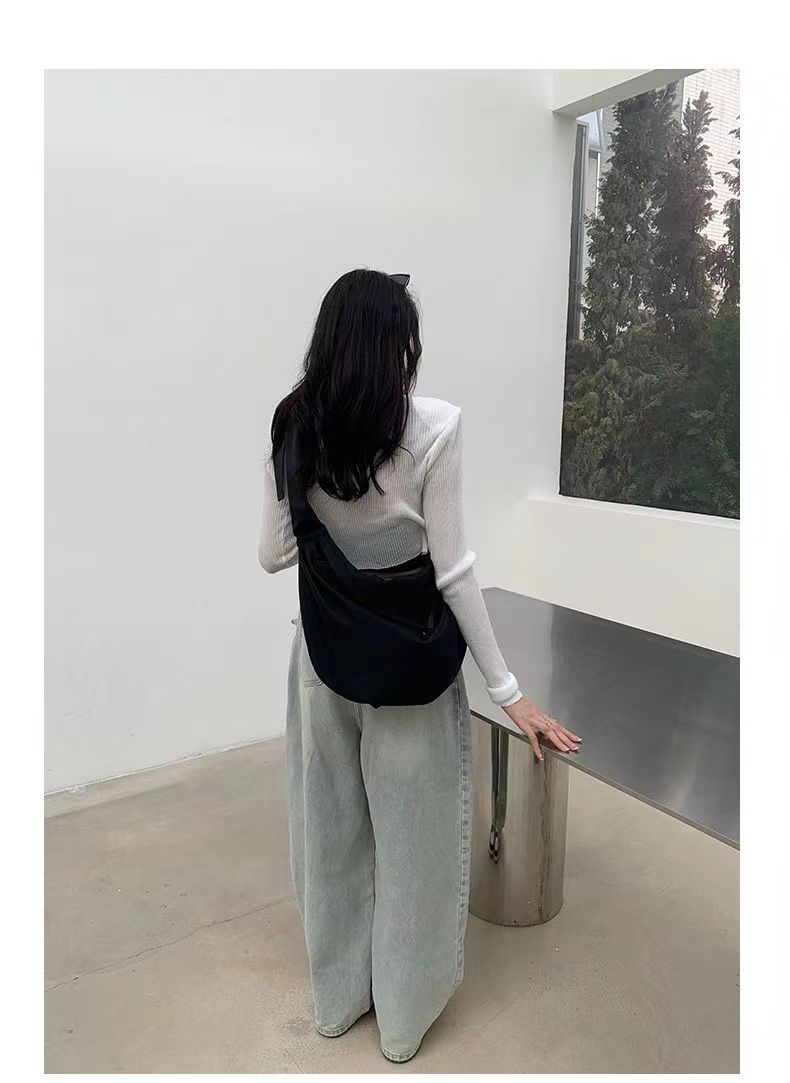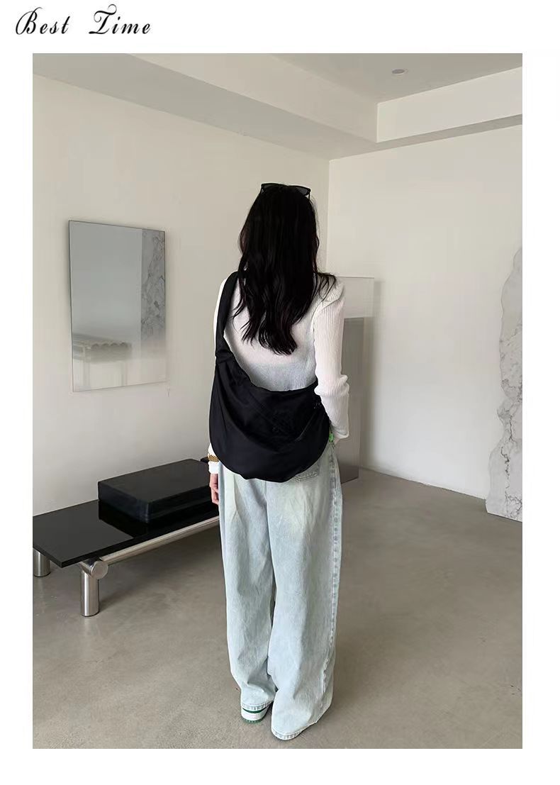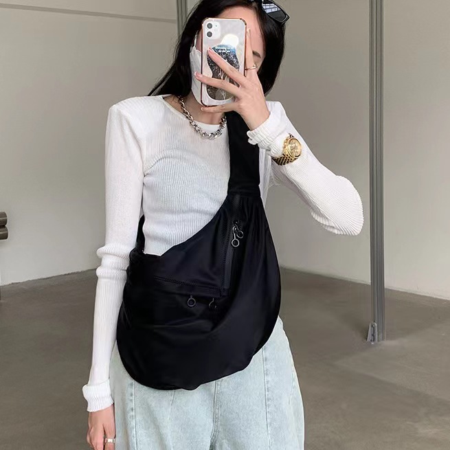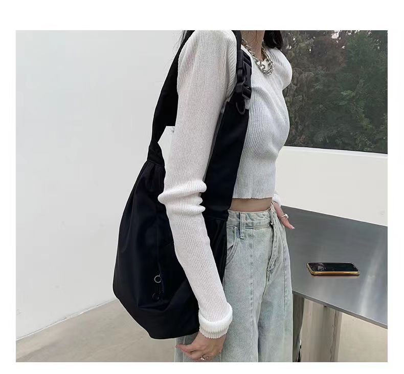 0 Trendy Wide Shoulder Dumpling Bag Diagonal Straddle Bag Men's Oxford Cloth One Shoulder Large Capacity Canvas Bag Women's Black Large Bag