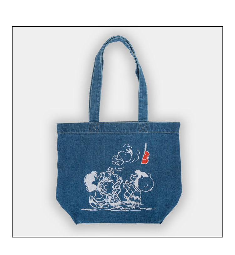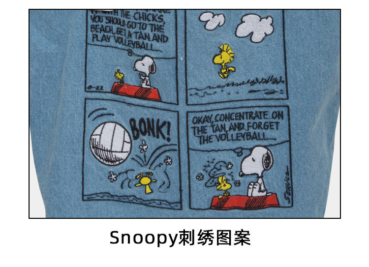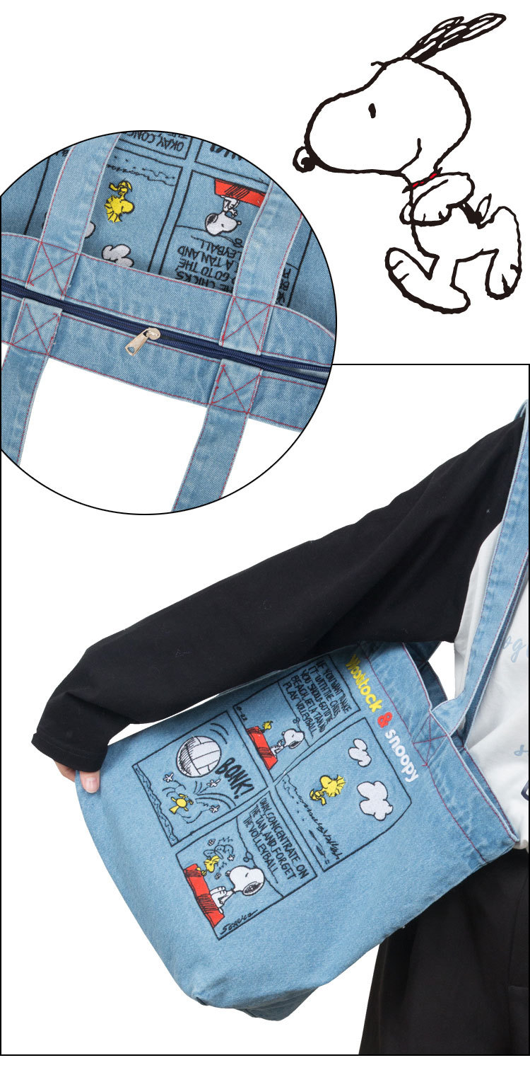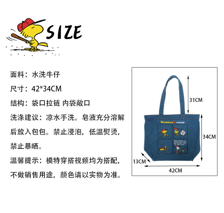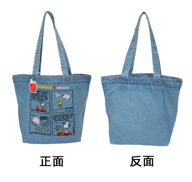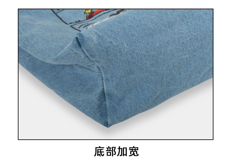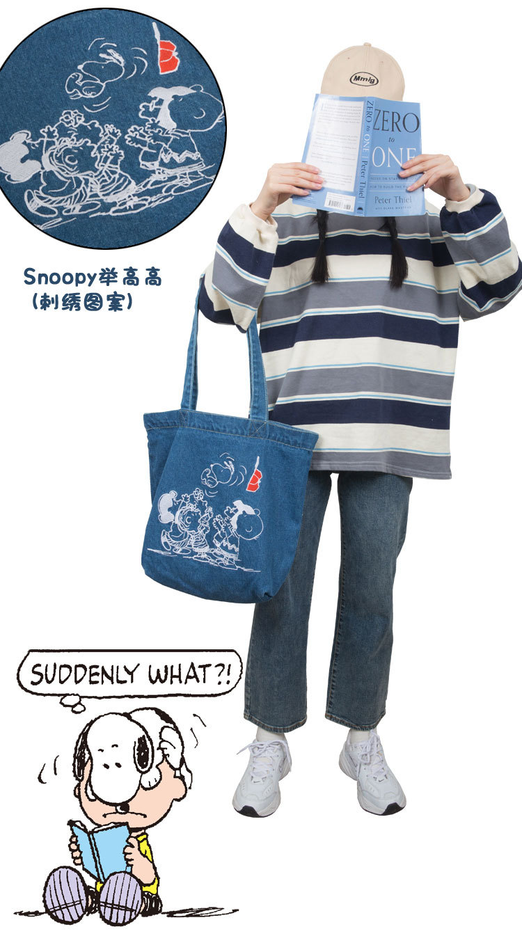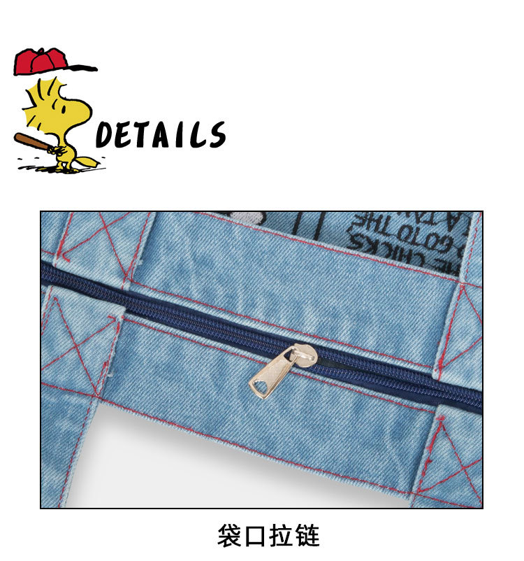 Official genuine Snoopy embroidered denim tote bag with artistic and cool zipper design, versatile and portable shoulder bag