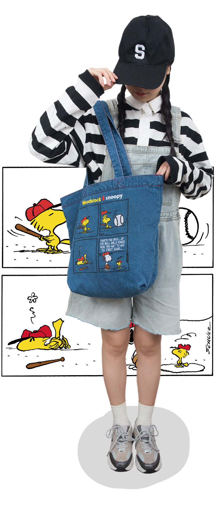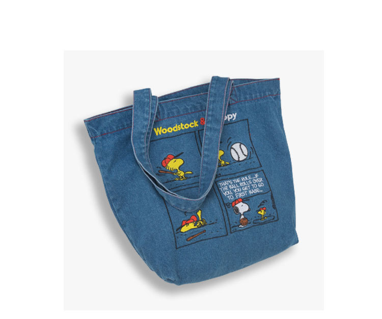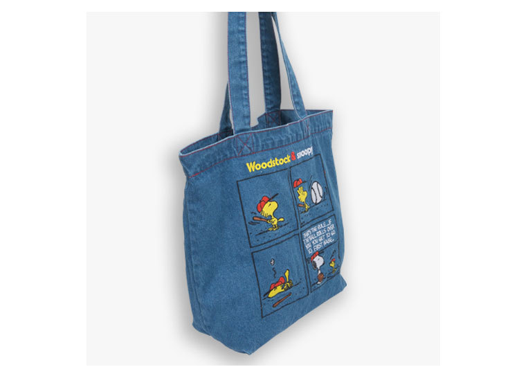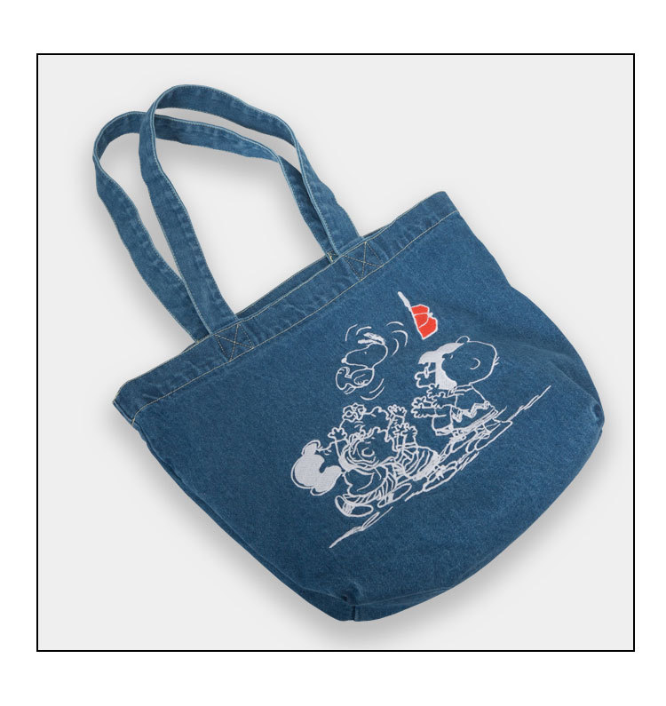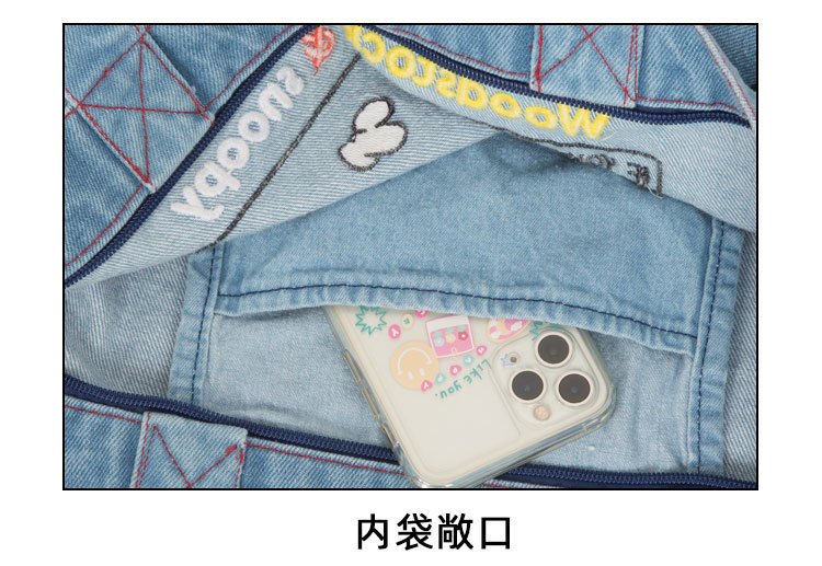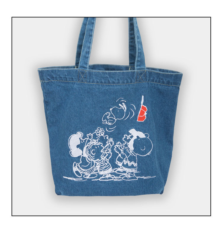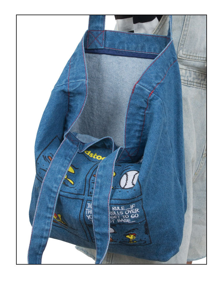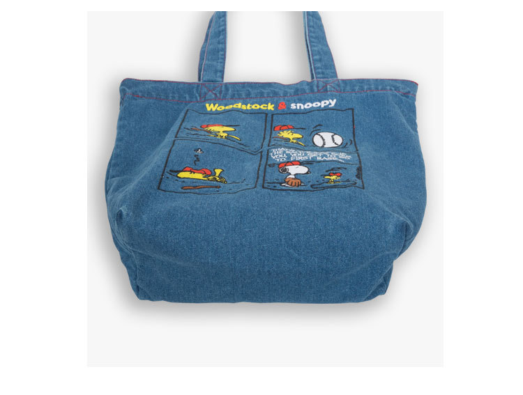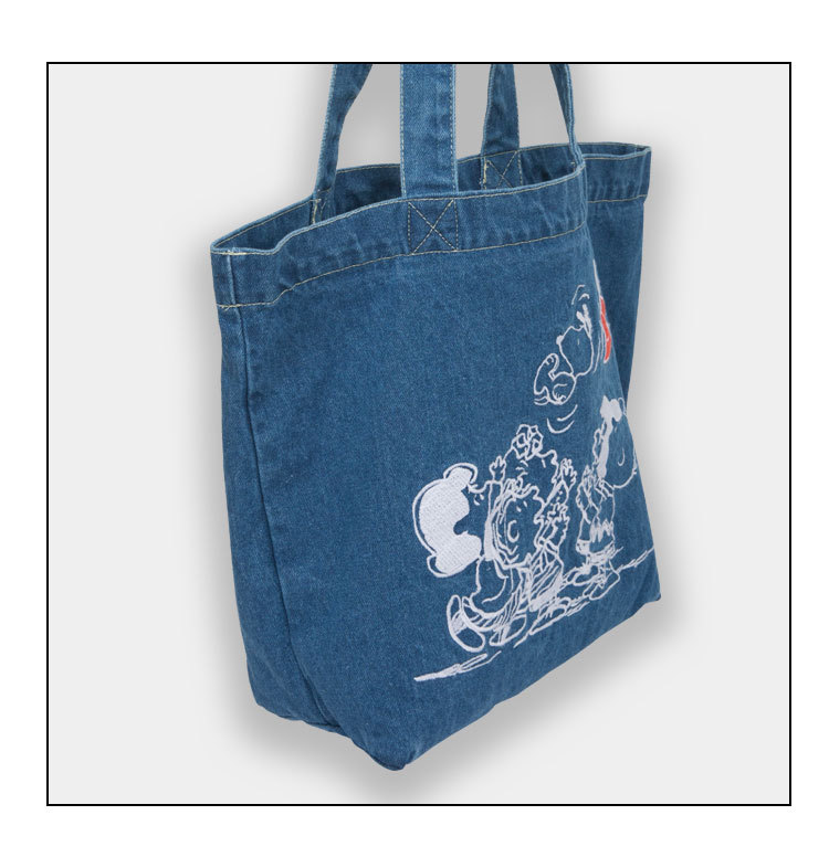Official genuine Snoopy embroidered denim tote bag with artistic and cool zipper design, versatile and portable shoulder bag