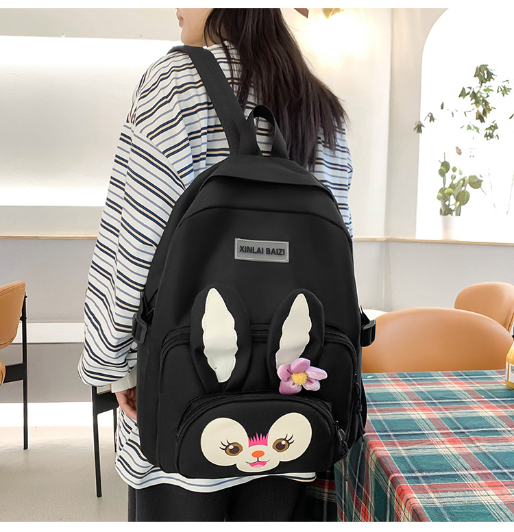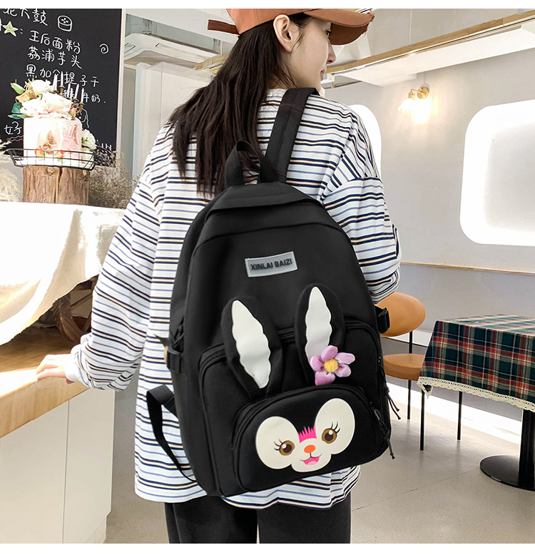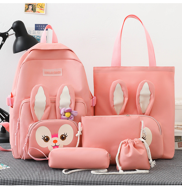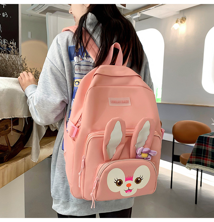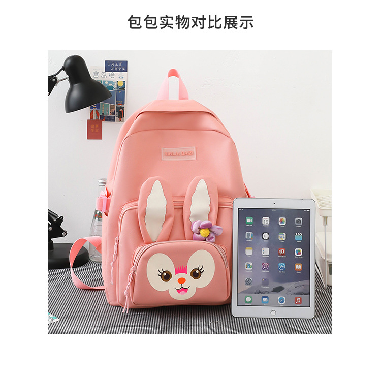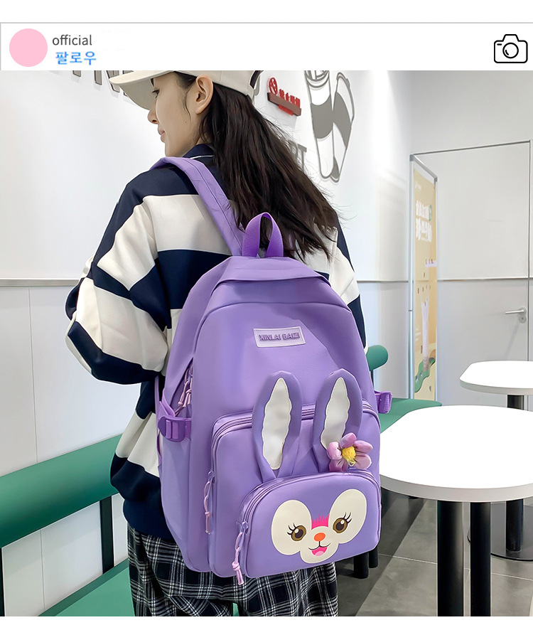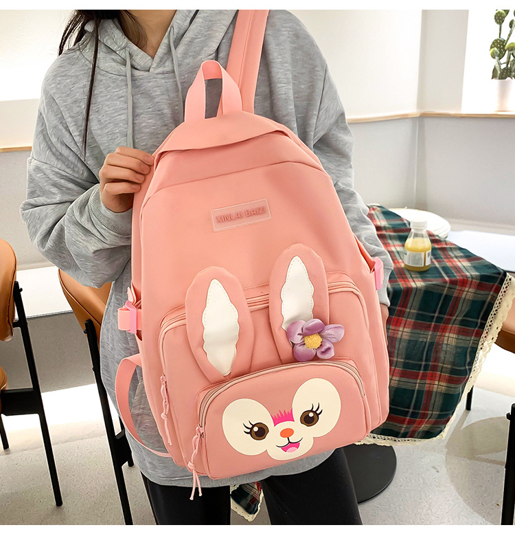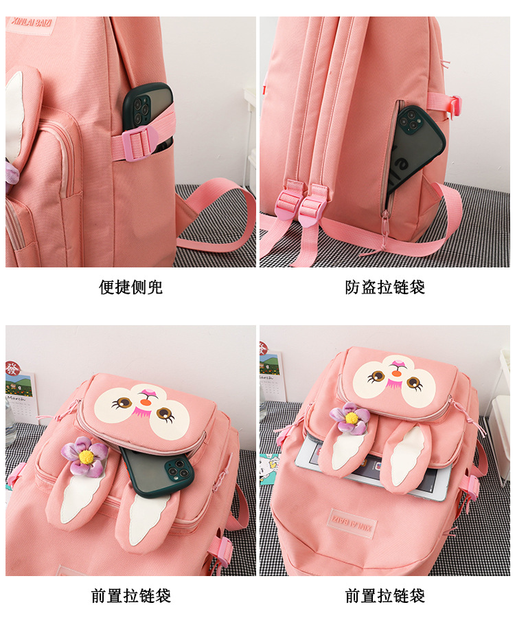 Cute and Cute Bunny Middle School Student Schoolbag Academy Style Middle School High School Student Backpack Set of Four Pieces for Elementary School Students