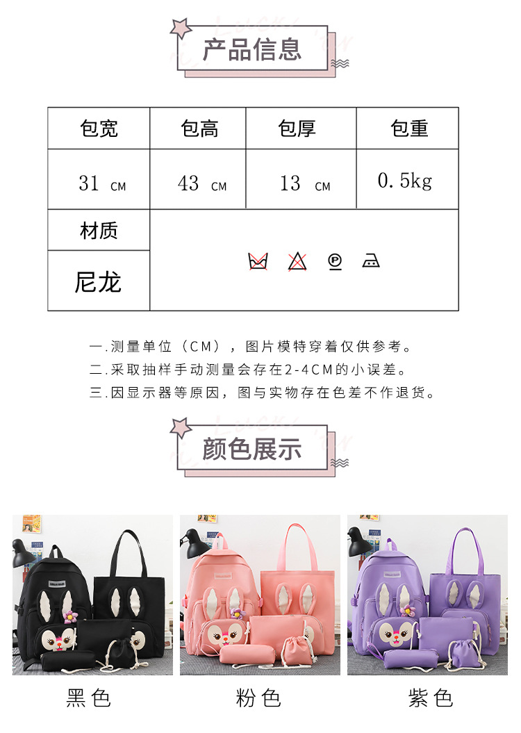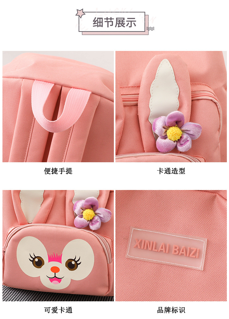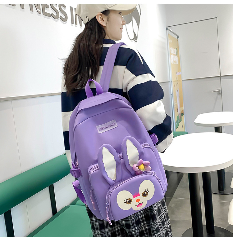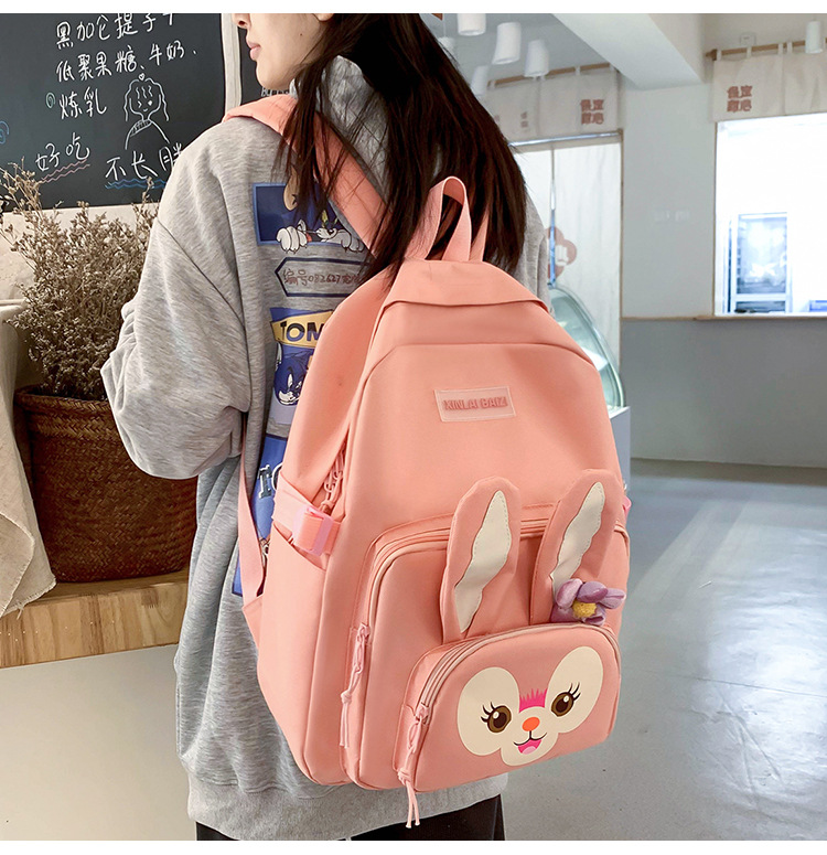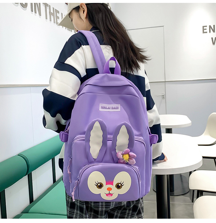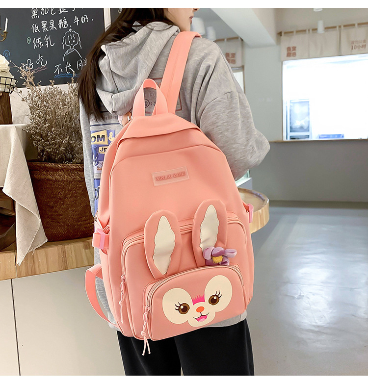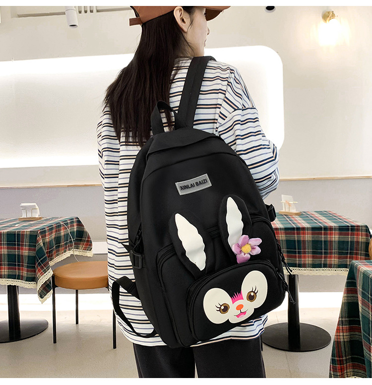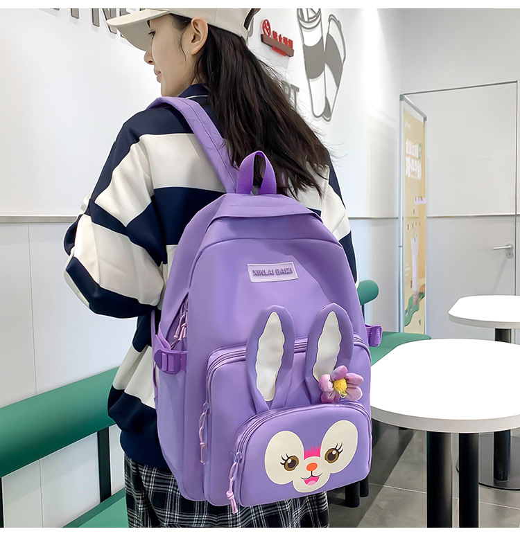 Cute and Cute Bunny Middle School Student Schoolbag Academy Style Middle School High School Student Backpack Set of Four Pieces for Elementary School Students