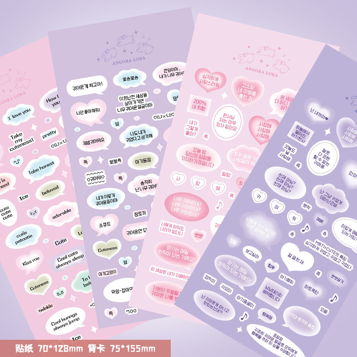 Pink Girl Heart Korean English Text Dialogs Gukachu Handheld Tent Stickers Cloud Cute Heart Note Label Collage
