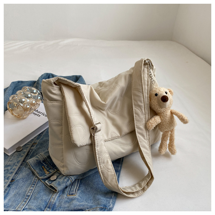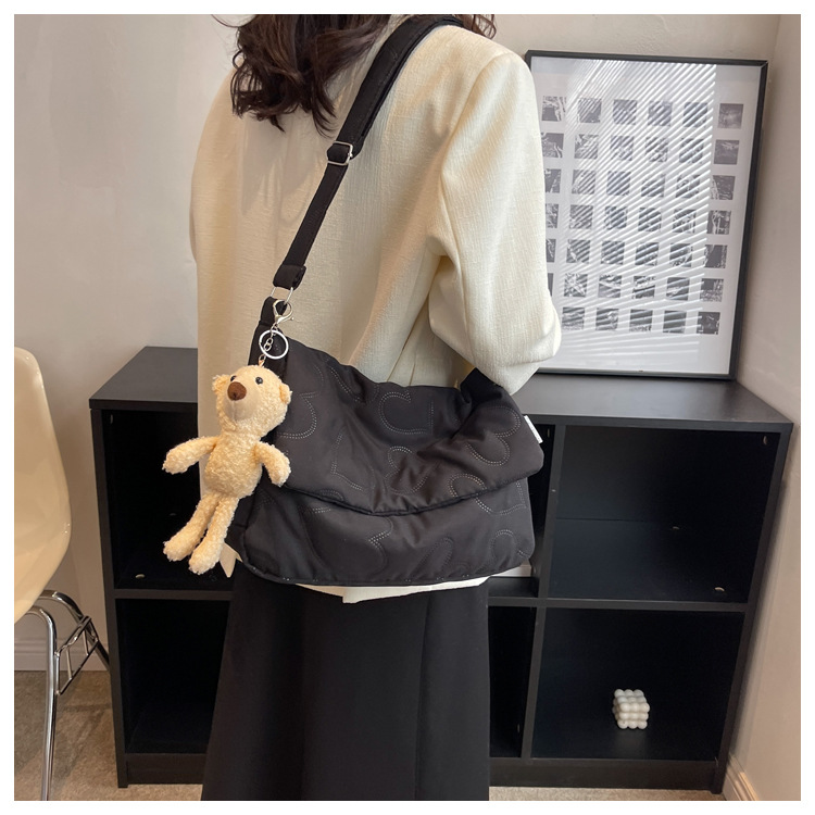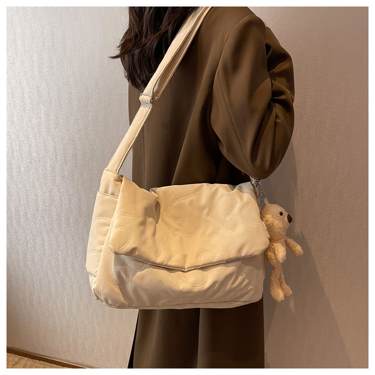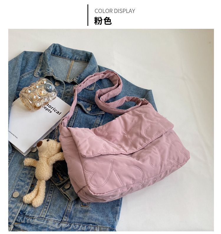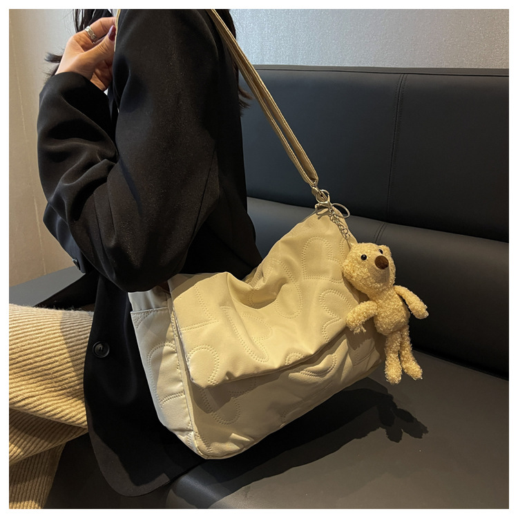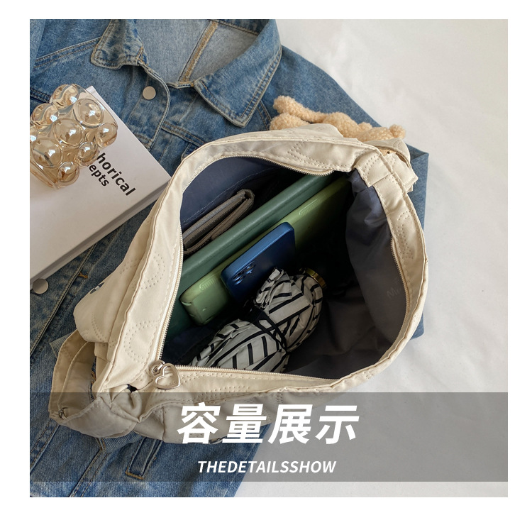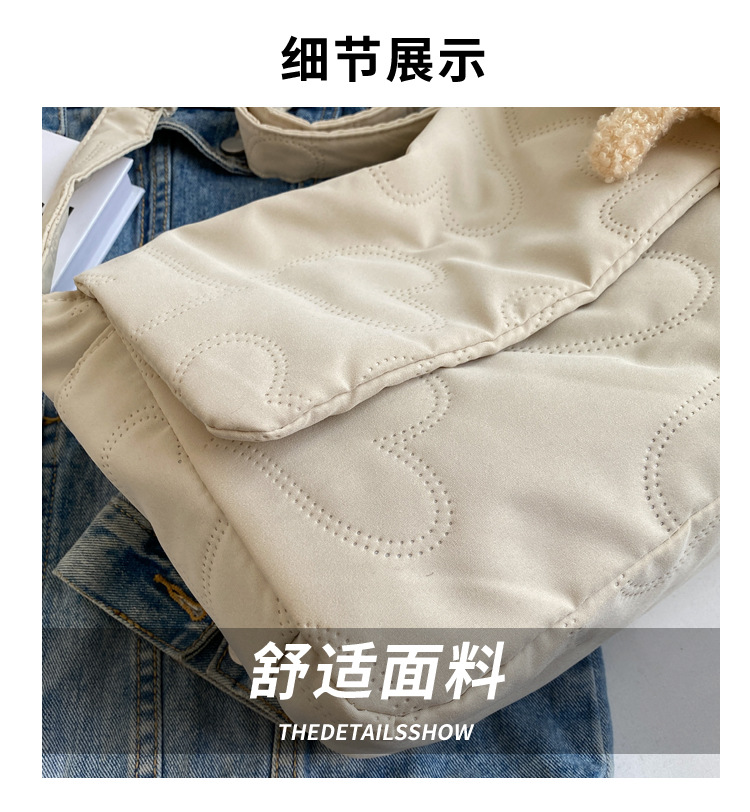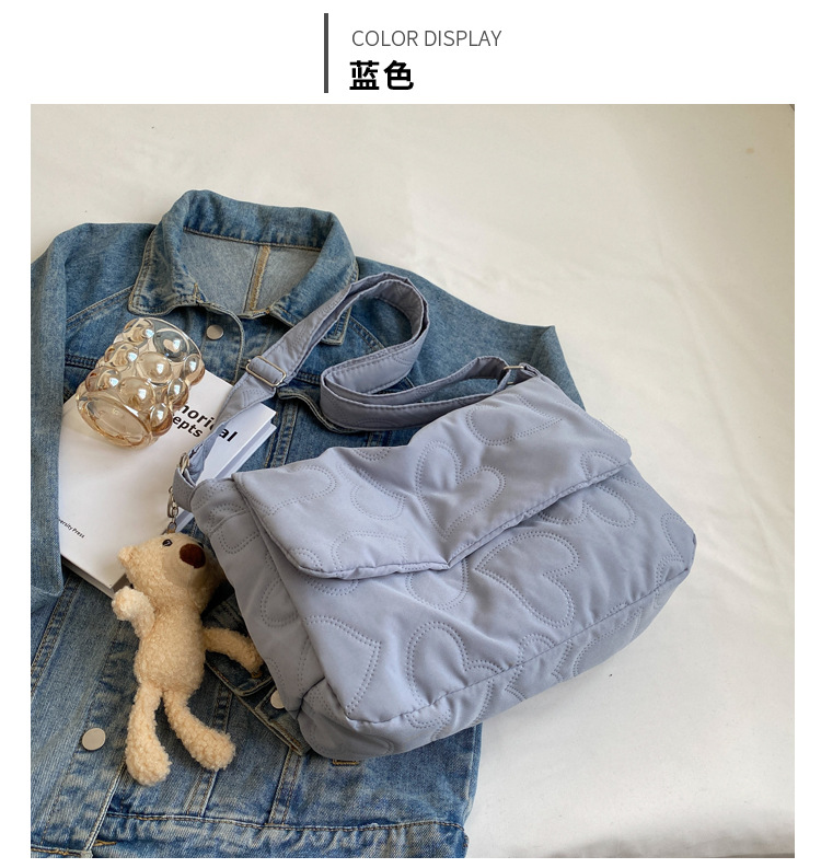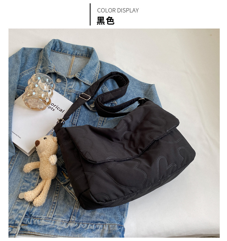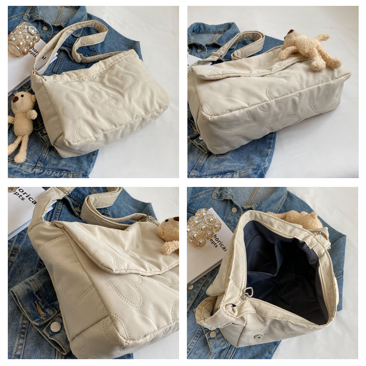 ins风大容量包包女2023新款潮纯色心绣线单肩包文艺学生斜挎包