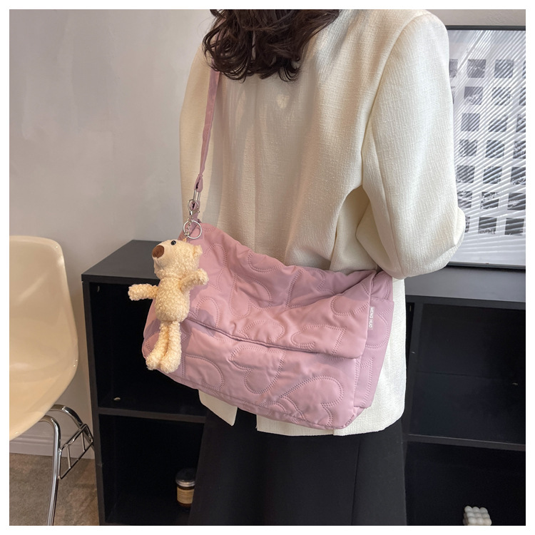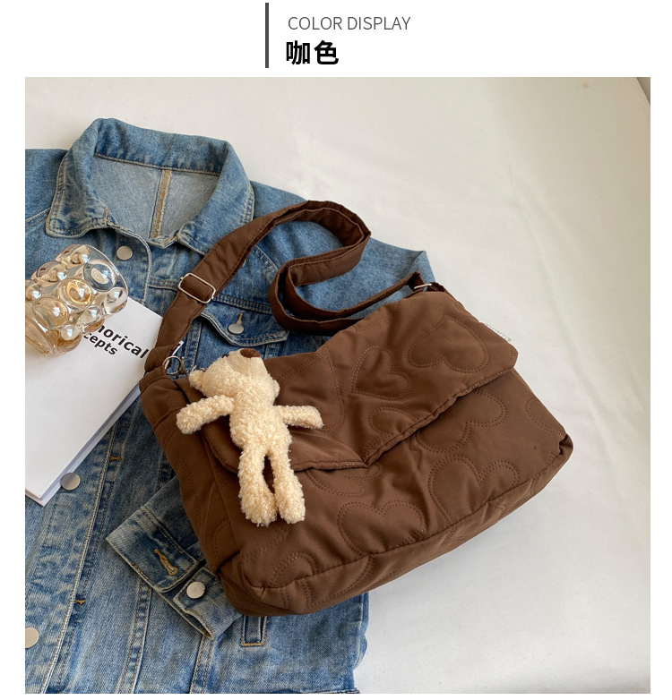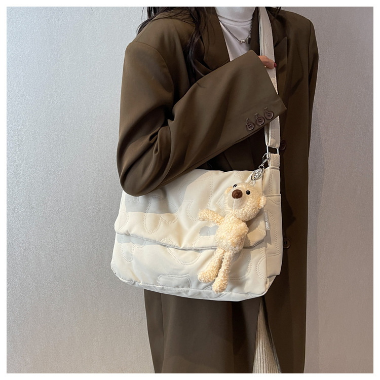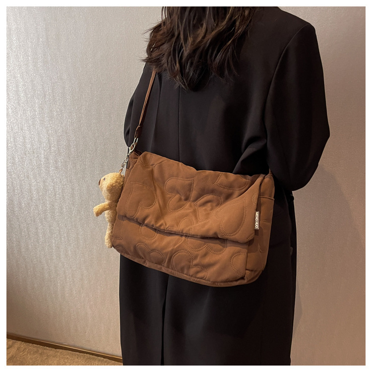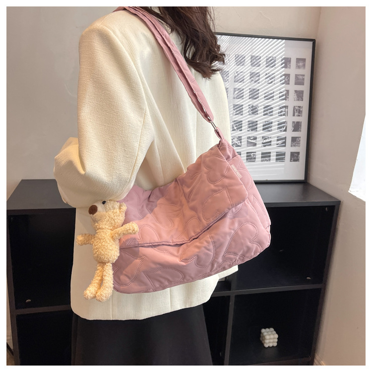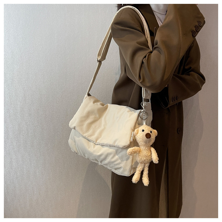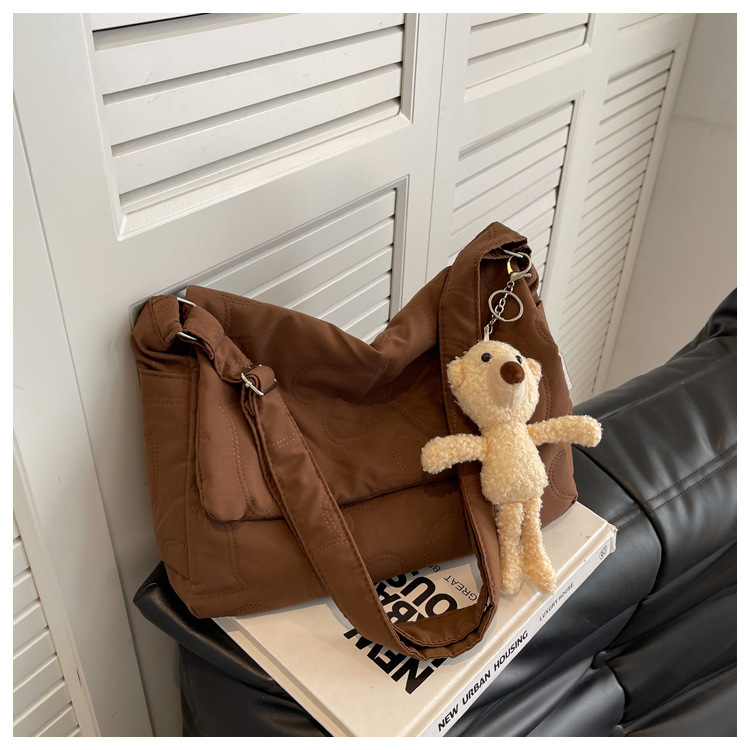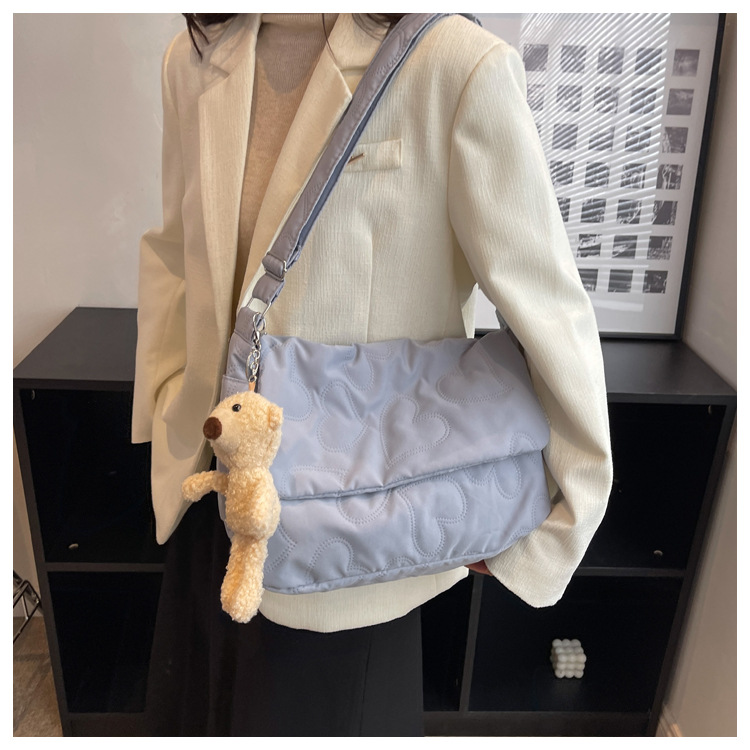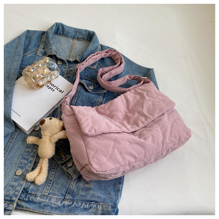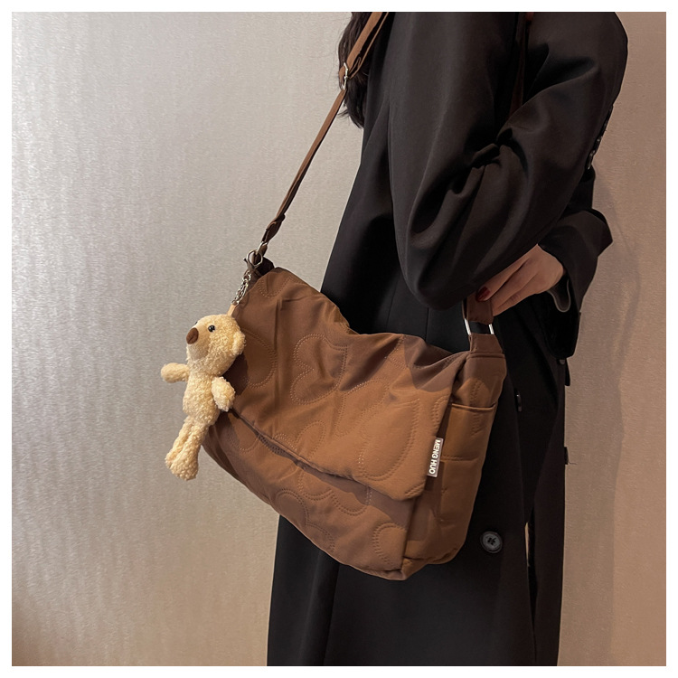 ins风大容量包包女2023新款潮纯色心绣线单肩包文艺学生斜挎包