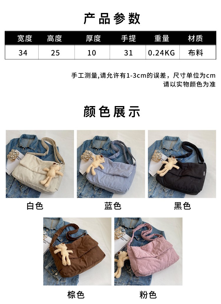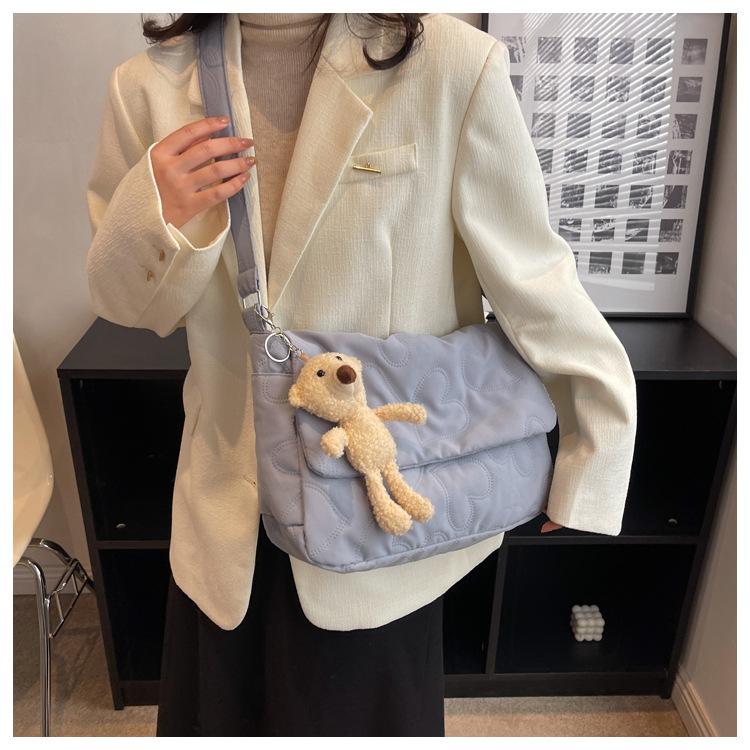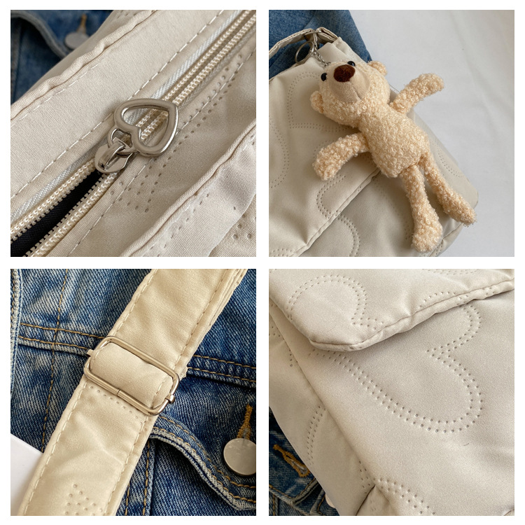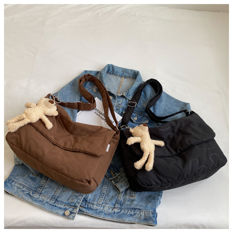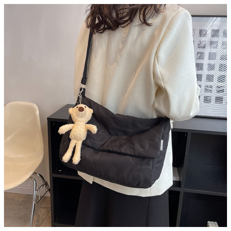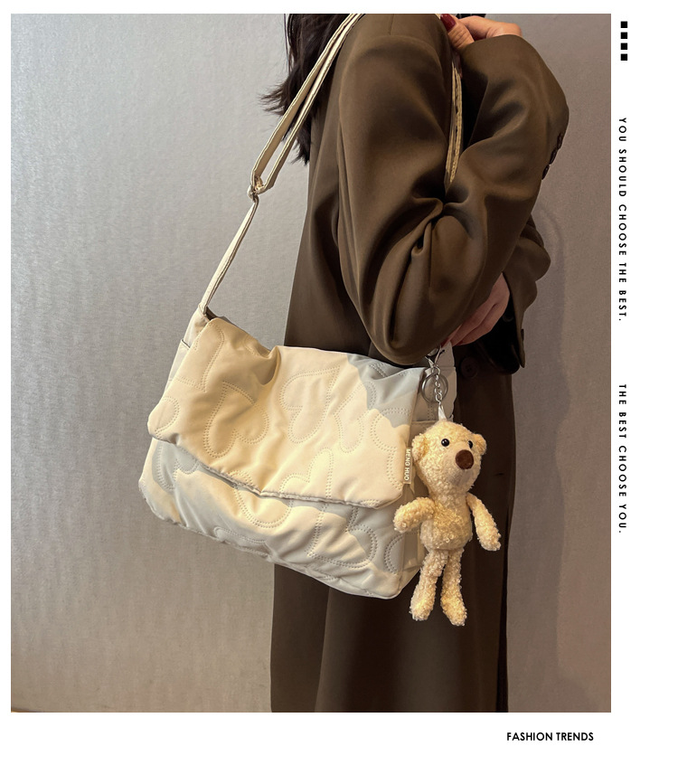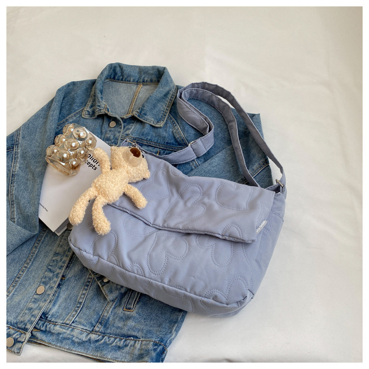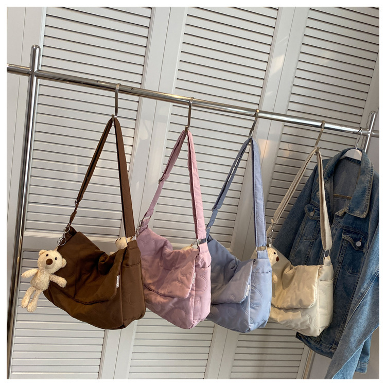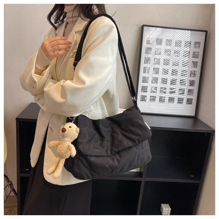 ins风大容量包包女2023新款潮纯色心绣线单肩包文艺学生斜挎包