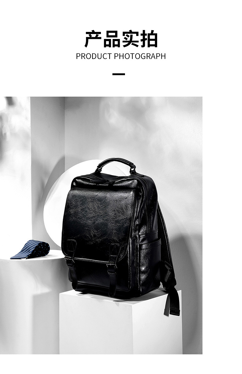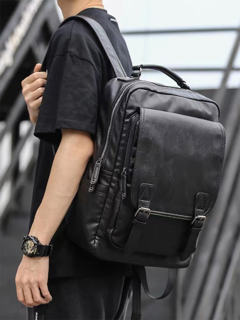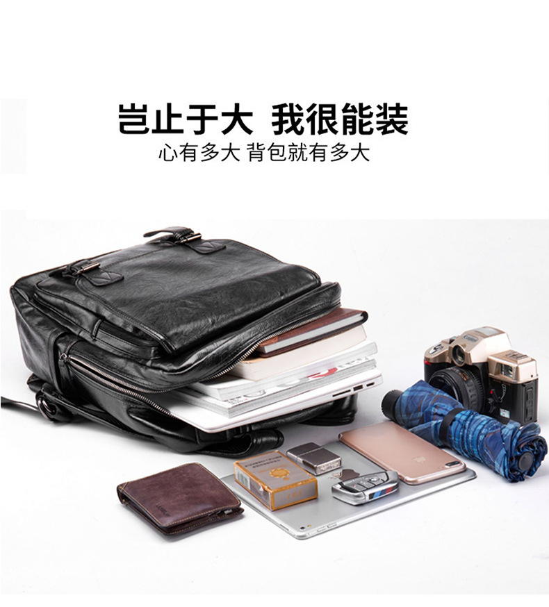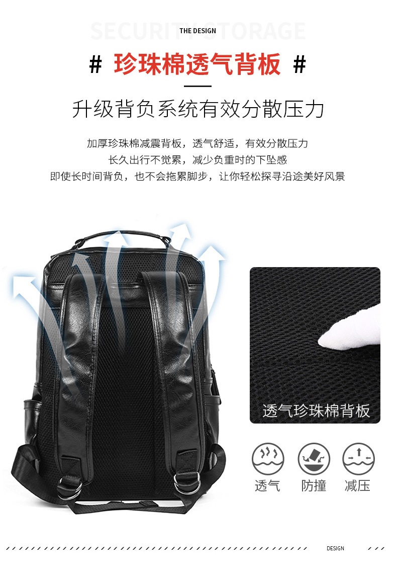0 year New Fashion Brand Men's Leather Backpack Pressure Reducing Backpack Business Leisure Travel Backpack