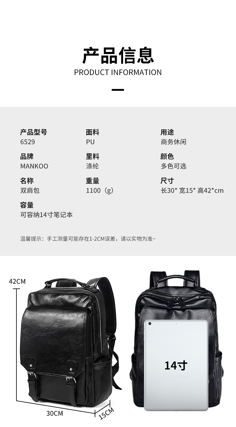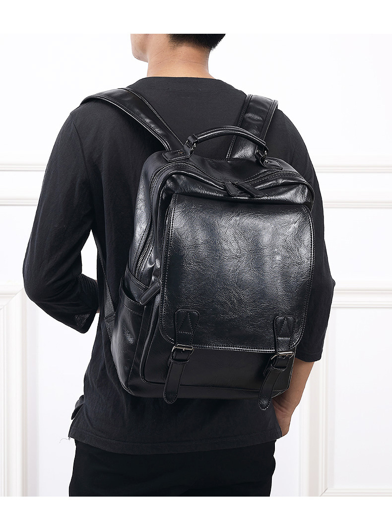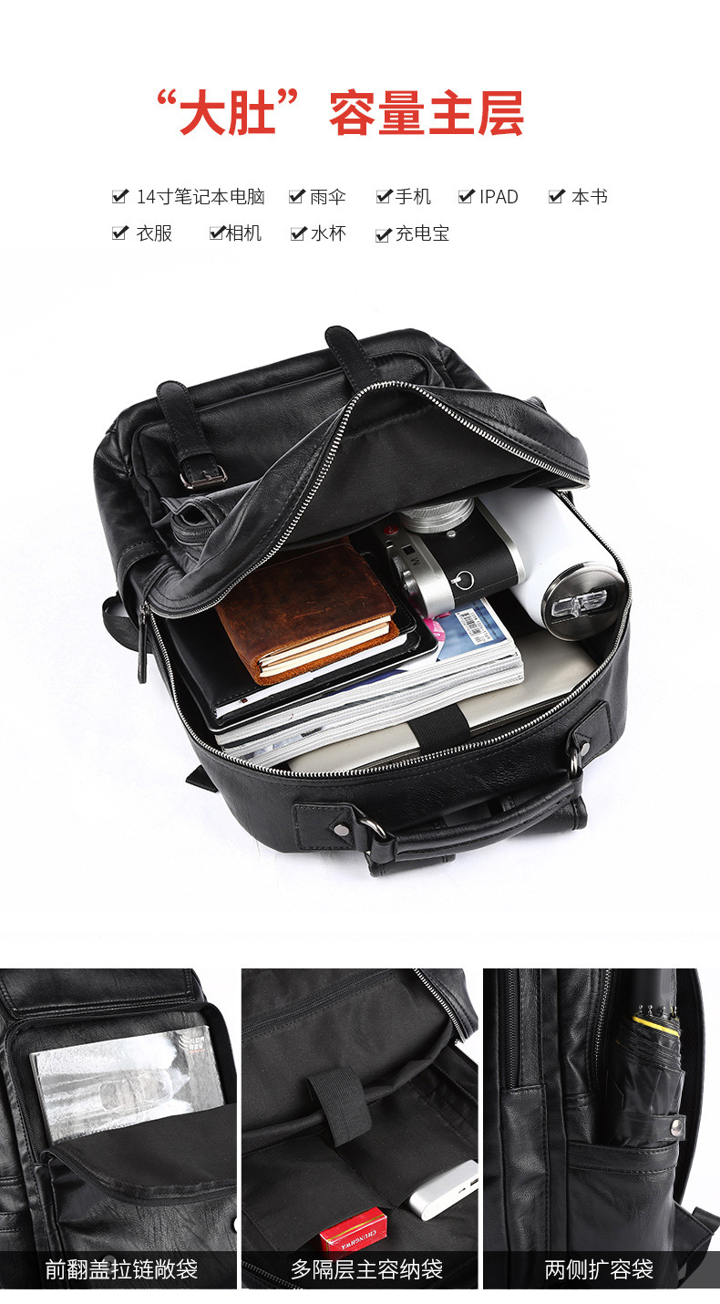 0 year New Fashion Brand Men's Leather Backpack Pressure Reducing Backpack Business Leisure Travel Backpack