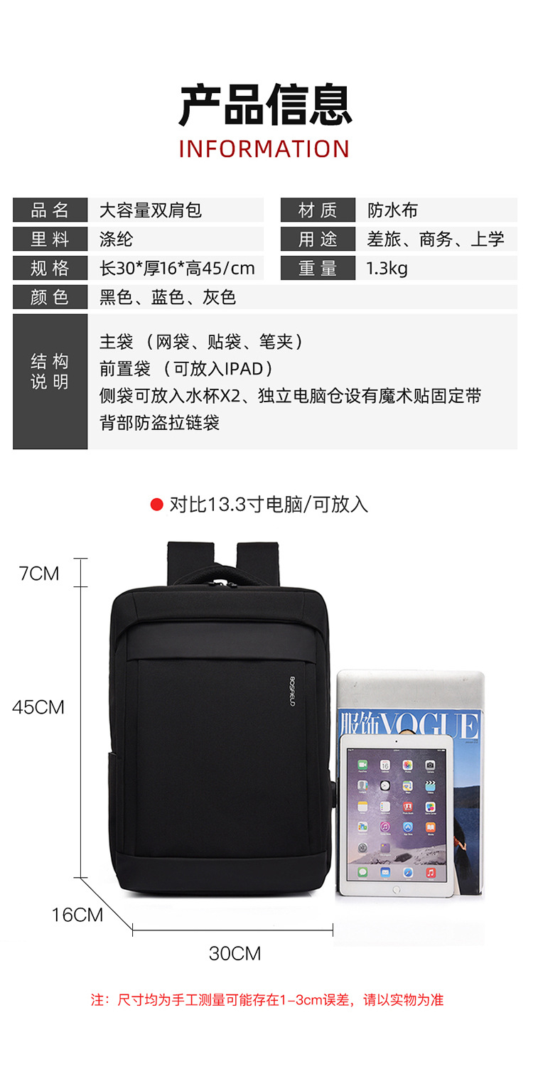 Stereoscopic computer backpack, travel men's business backpack, large capacity computer backpack, waterproof universal backpack