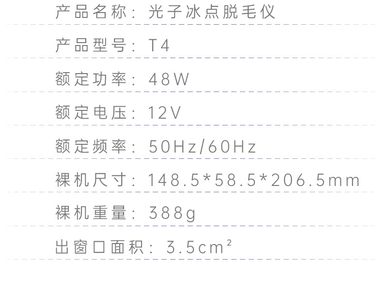| Standard Energy Density Of Hair Remover | 4.5J/square Centimeter |