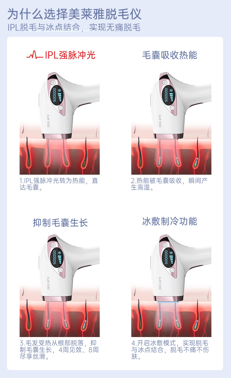 Meilaiya Home Freezing Point Hair Removal Device for Women's Full Body, Armpit Hair, Private Part Strong Pulse Hair Removal Device Factory Spot Wholesale