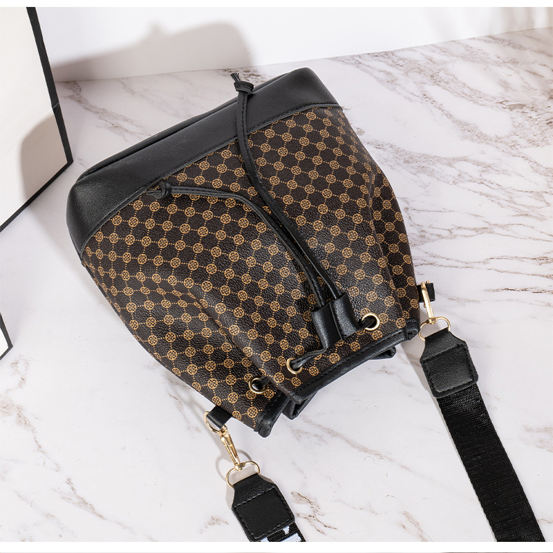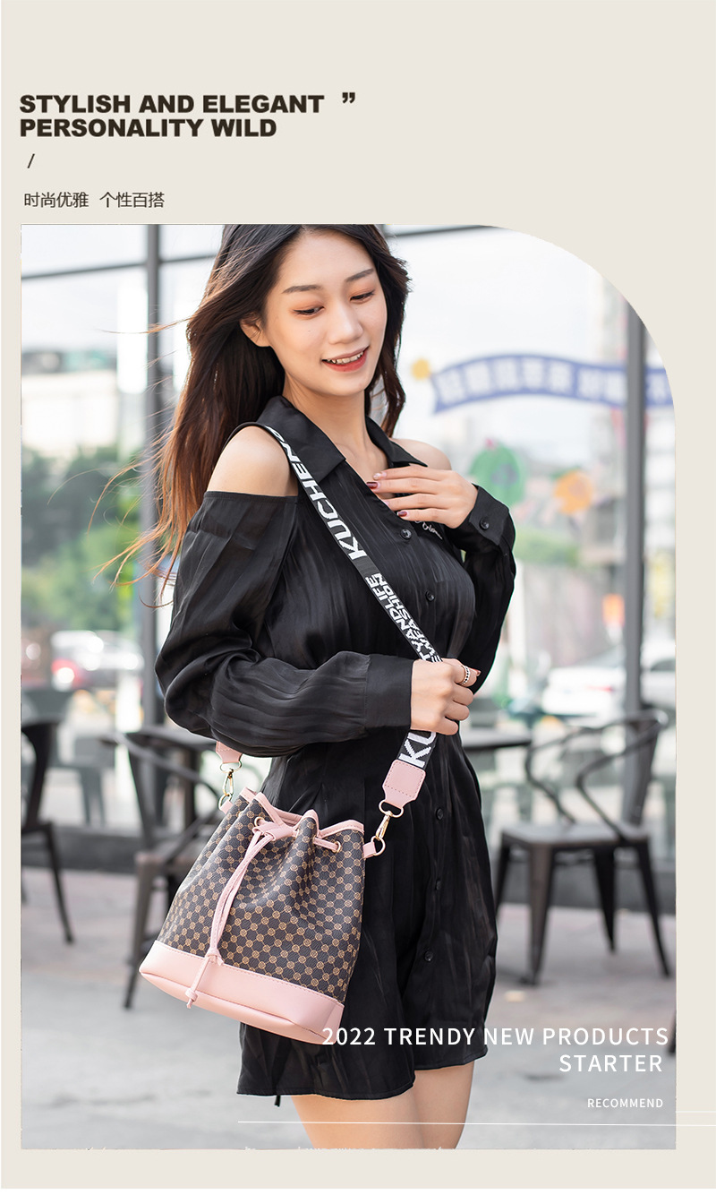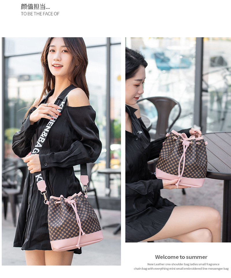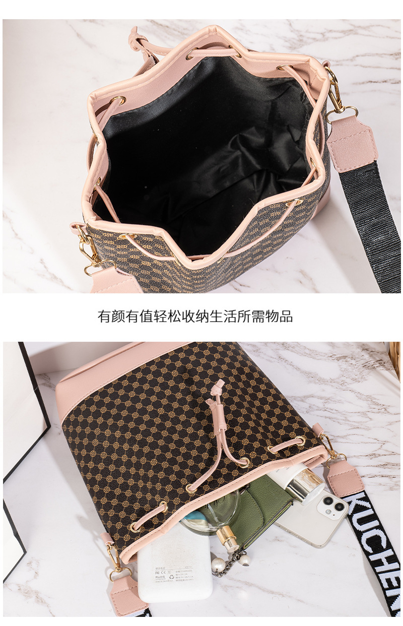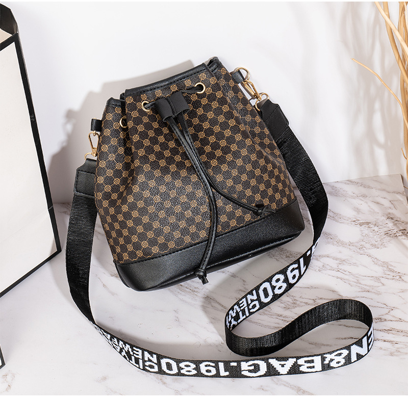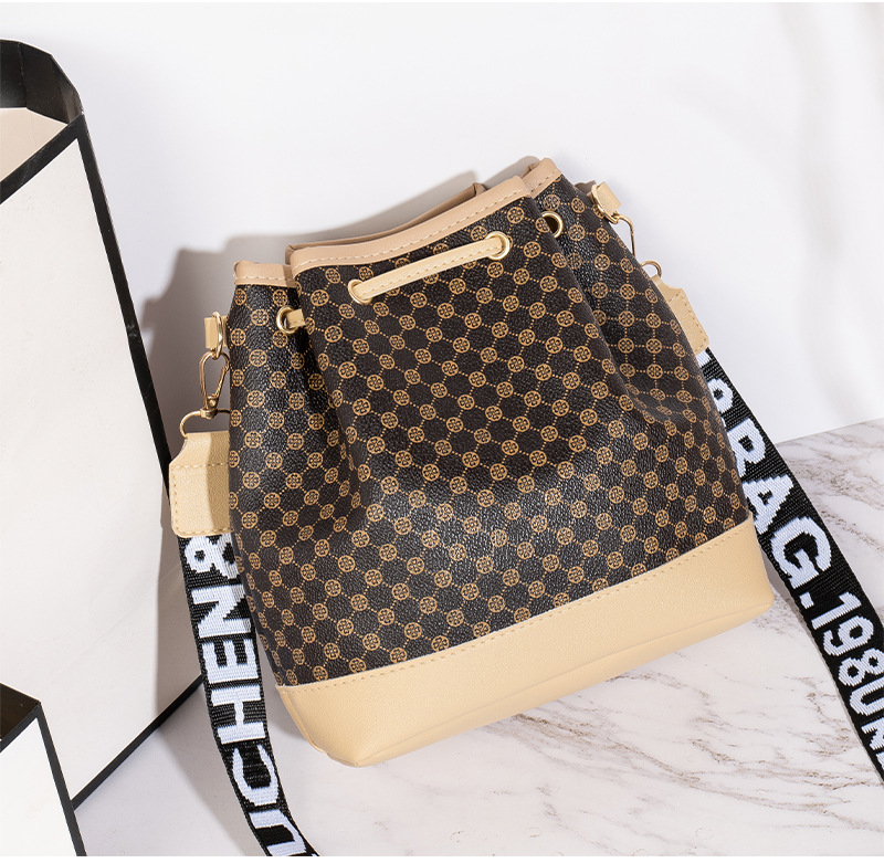 Fashionable Retro 2023 New Geometric Print Contrast Color Single Shoulder Women's Bag Letter Chain Bucket Bag One Piece for Shipping