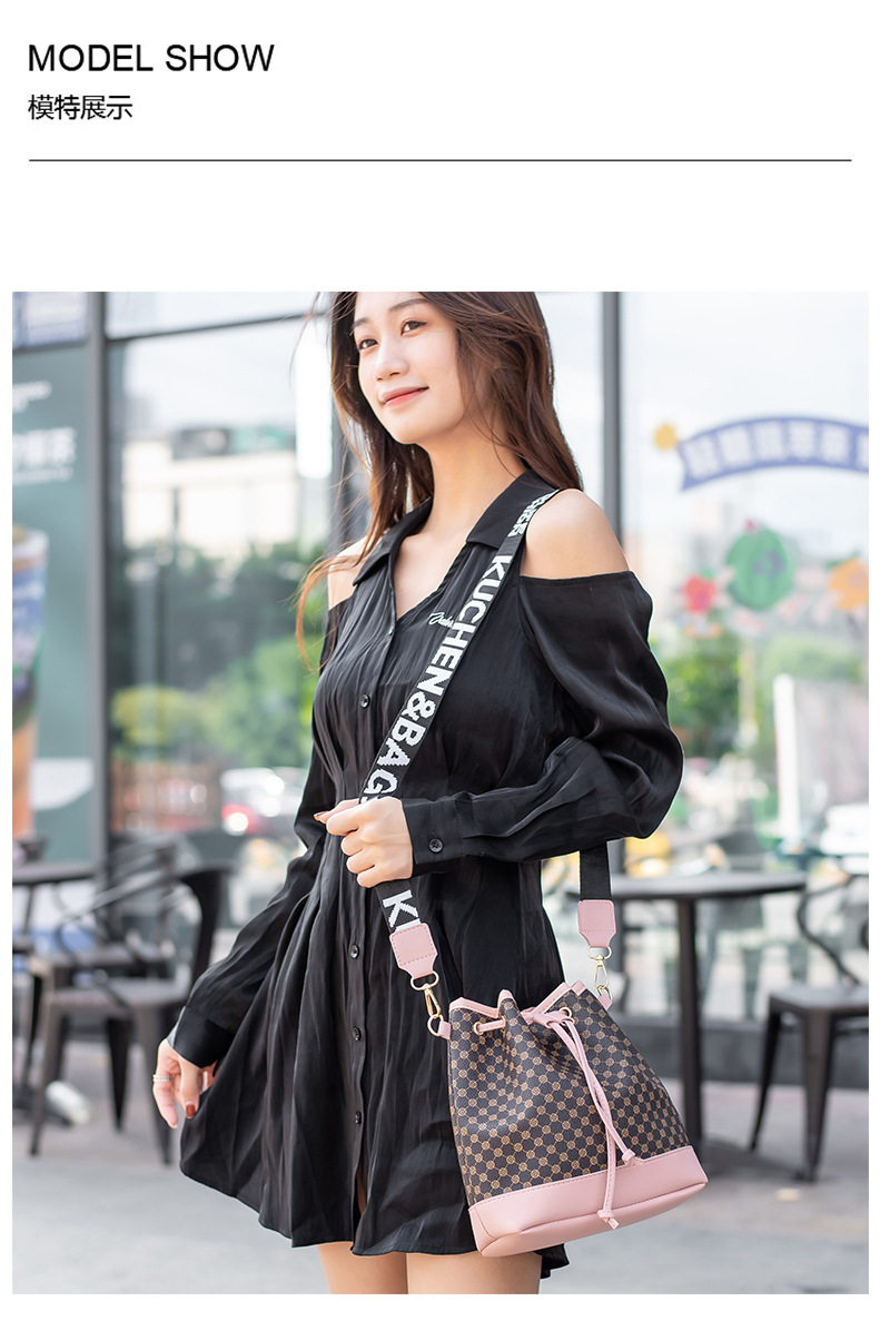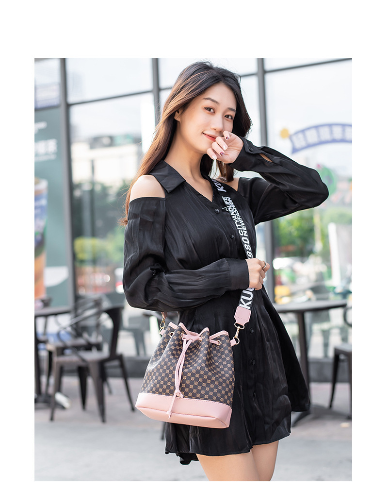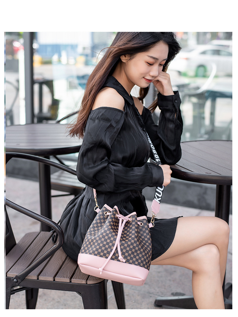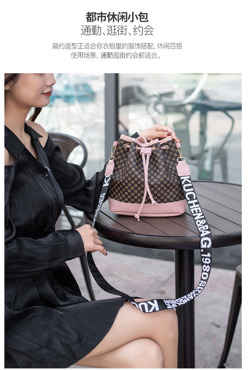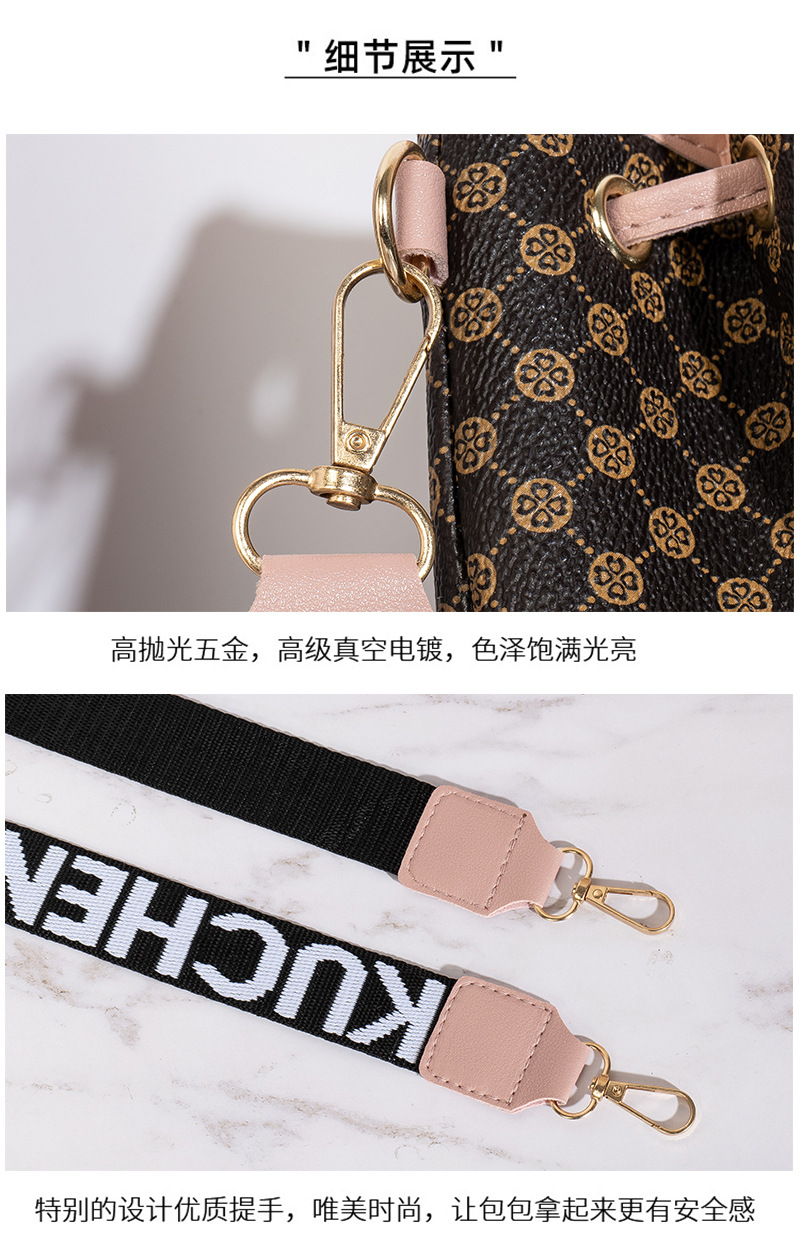 Fashionable Retro 2023 New Geometric Print Contrast Color Single Shoulder Women's Bag Letter Chain Bucket Bag One Piece for Shipping