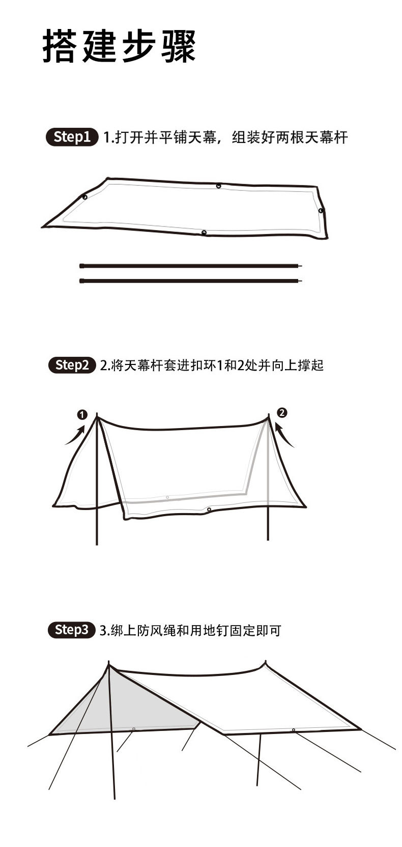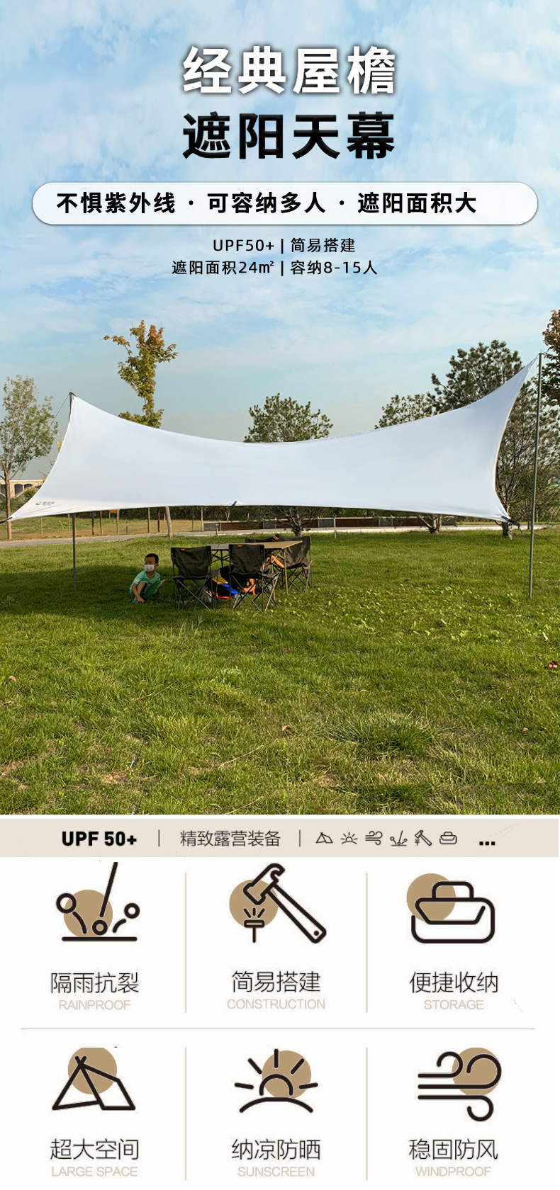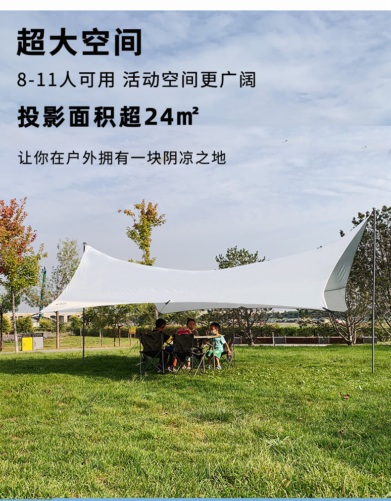 Outdoor black rubber butterfly shaped canopy tent coated with silver for camping, sun and rain protection, Oxford cloth canopy for camping, greenhouse, and sunshade