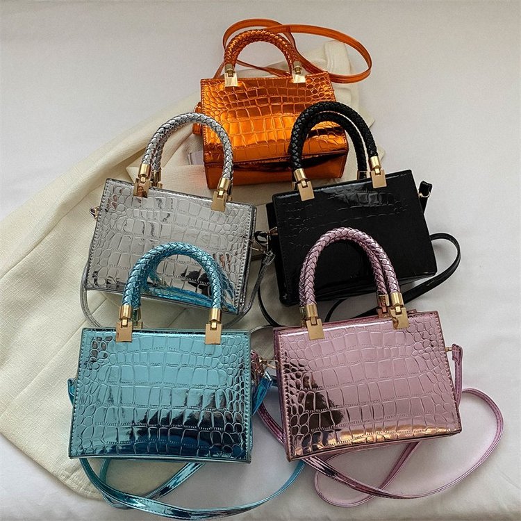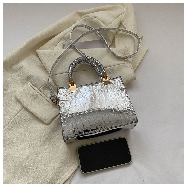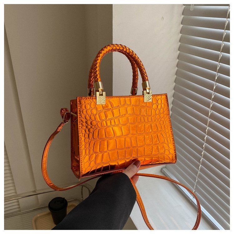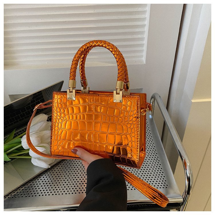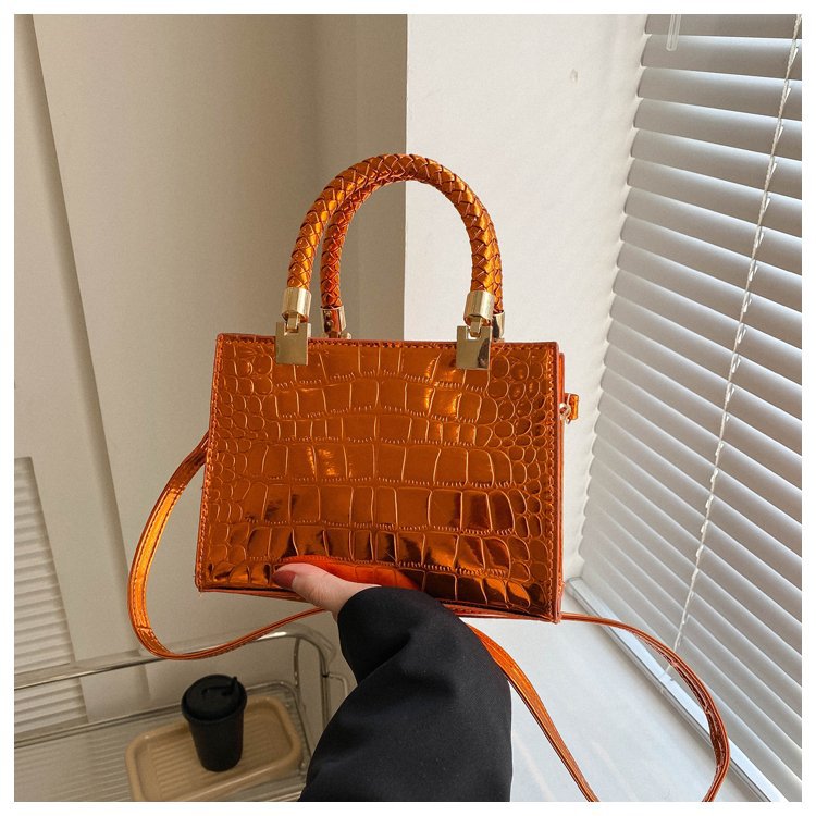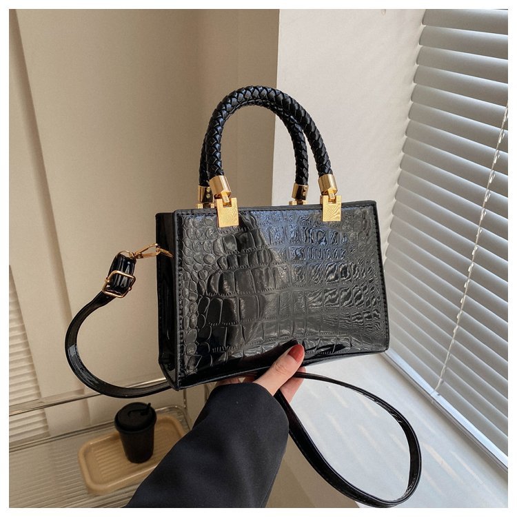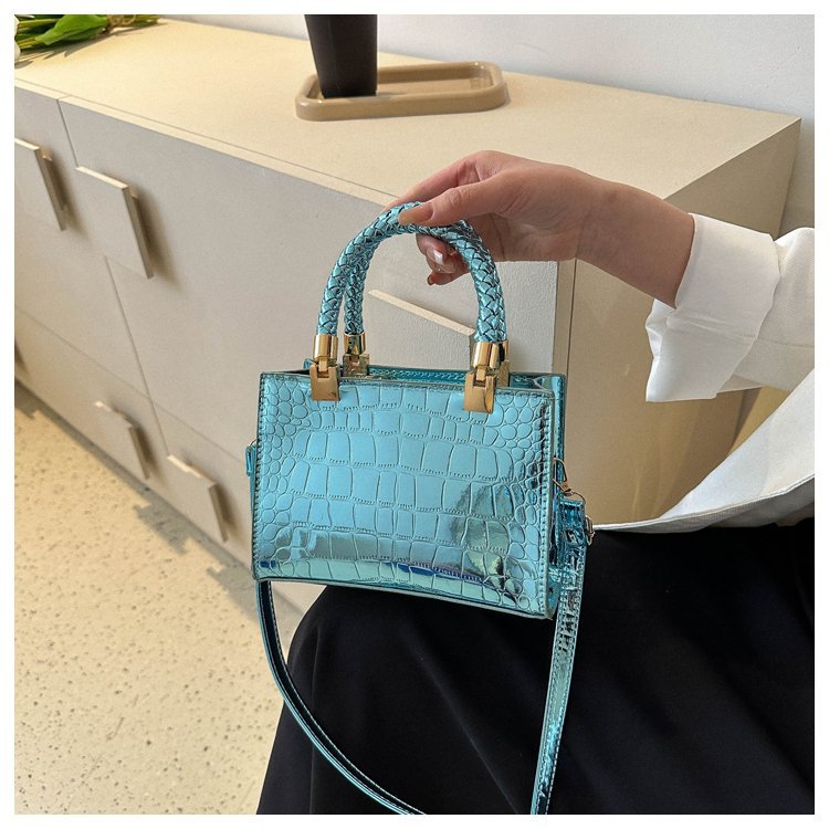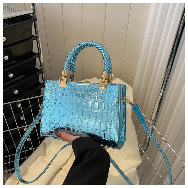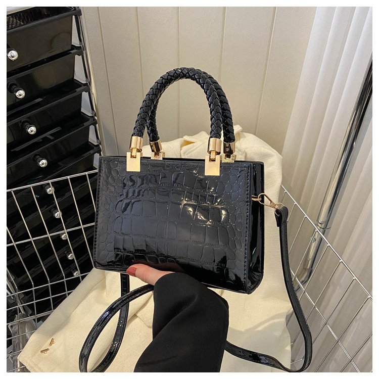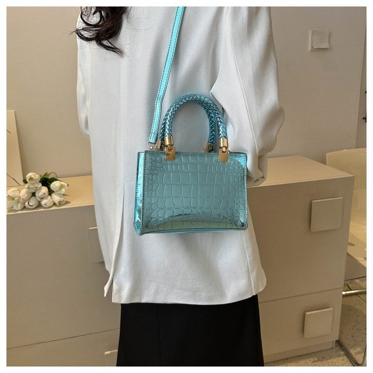 New Cross border Women's Bag 2023 Fashionable Glossy Lacquer Leather Small Square Bag Women's Stone Pattern Versatile One Shoulder Crossbody Bag
