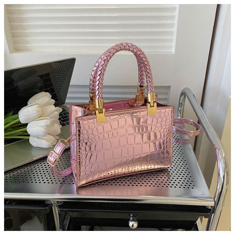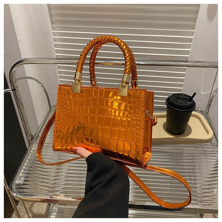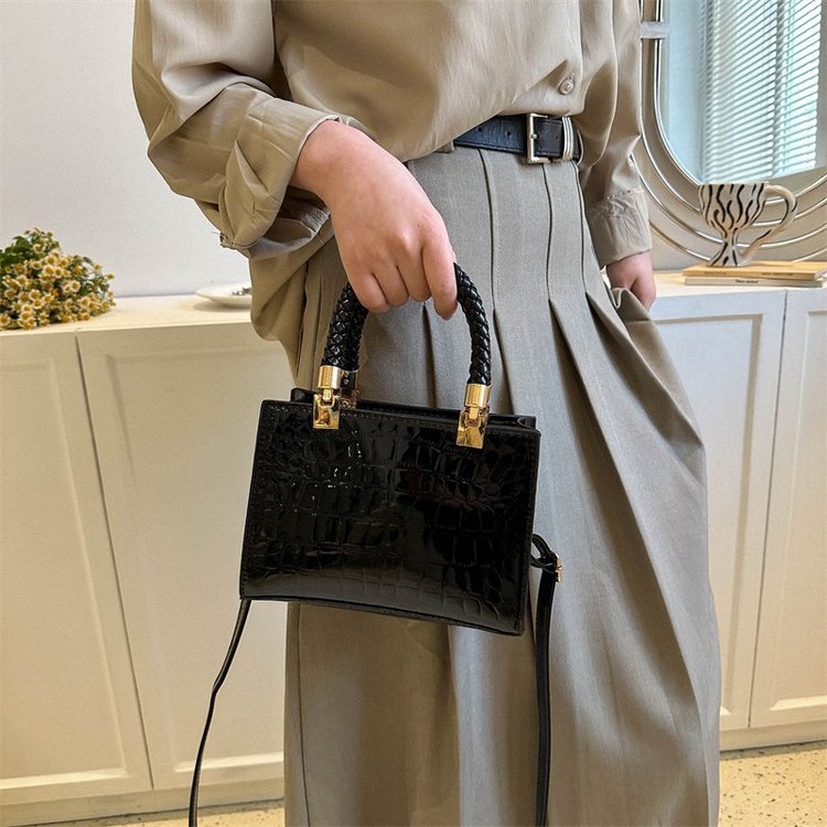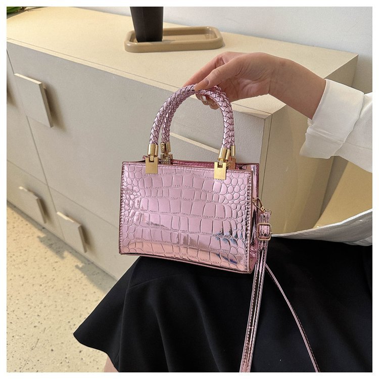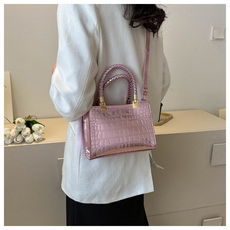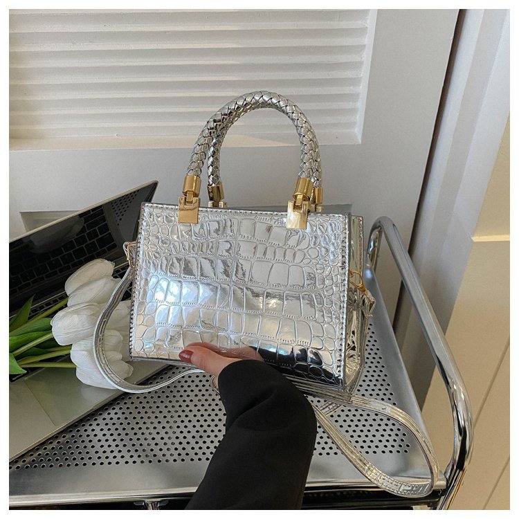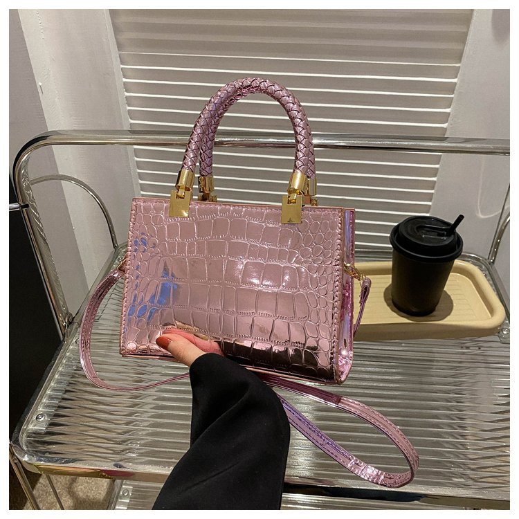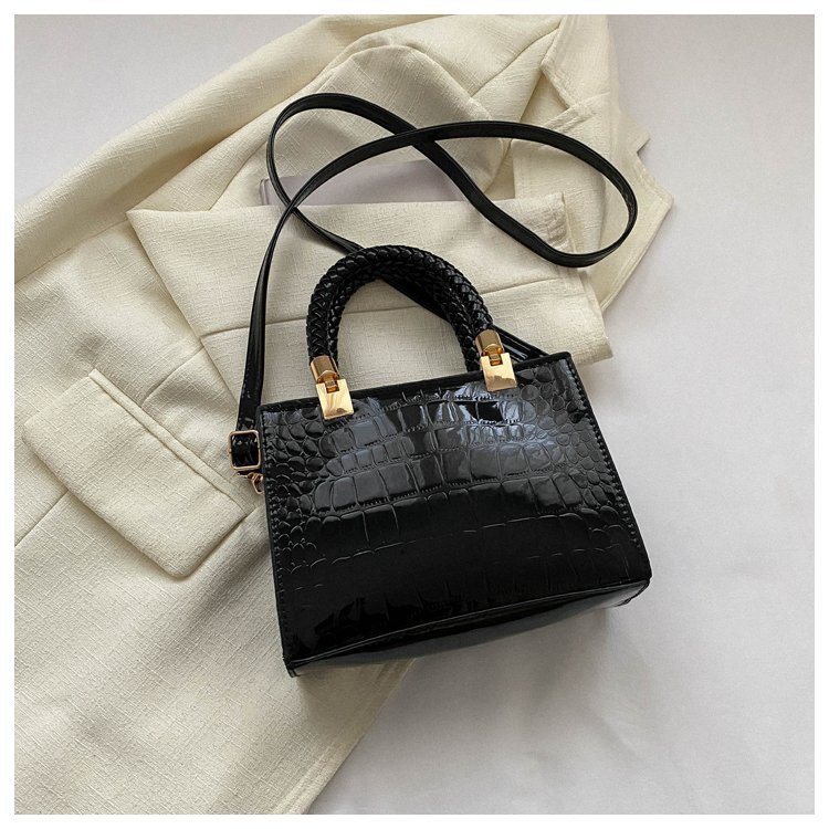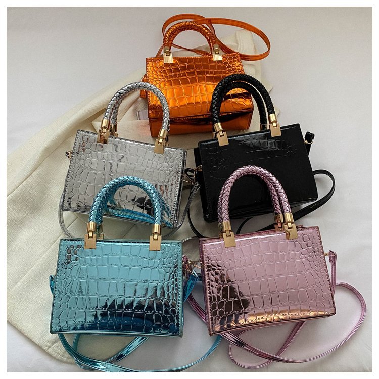 New Cross border Women's Bag 2023 Fashionable Glossy Lacquer Leather Small Square Bag Women's Stone Pattern Versatile One Shoulder Crossbody Bag