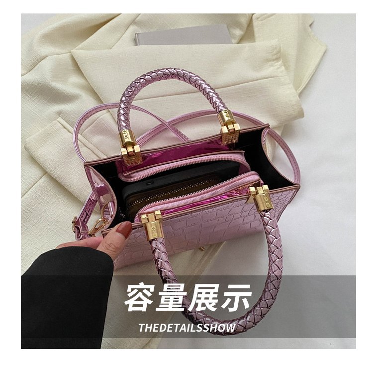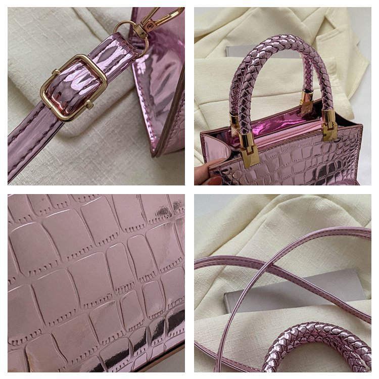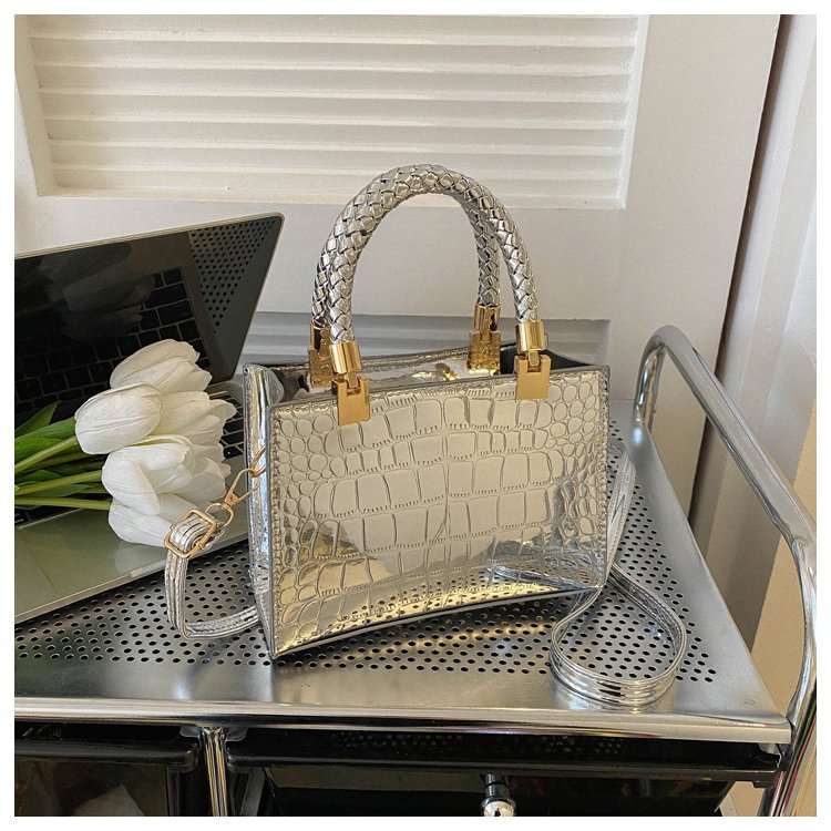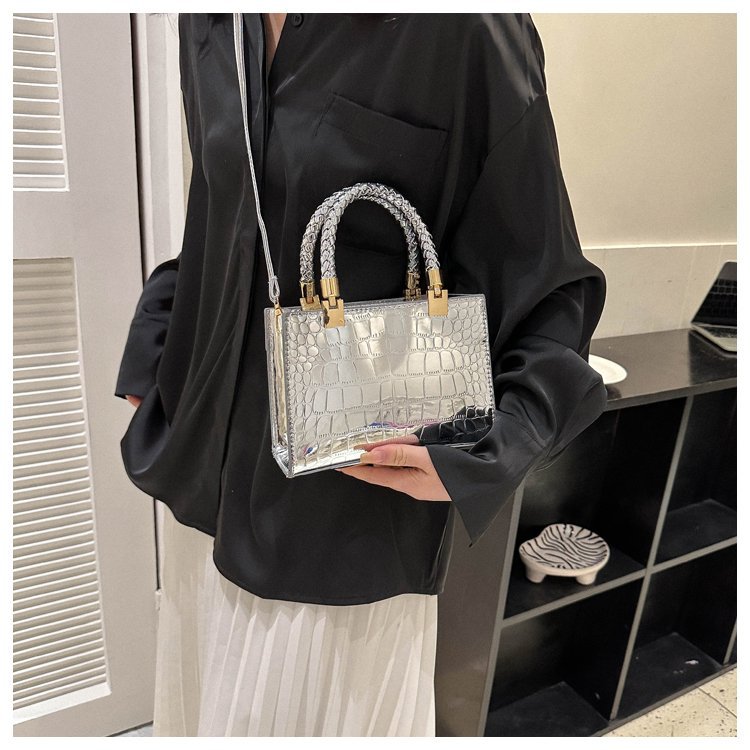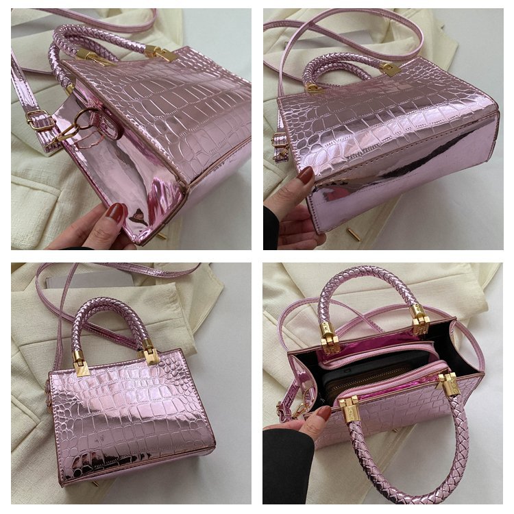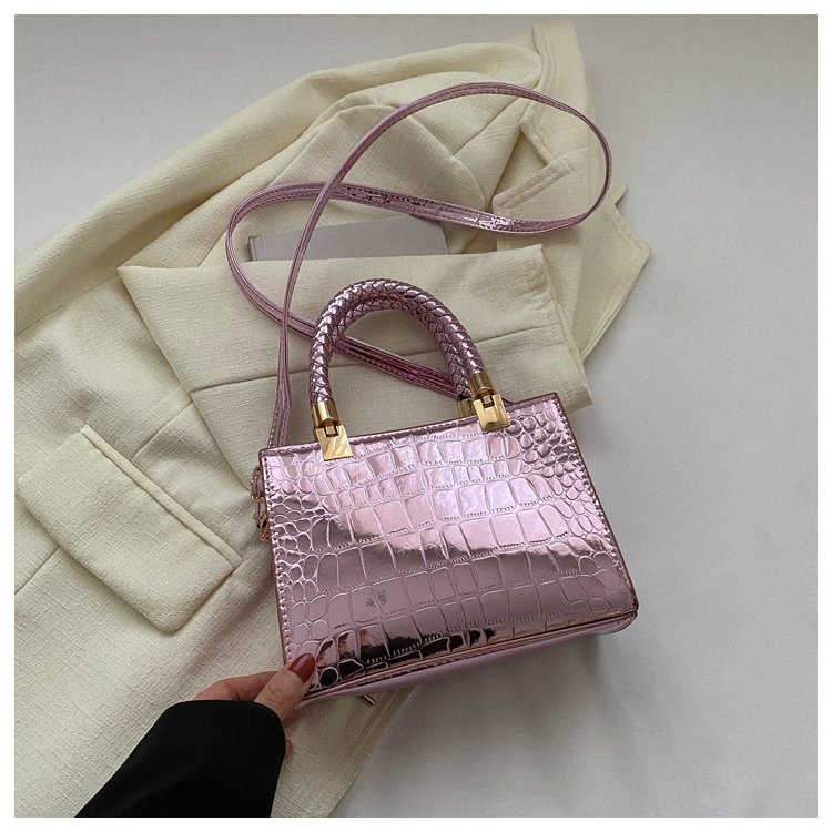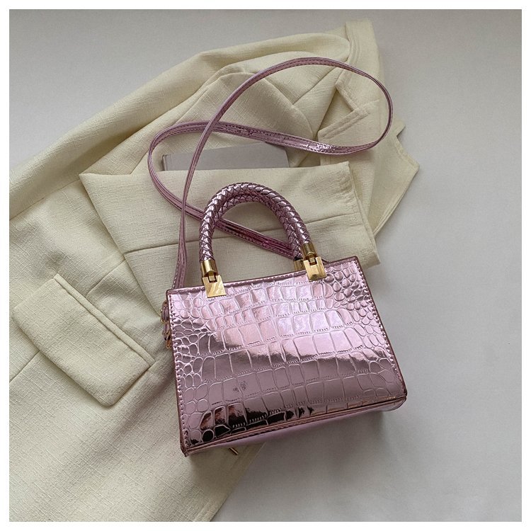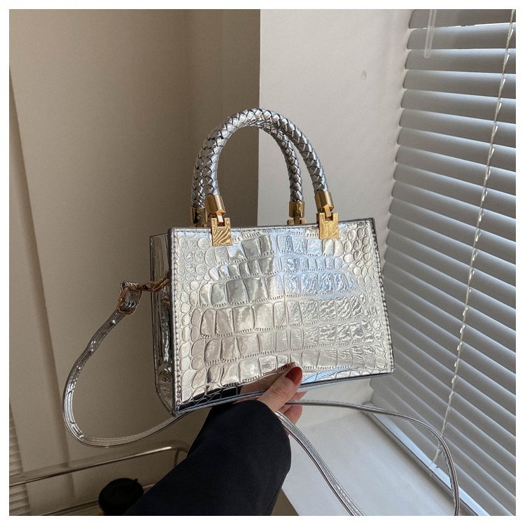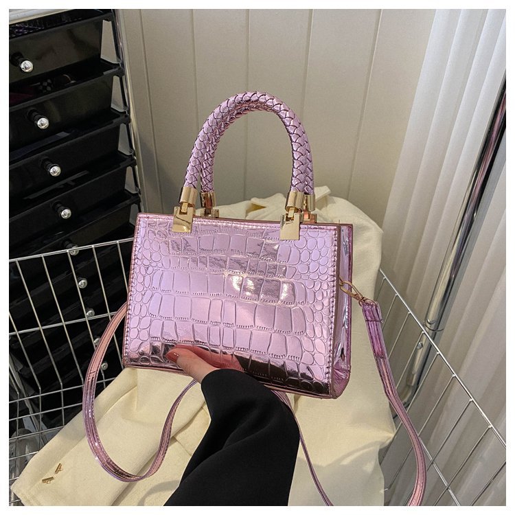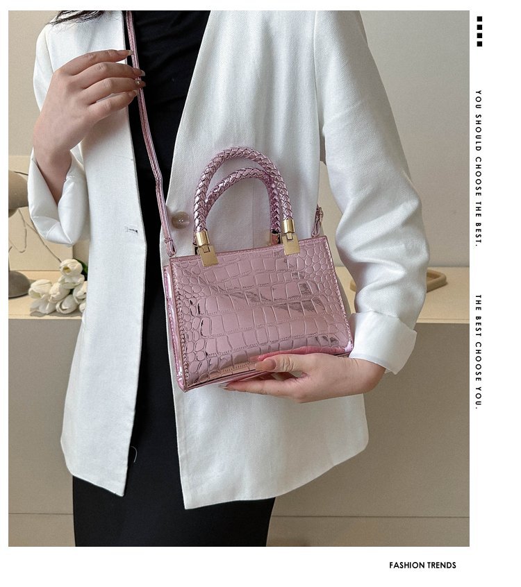 New Cross border Women's Bag 2023 Fashionable Glossy Lacquer Leather Small Square Bag Women's Stone Pattern Versatile One Shoulder Crossbody Bag