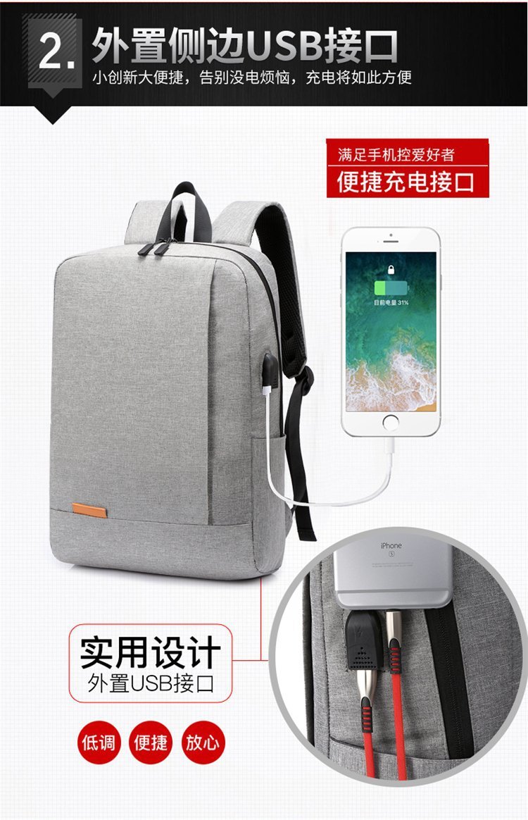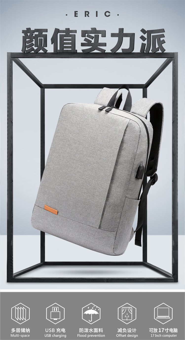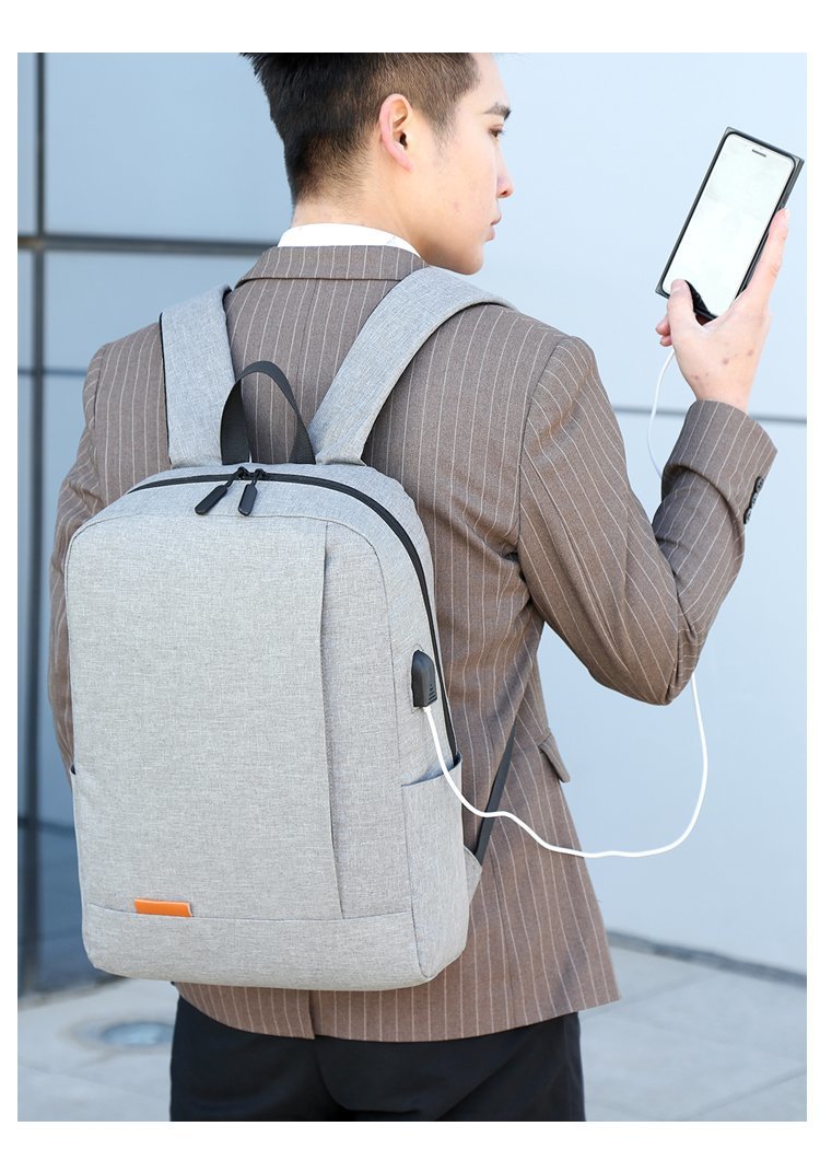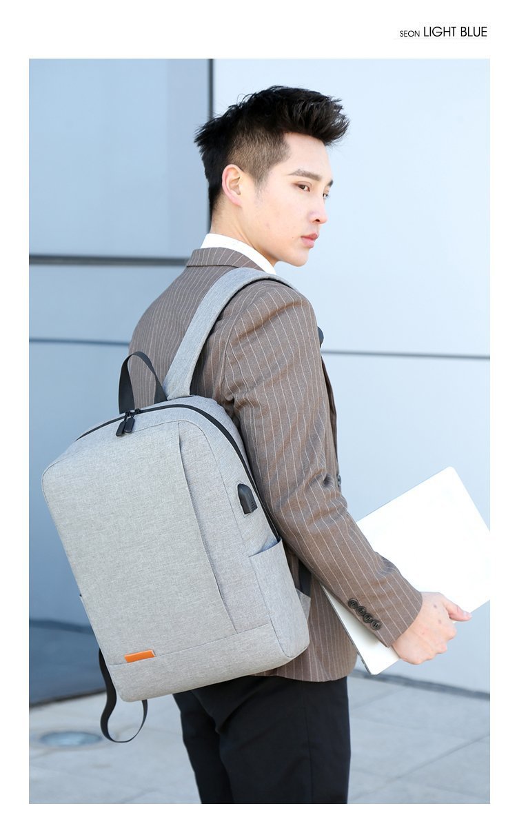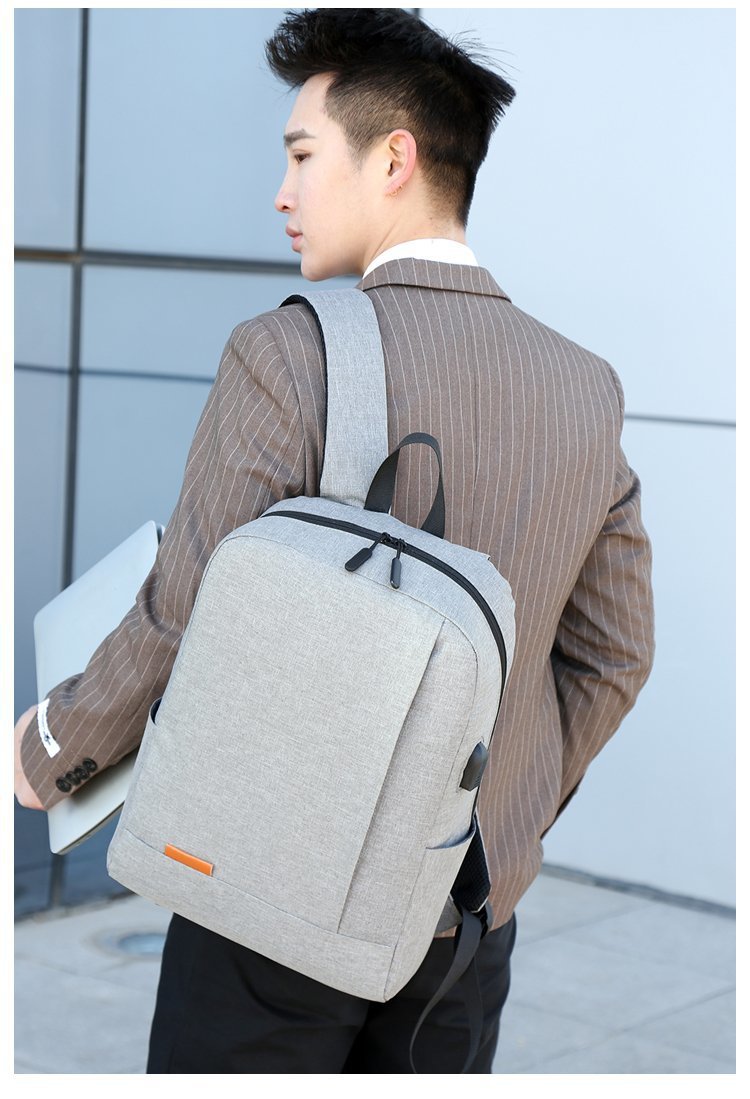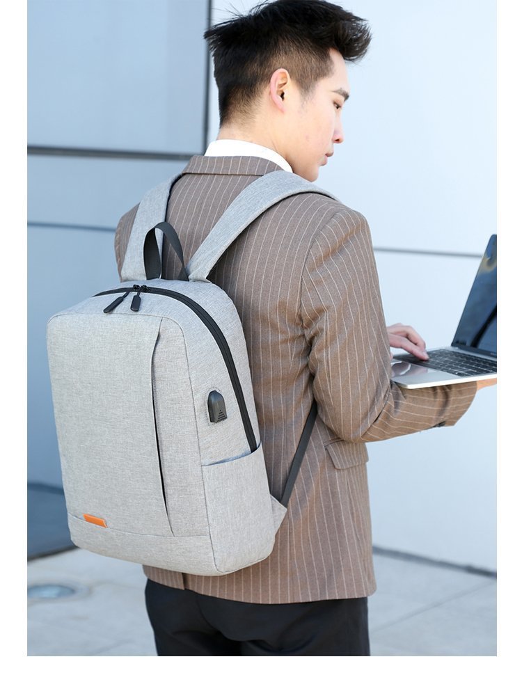 Urban minimalist backpack, commuting business backpack, USB interface, light gray men's backpack wholesale factory