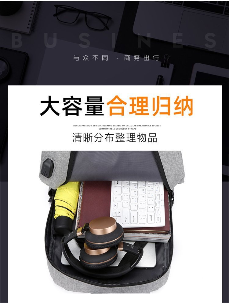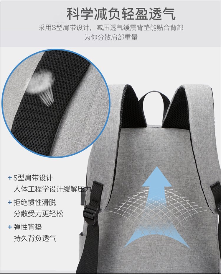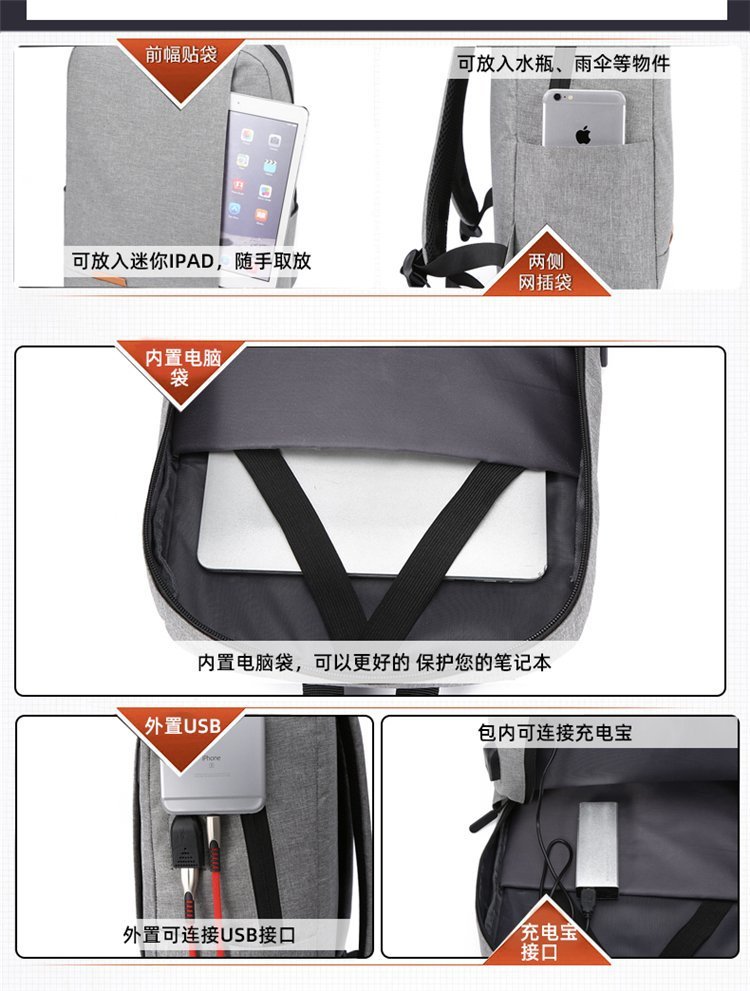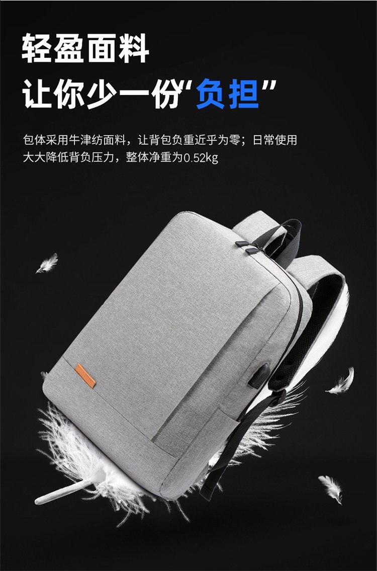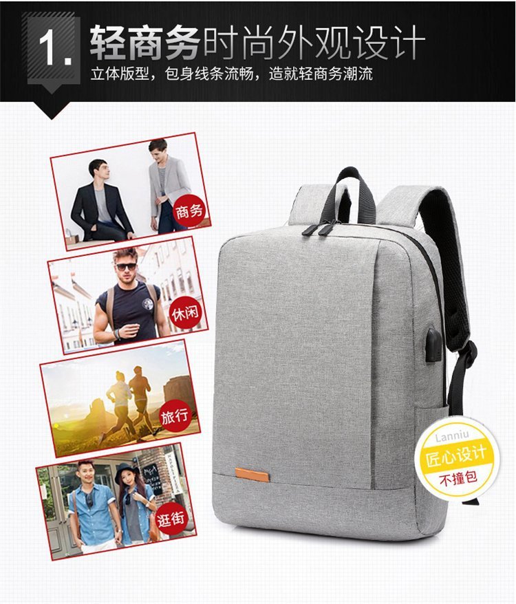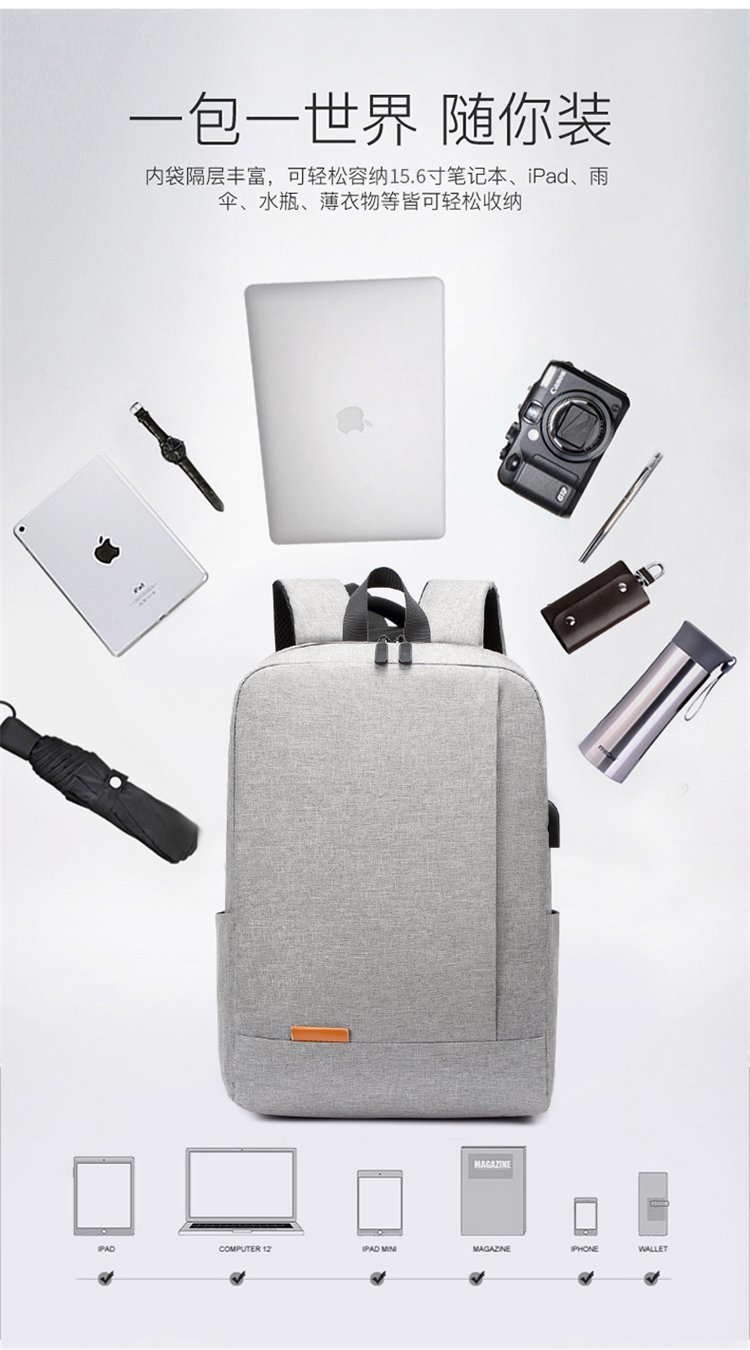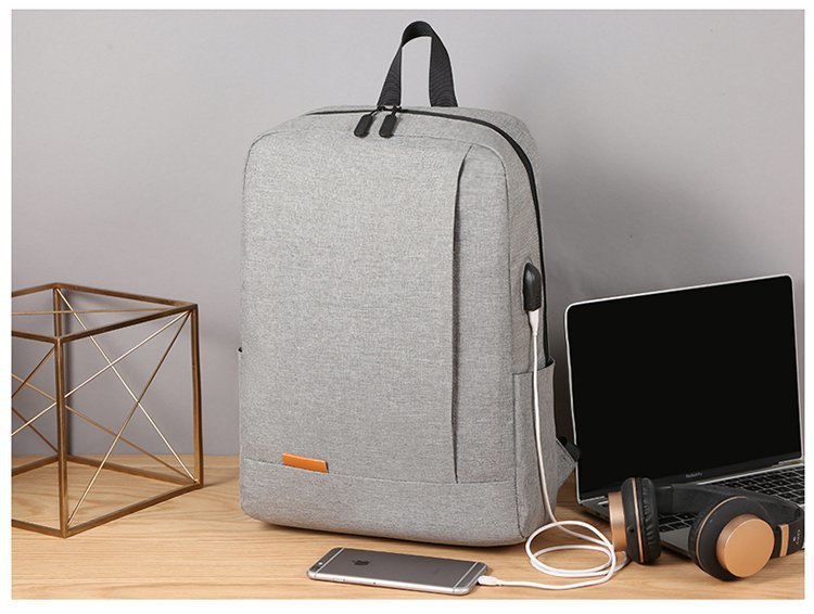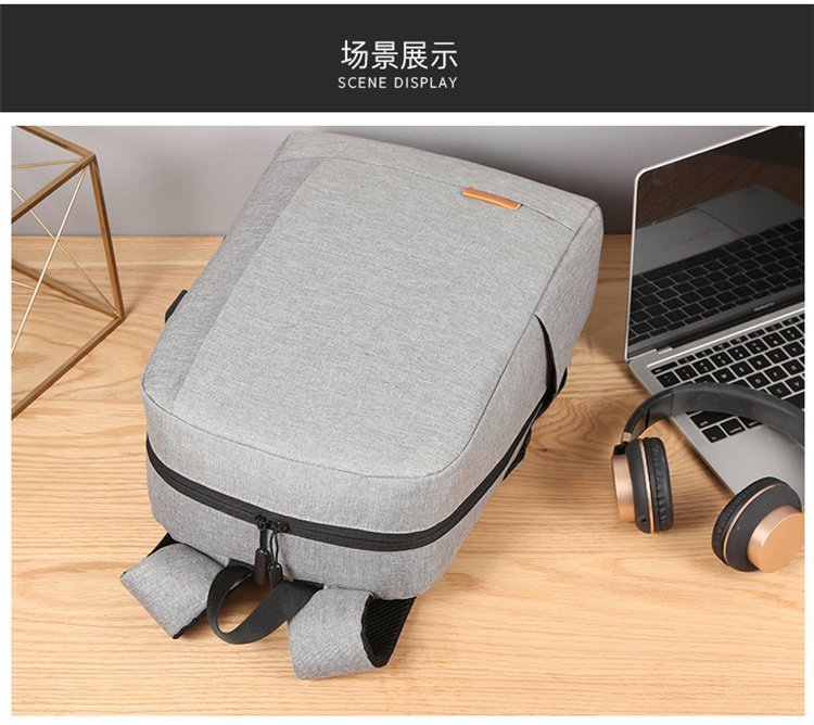 Urban minimalist backpack, commuting business backpack, USB interface, light gray men's backpack wholesale factory