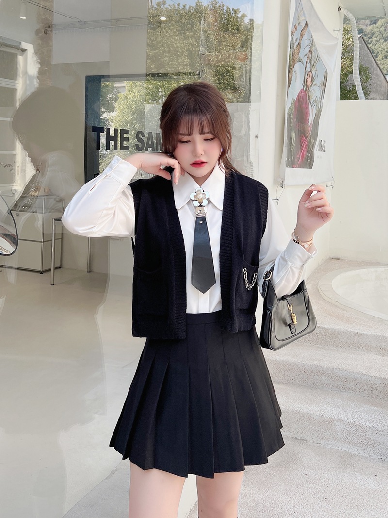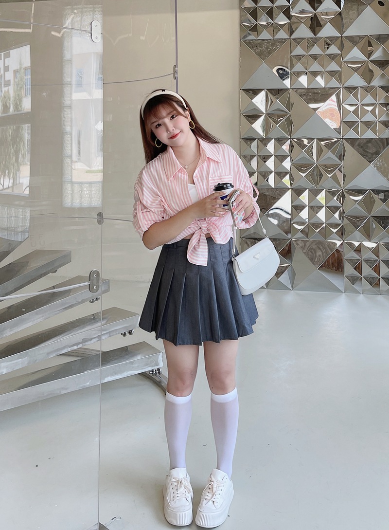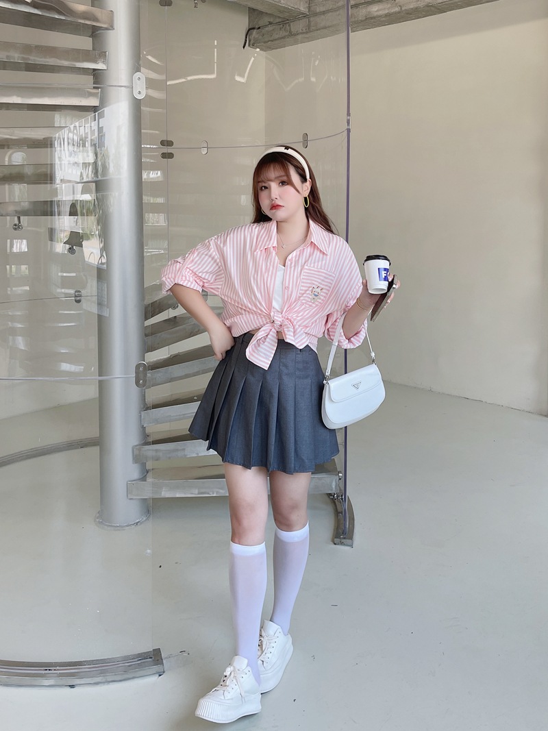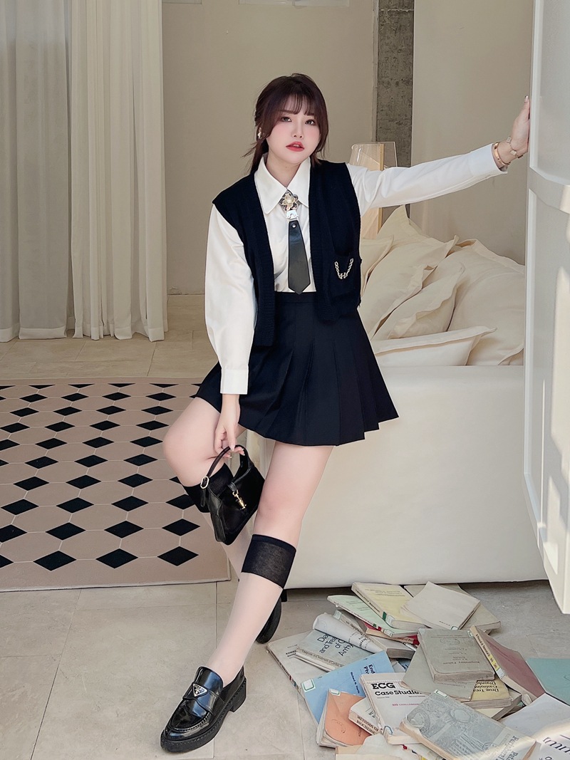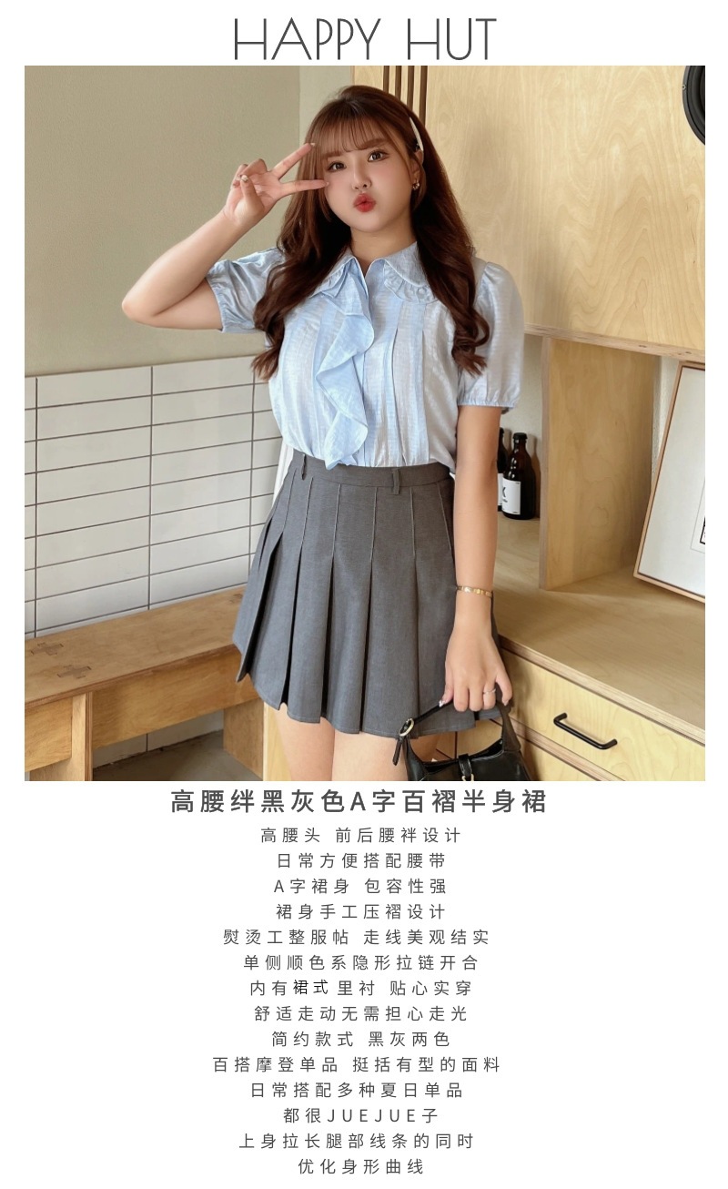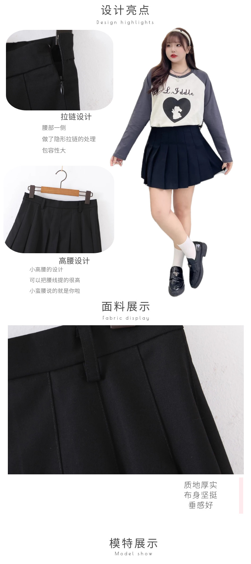 润其·大码半身裙女胖mm日系高腰绊A字百褶半身裙批发N7209
