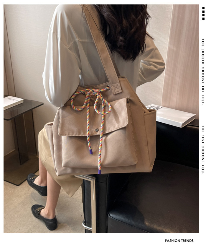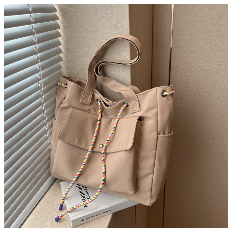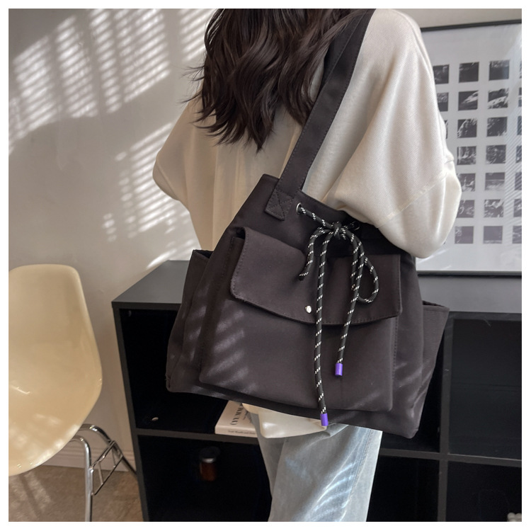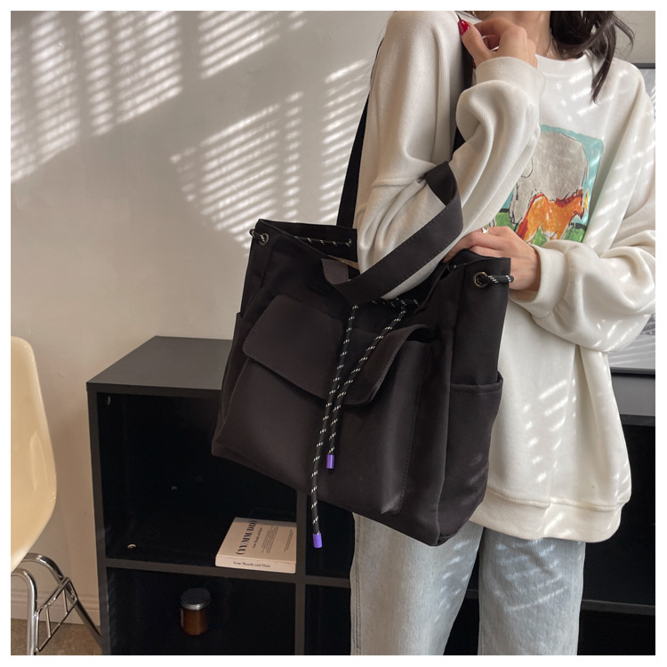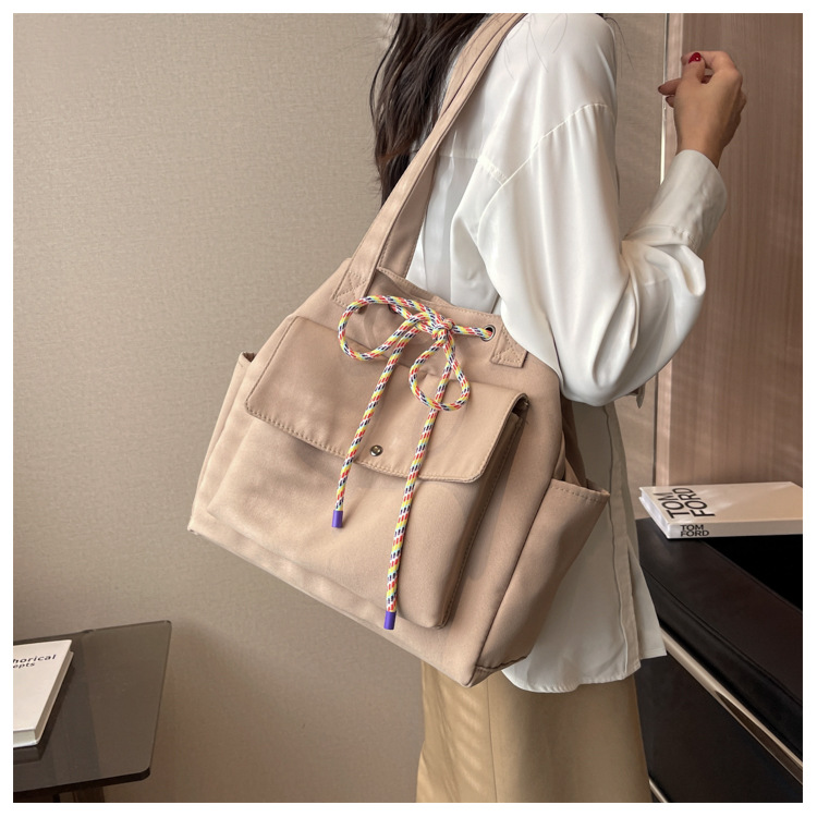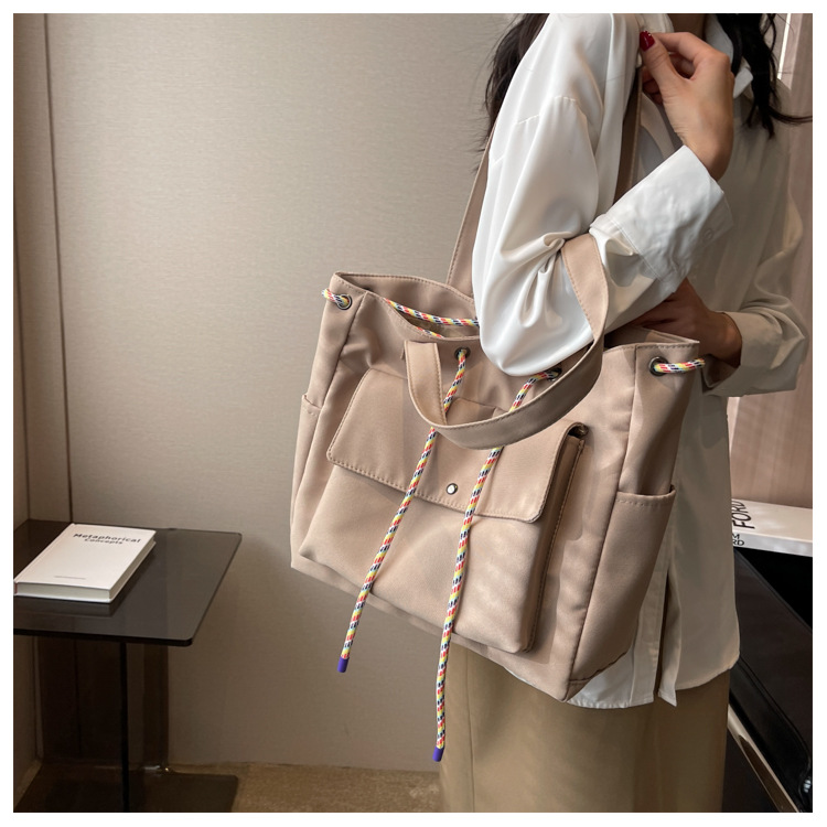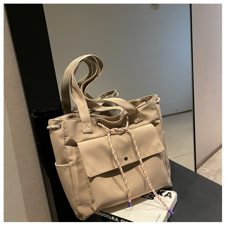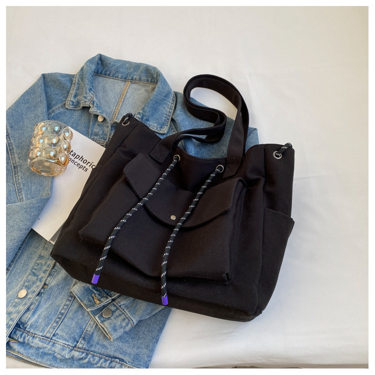 跨境大容量帆布托特包包女2023新款通勤百搭ins大学生上课单肩包