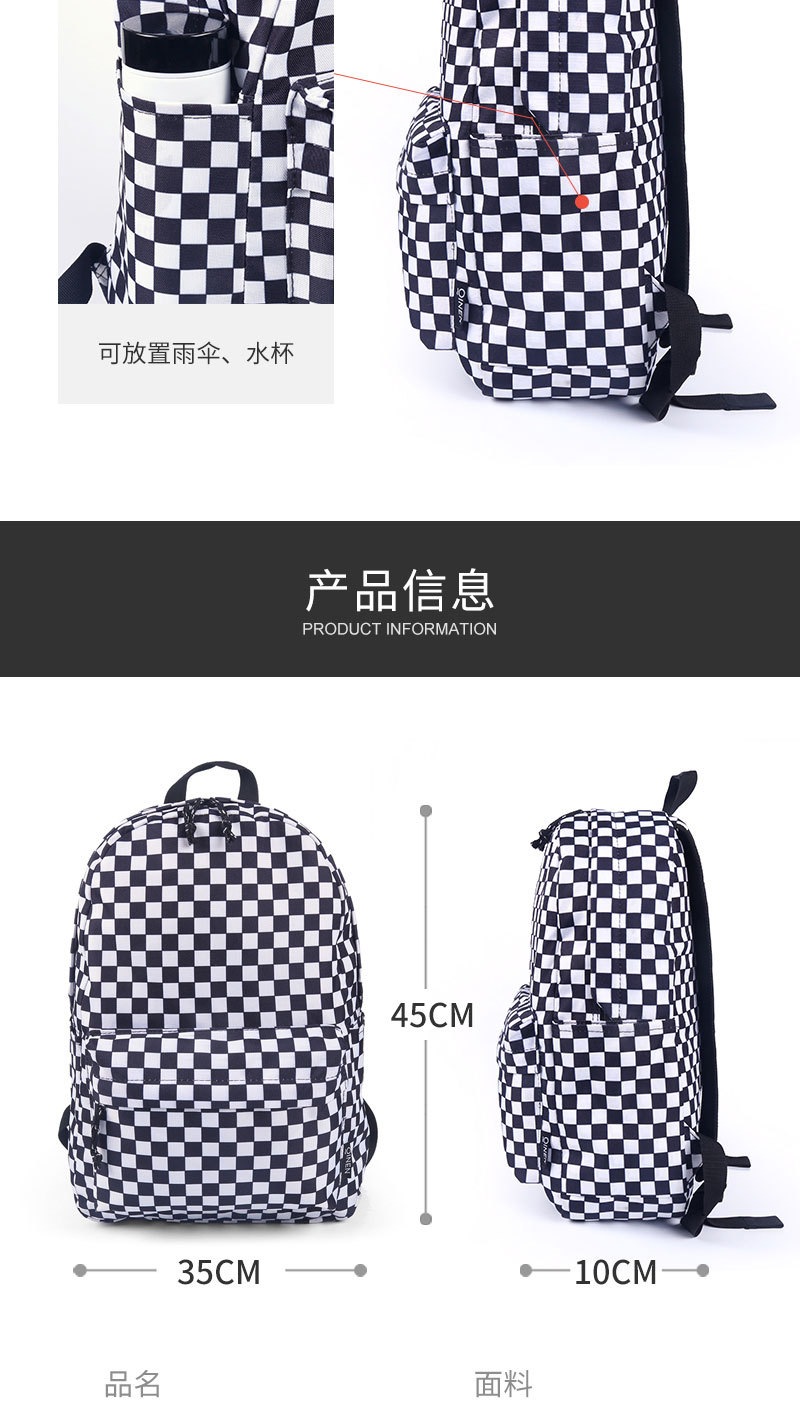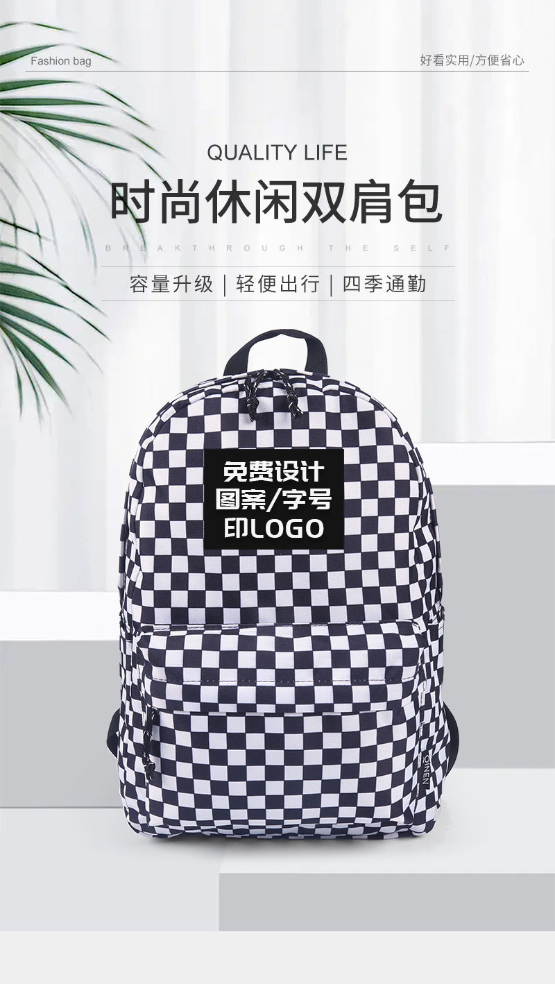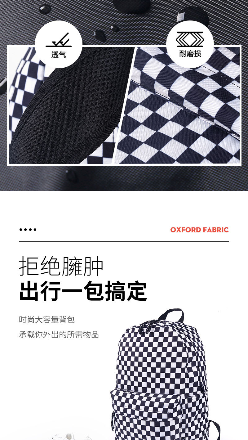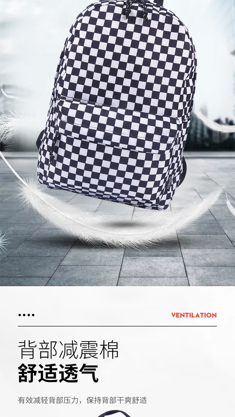 Wholesale of backpacks for male and female students, large capacity, casual, fashionable, checkerboard, lightweight backpacks, student backpacks
