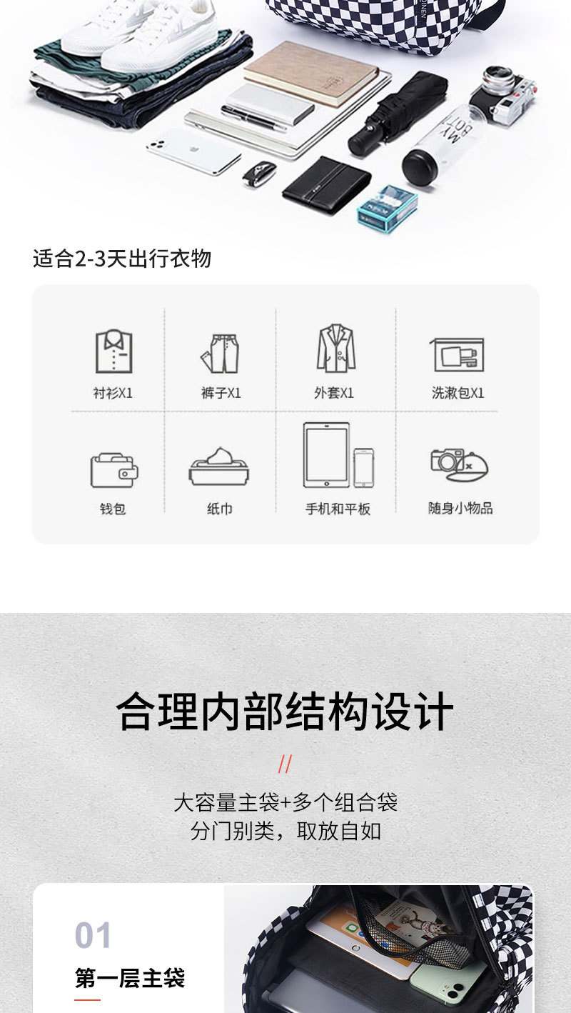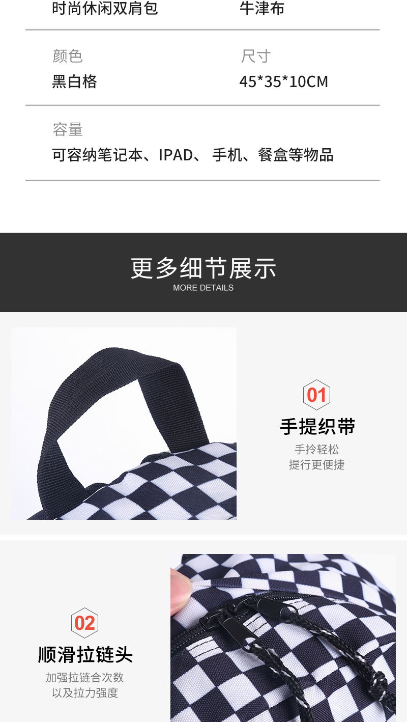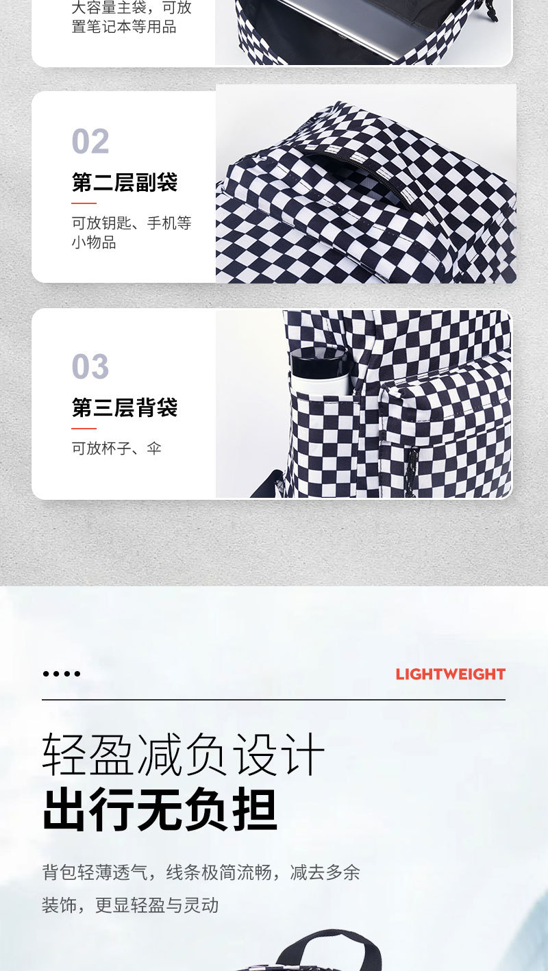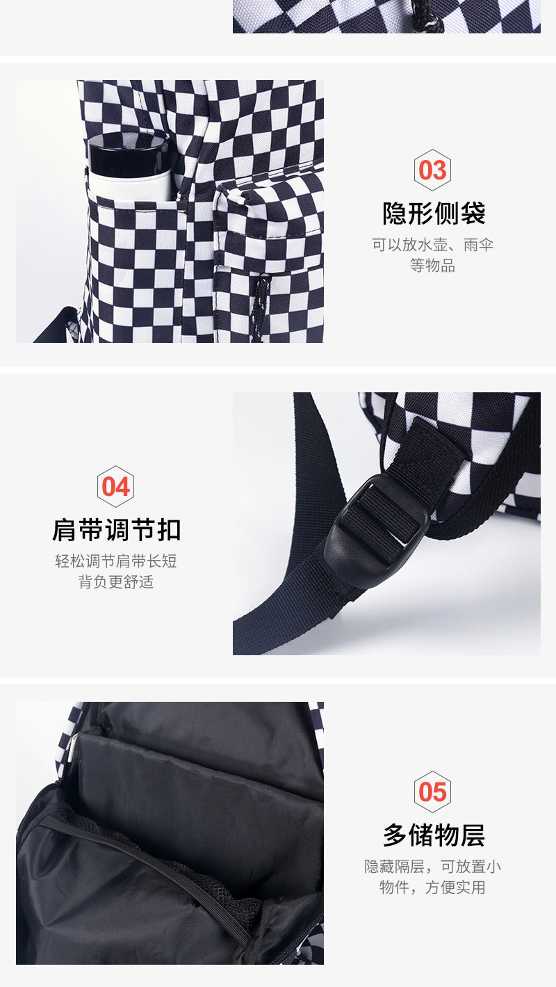 Wholesale of backpacks for male and female students, large capacity, casual, fashionable, checkerboard, lightweight backpacks, student backpacks