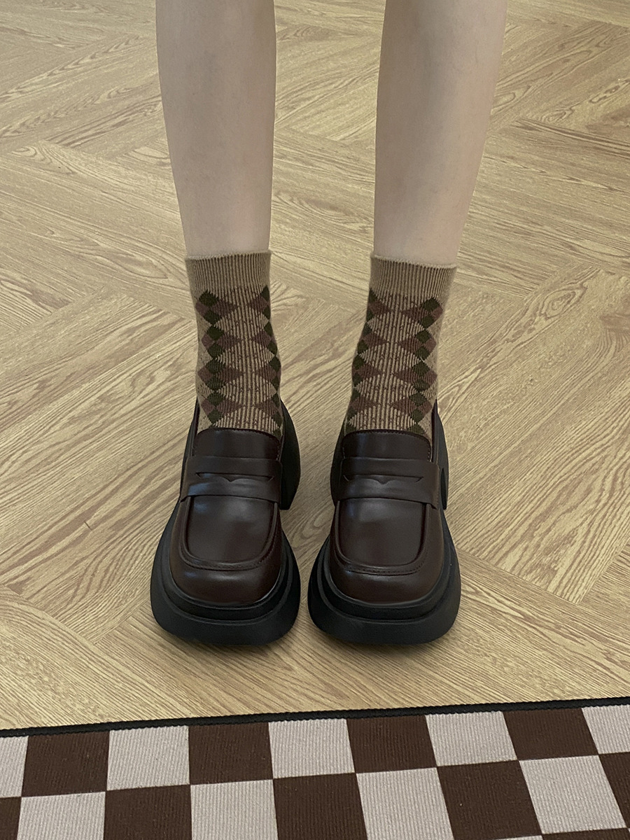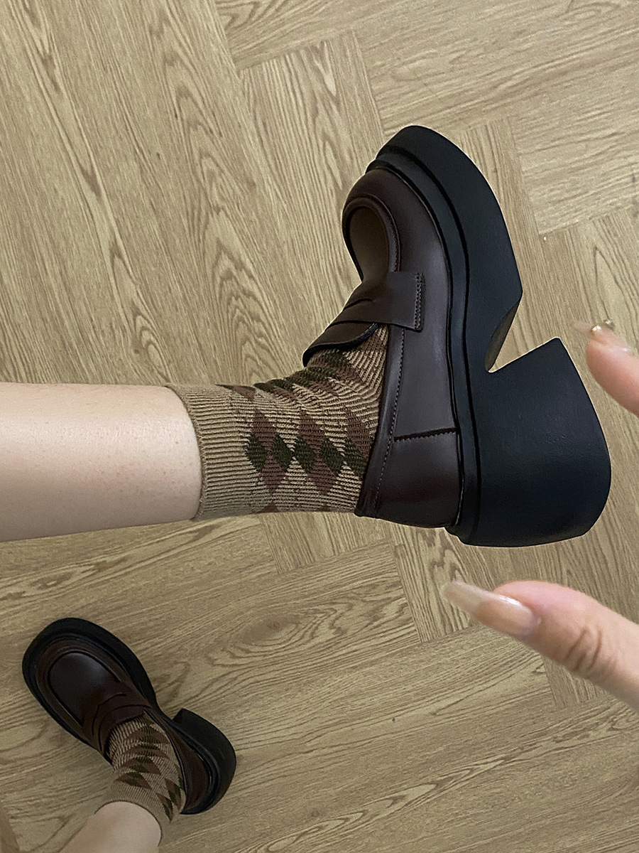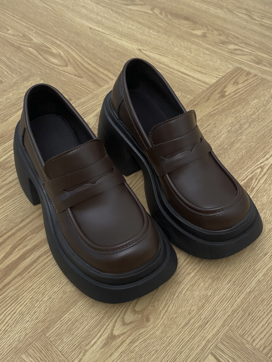 厚底增高法式棕色乐福鞋女2022新款秋冬季英伦百搭森系粗跟小皮鞋
