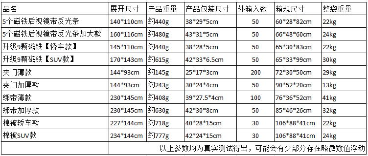 | Size | 5 Magnetic Rearview Mirrors With Reflective Strips, 5 Magnetic Rearview Mirrors With Reflective Strips Enlarged, Upgraded 9 Magnetic Sedan Small Sizes, Upgraded 9 Magnetic Sedan SUV Universal Large Sizes, Upgraded 9 Magnetic SUV Extra Large Sizes, Clip Door Thin Styles, Clip Door Thicker Styles, Tie Thin Styles, Tie Thicker Styles, Cotton Quilt Sedan Styles, Cotton Quilt SUV Styles, Enlarged Tie Styles With Engine Hood, New Nine Magnetic Cotton Quilt Thickened Off-road Sedan Universal Styles - Upgraded Four Sided Reflective Strips, New 12 Magnetic Thickened Off-road Sedan Universal Model - Upgraded Four Sided Reflective Strips |