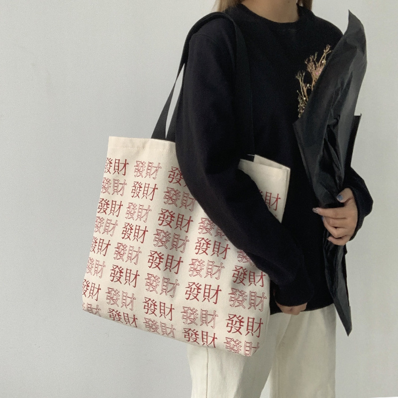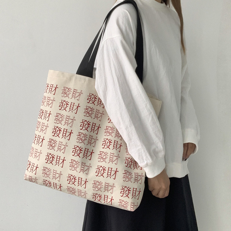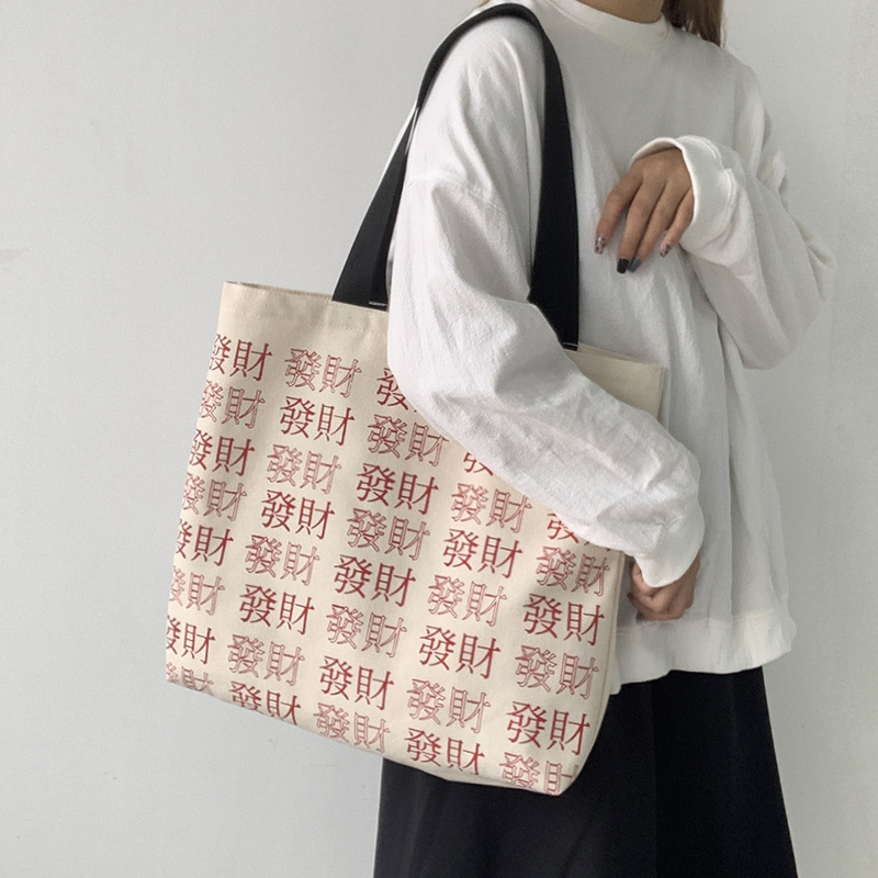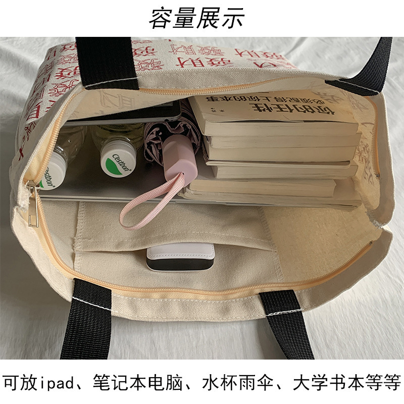 大容量夏天帆布包女单肩日系复古原宿风大学生书包ins布袋潮