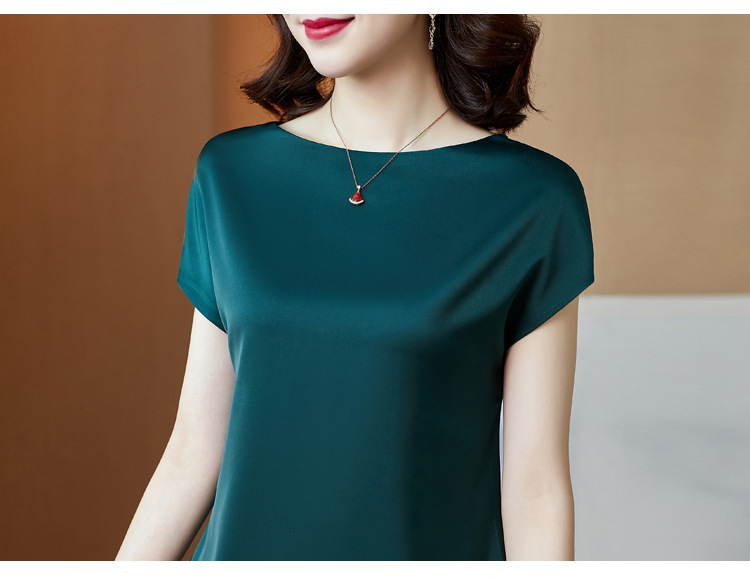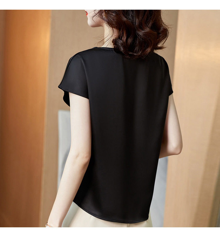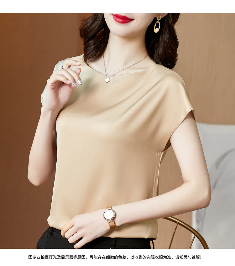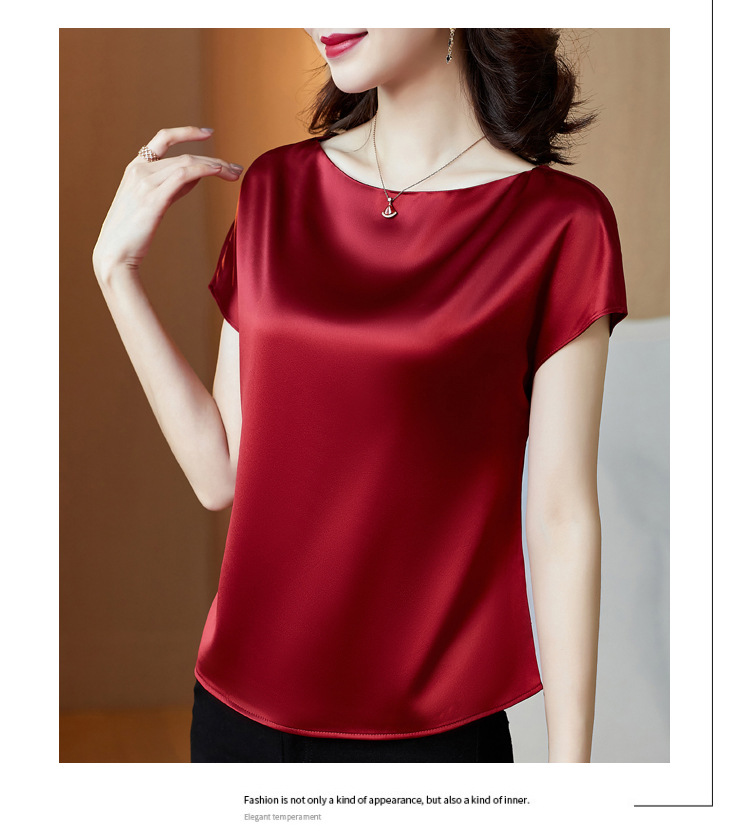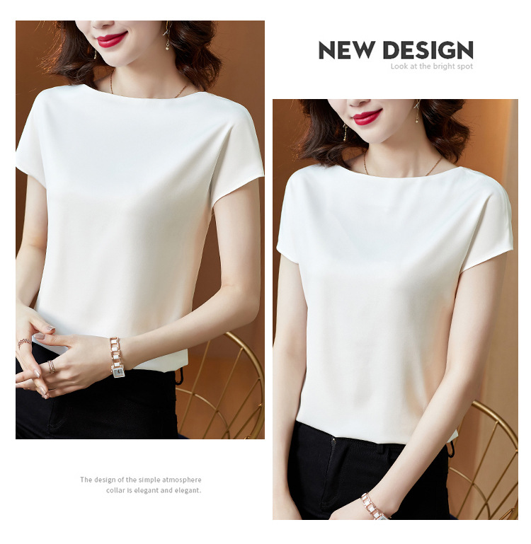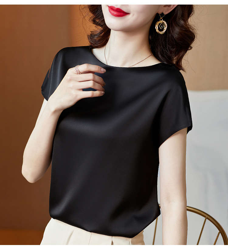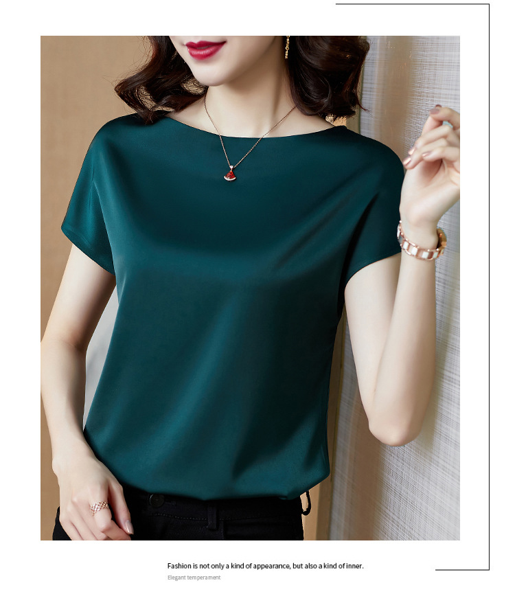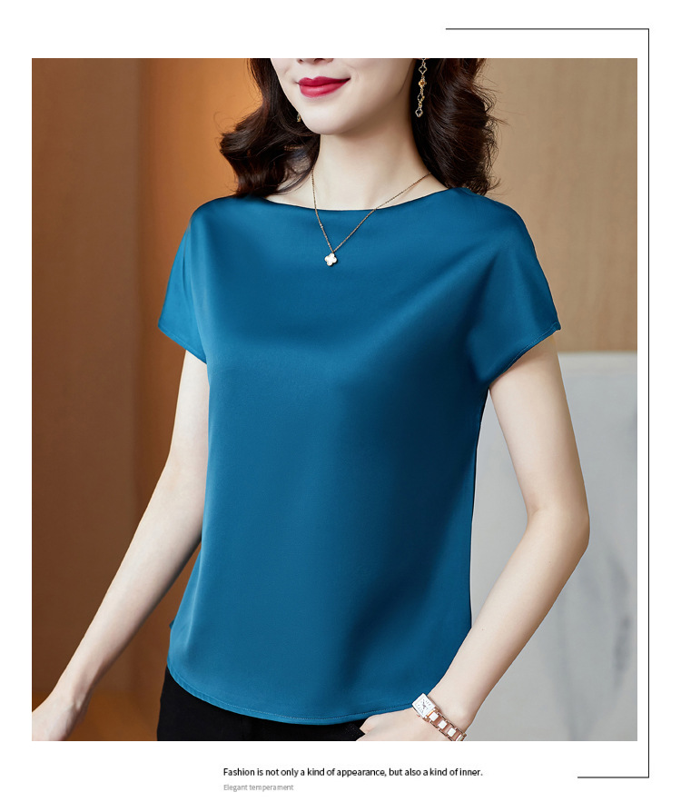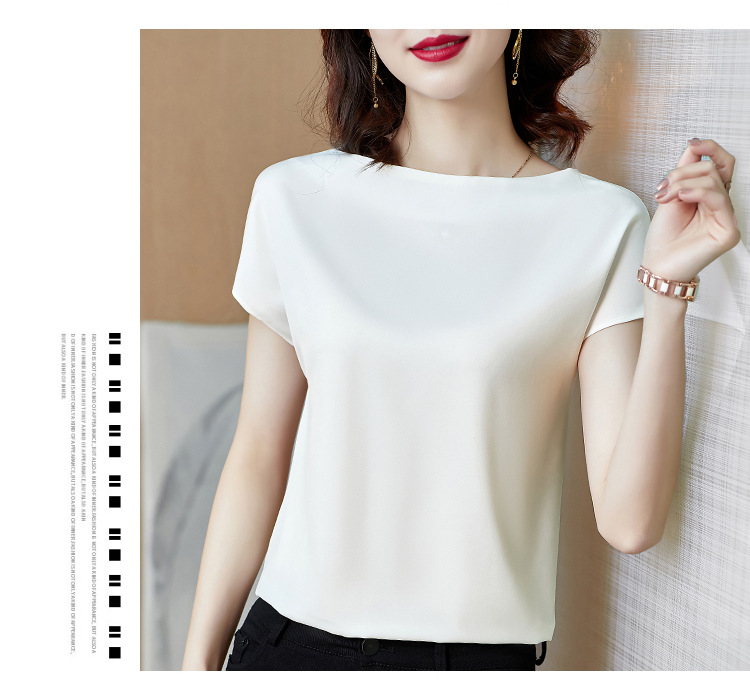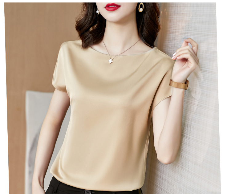 圆领短袖t恤女纯色桑蚕丝质感上衣大码宽松缎面打底衫一手货源批