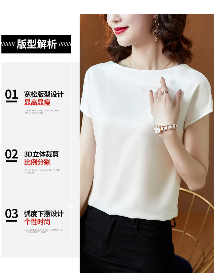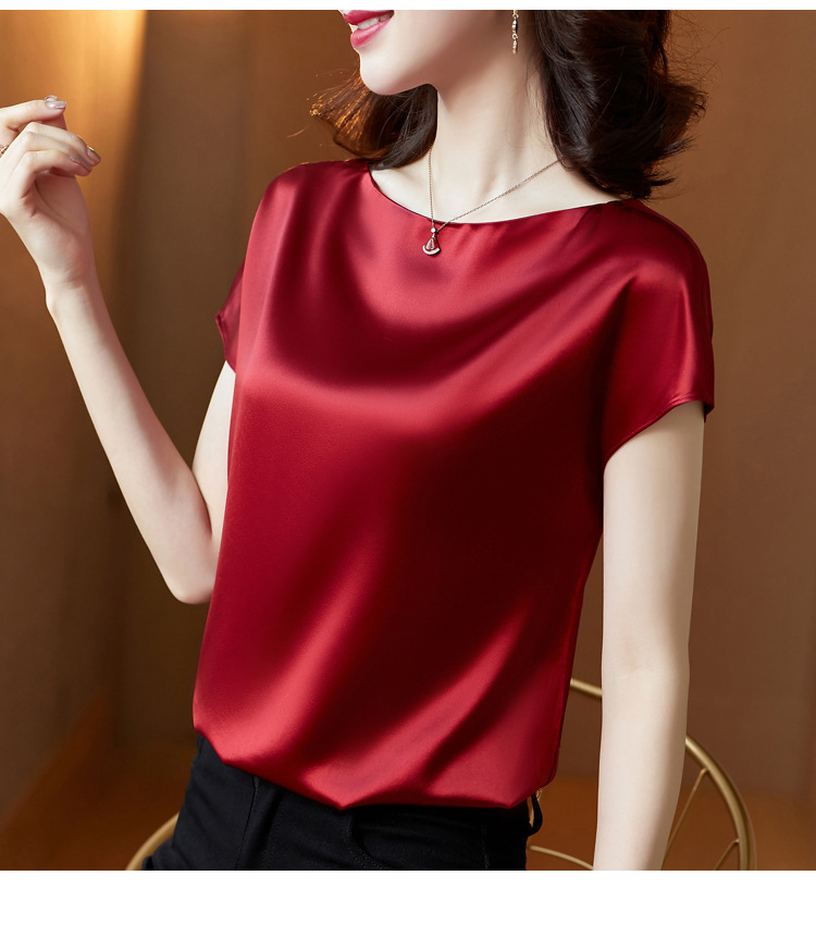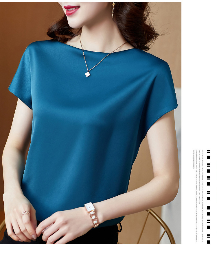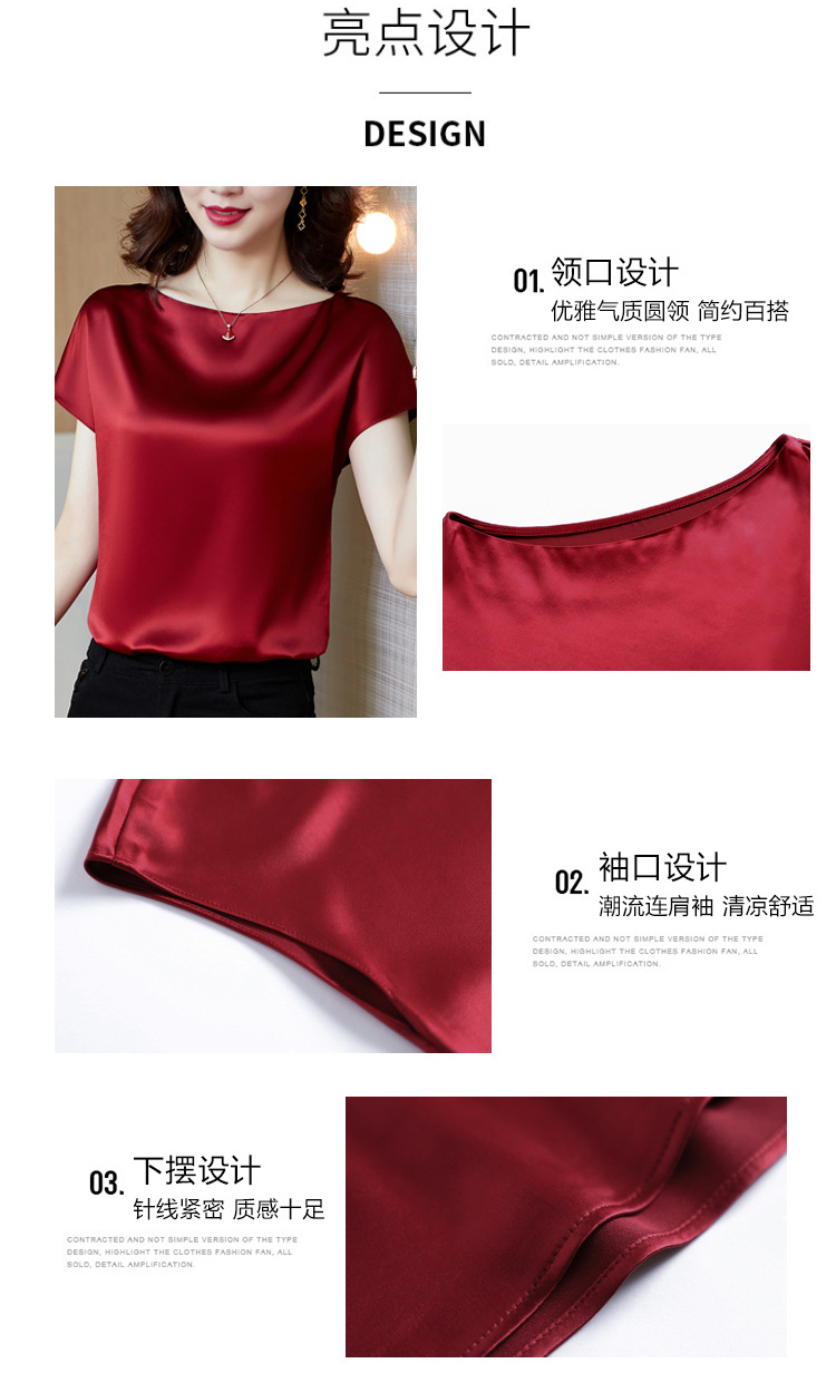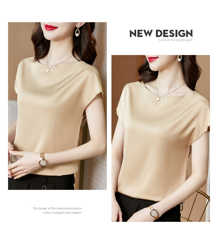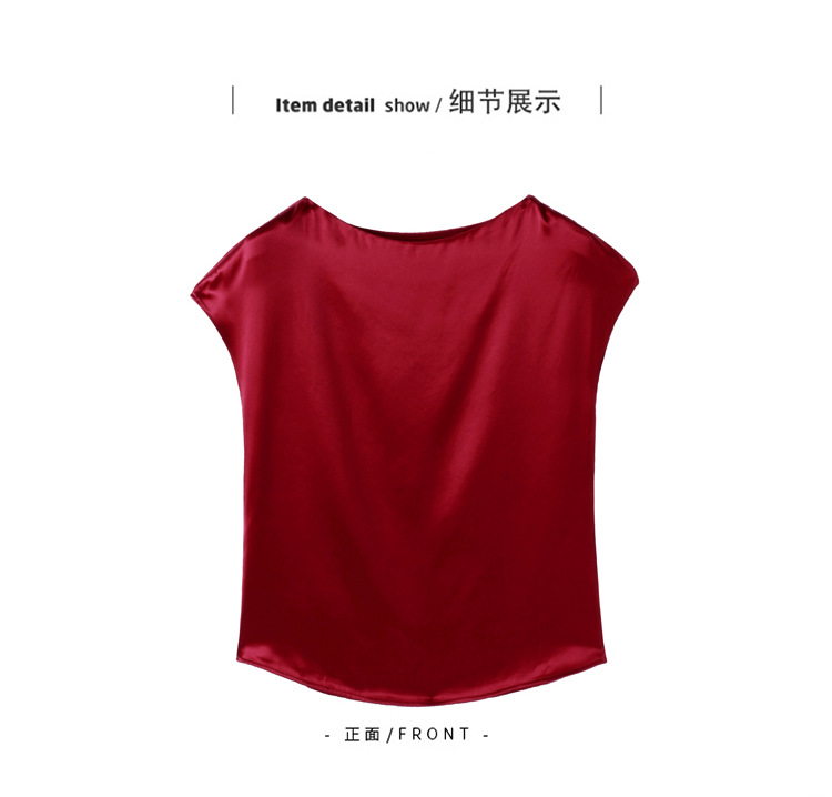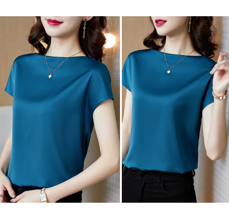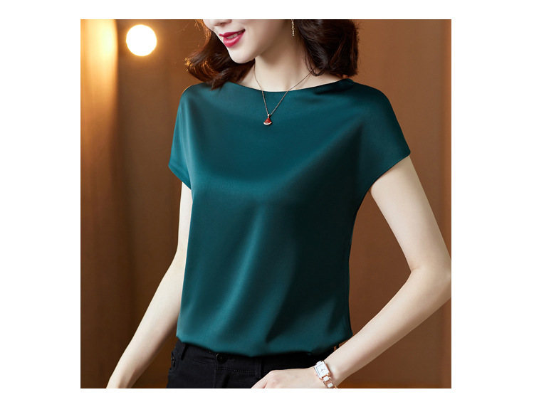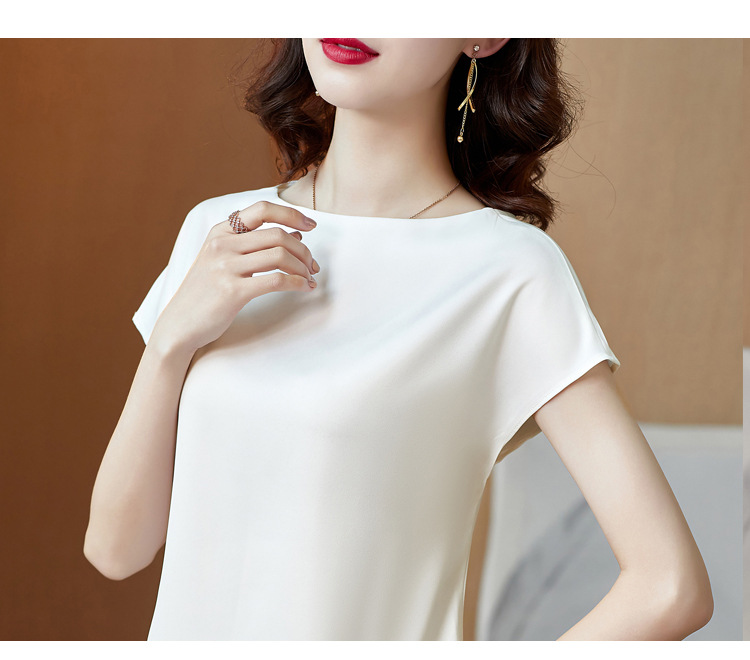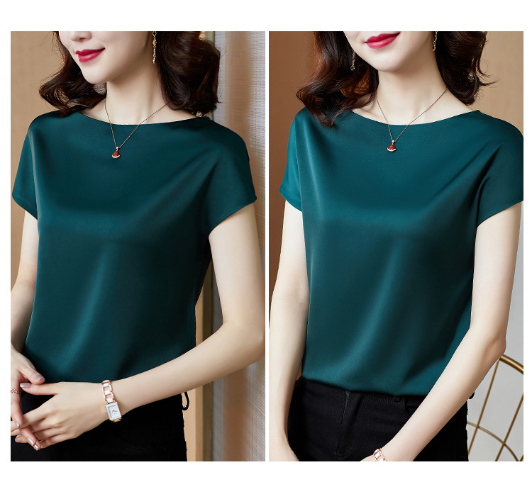 圆领短袖t恤女纯色桑蚕丝质感上衣大码宽松缎面打底衫一手货源批