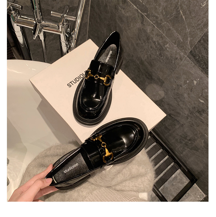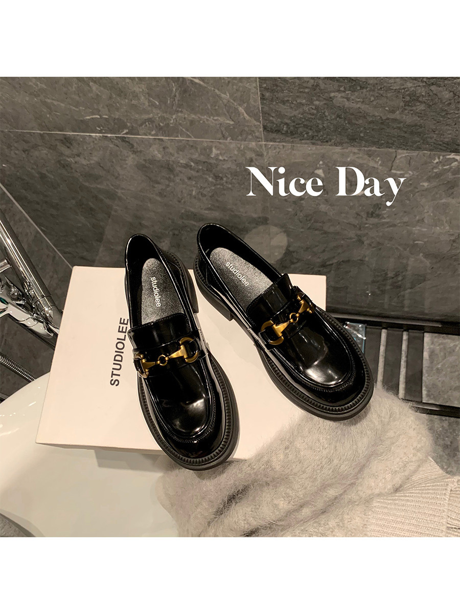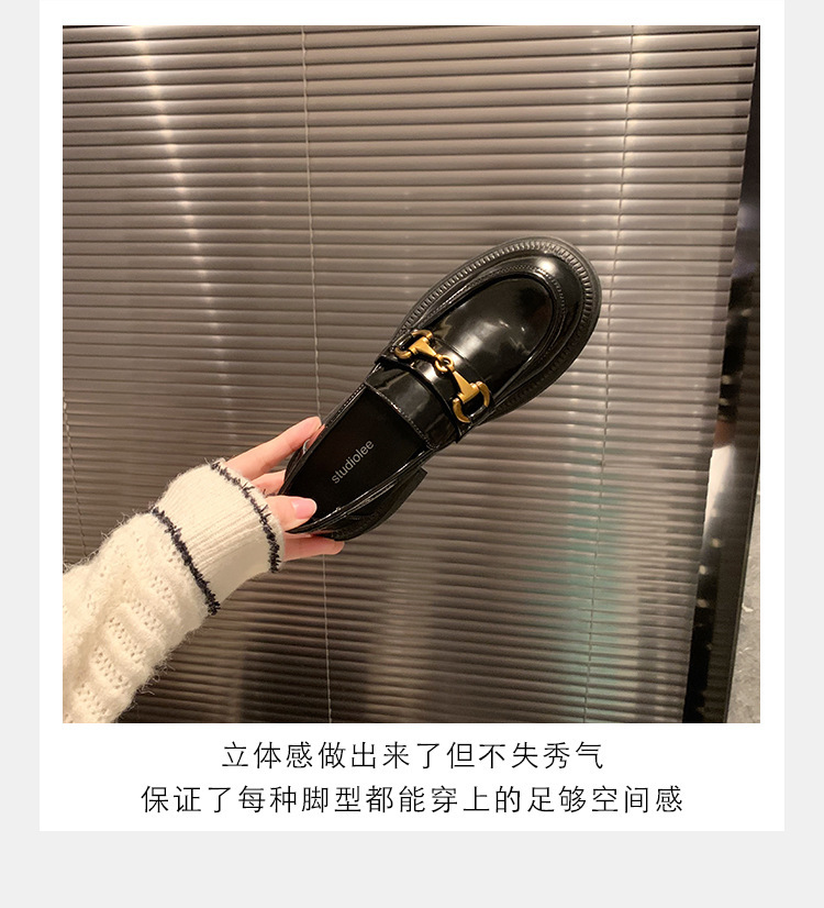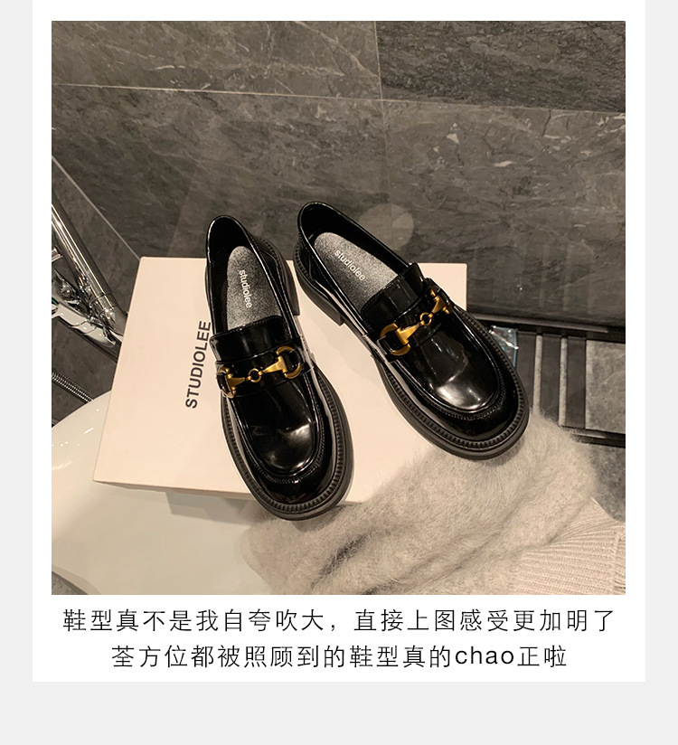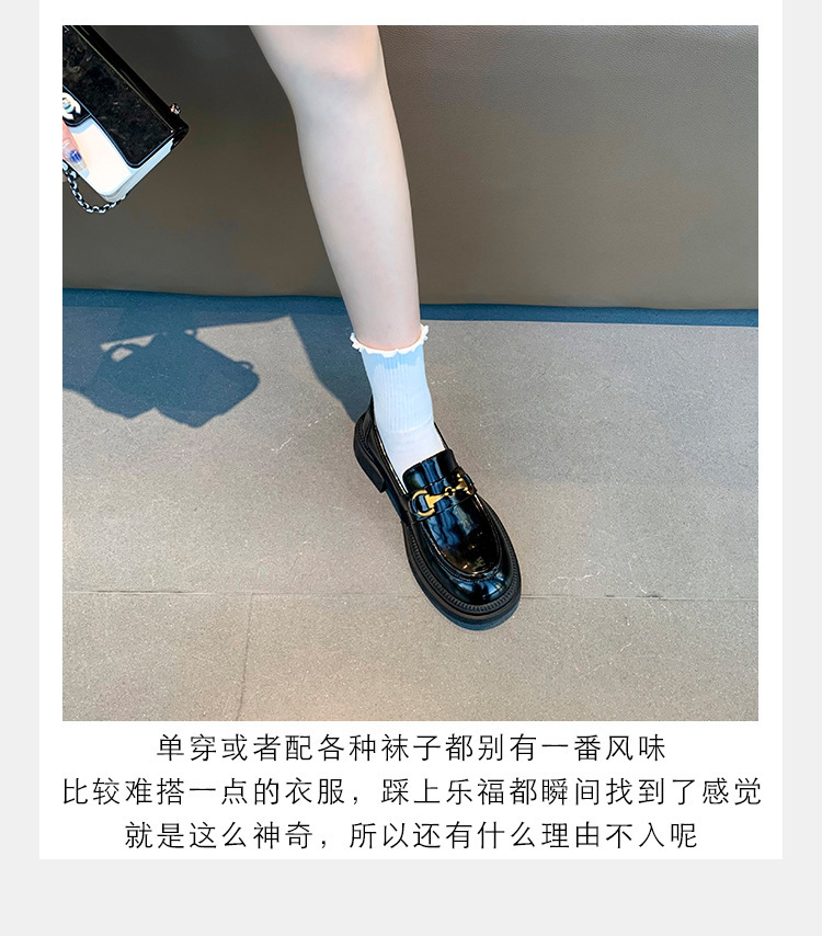 乐福鞋女马扣Loafer春秋2024年新款粗跟黑色小皮鞋英伦风单鞋批发