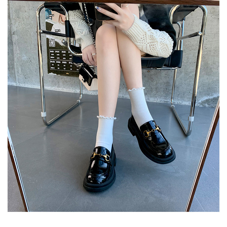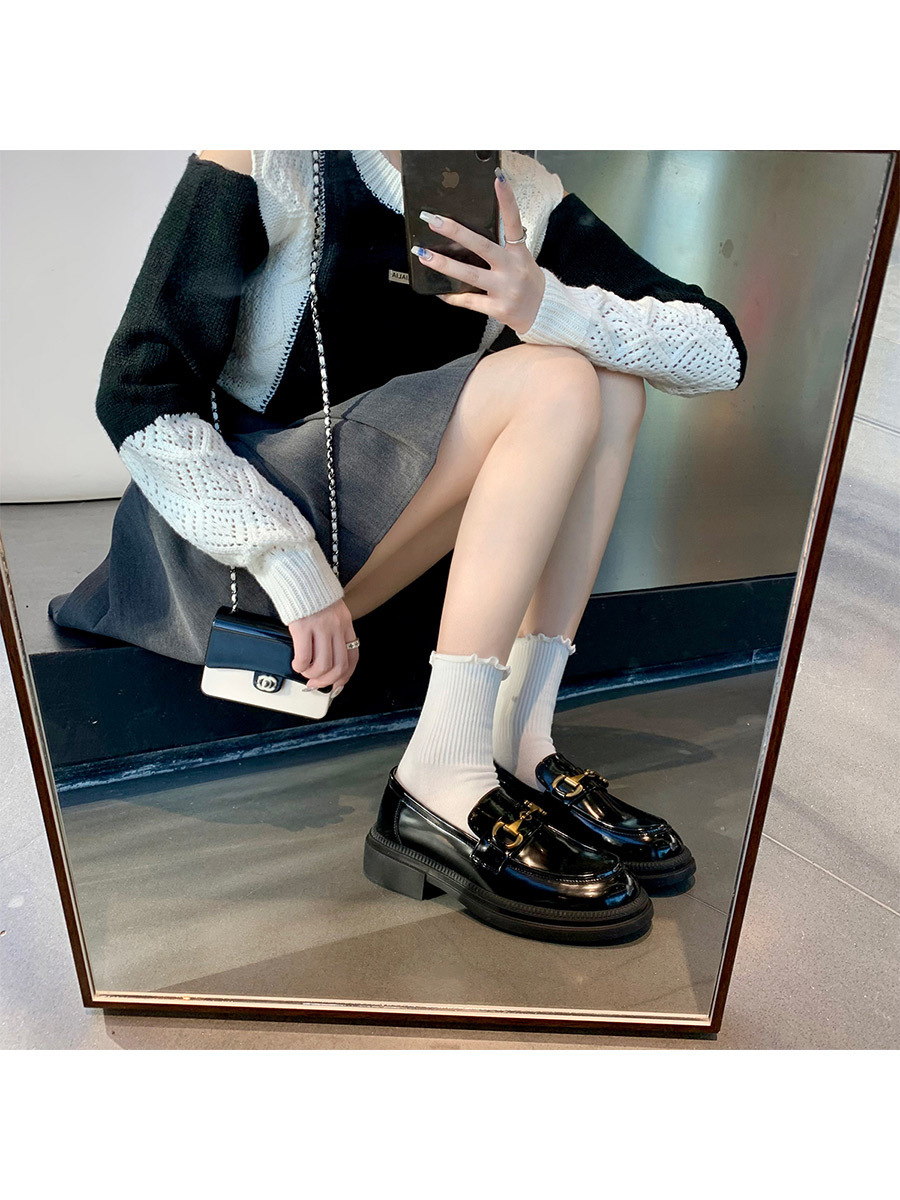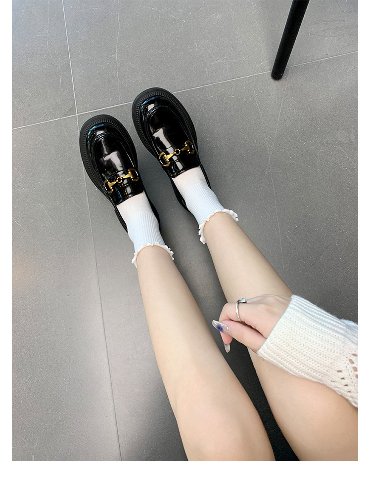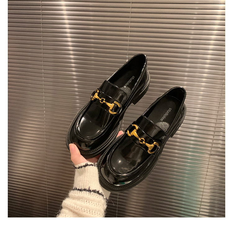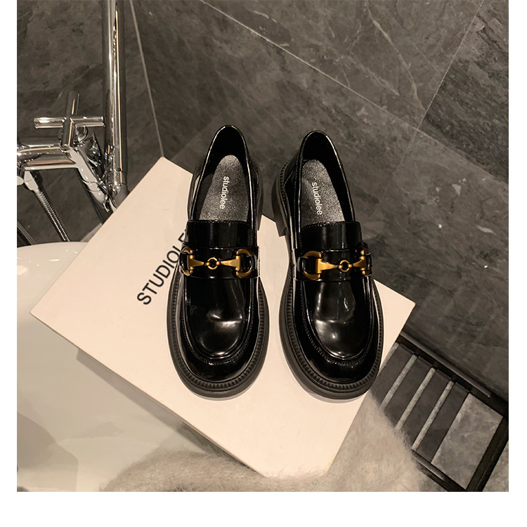 乐福鞋女马扣Loafer春秋2024年新款粗跟黑色小皮鞋英伦风单鞋批发