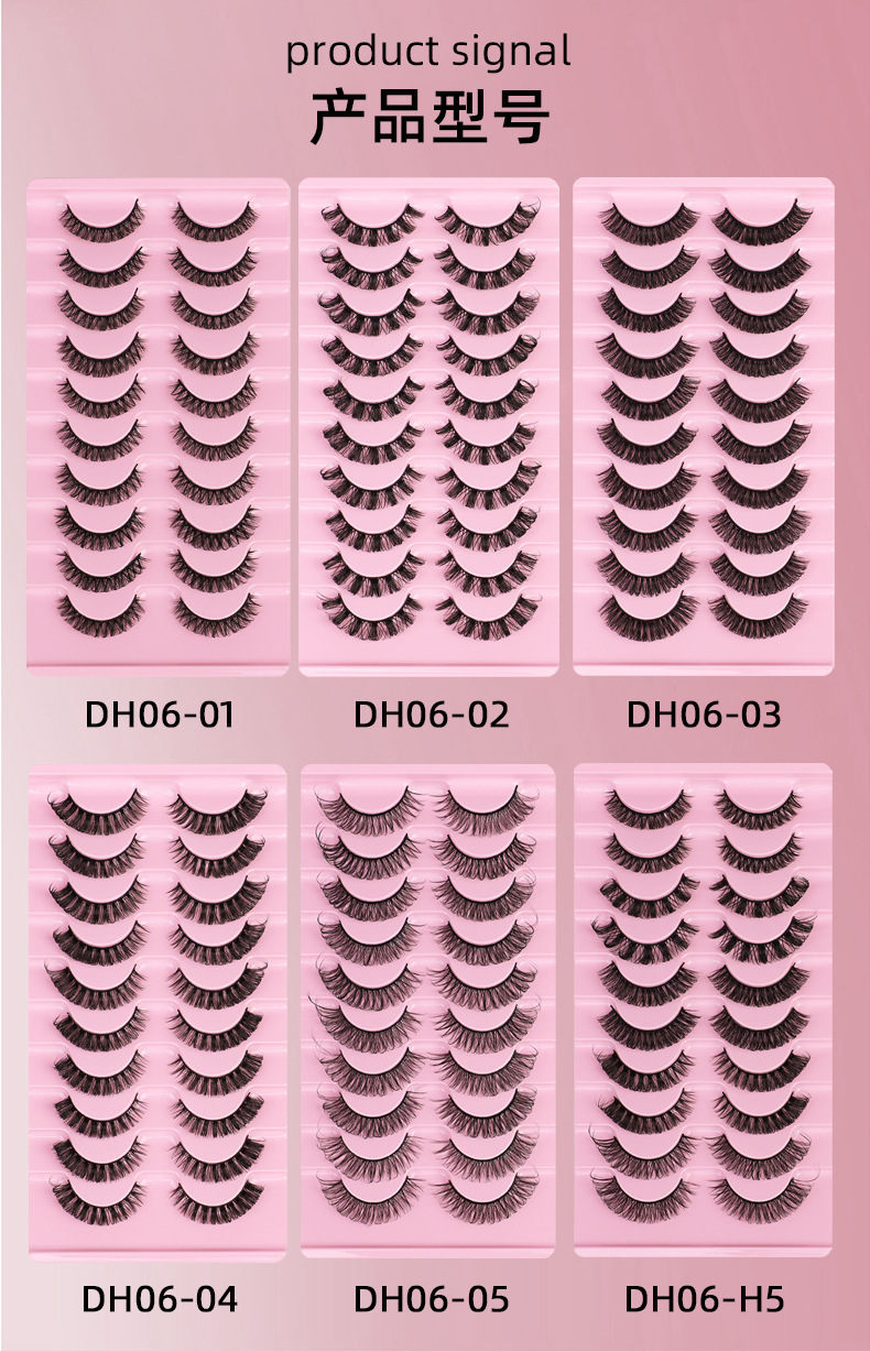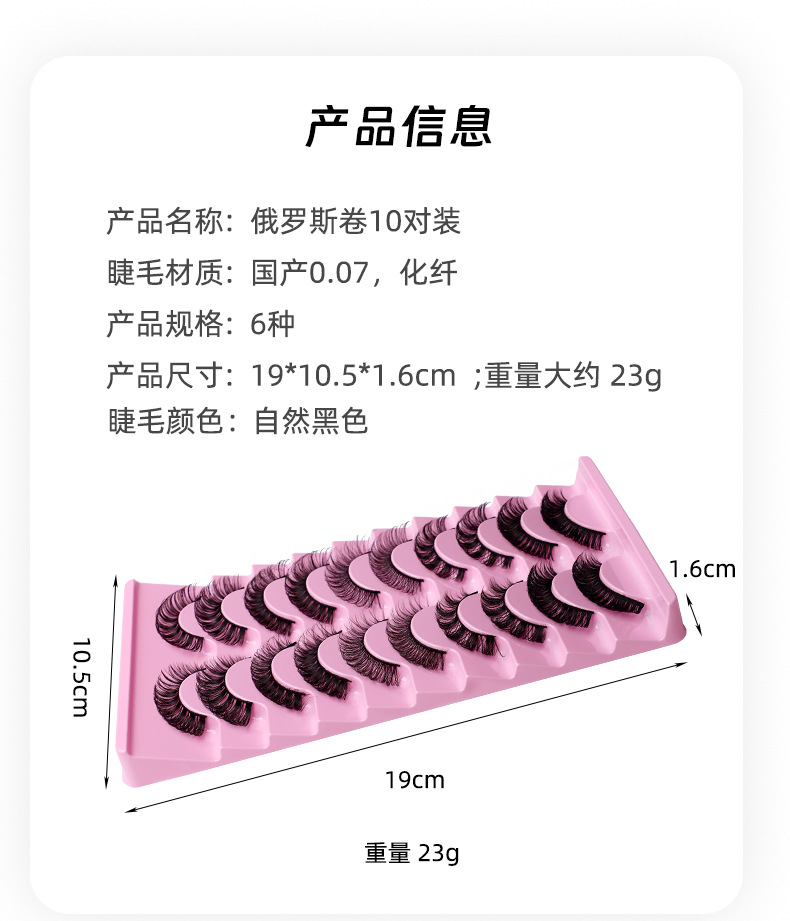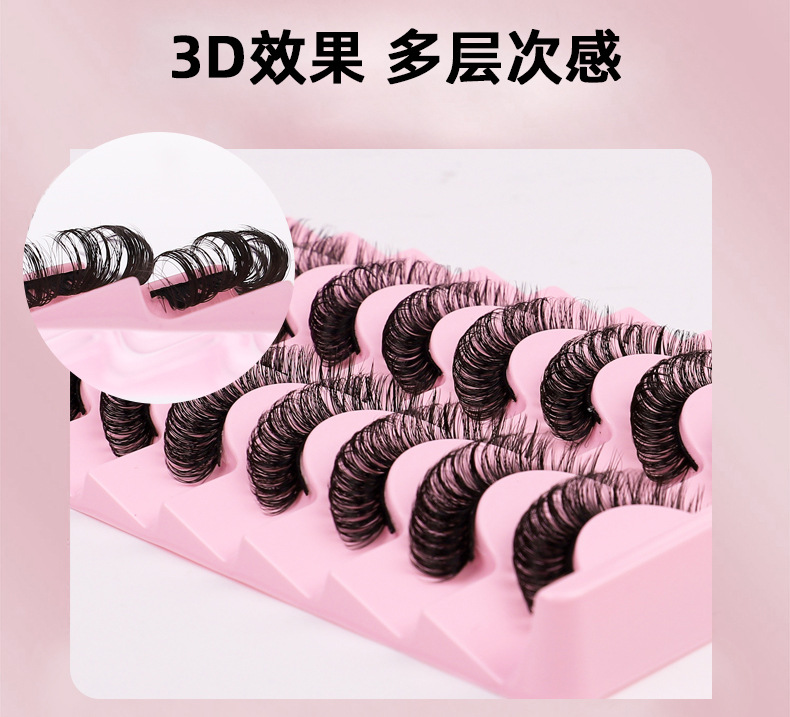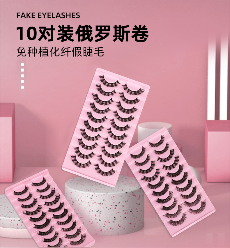 跨境爆款10对装欧美假睫毛eyelashes自然卷翘浓密化纤眼睫毛批发