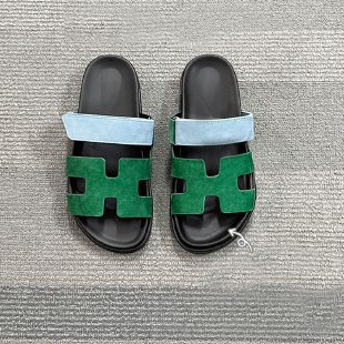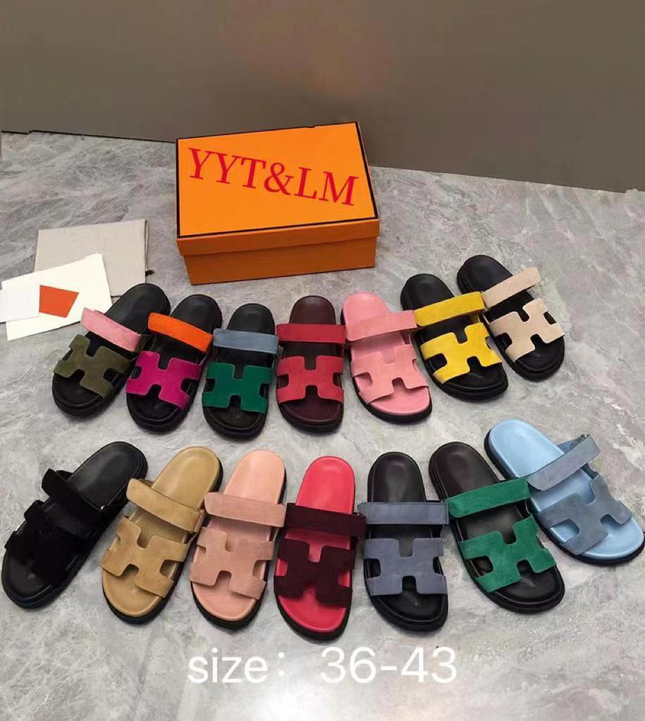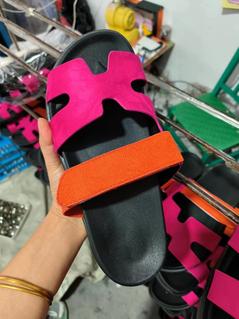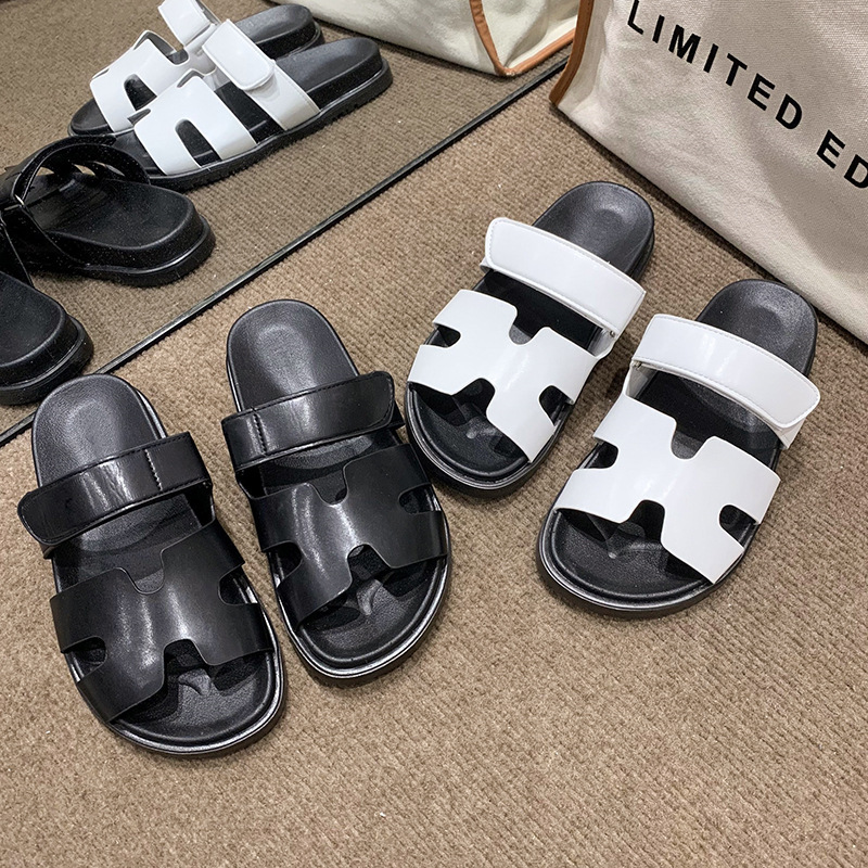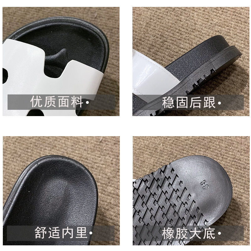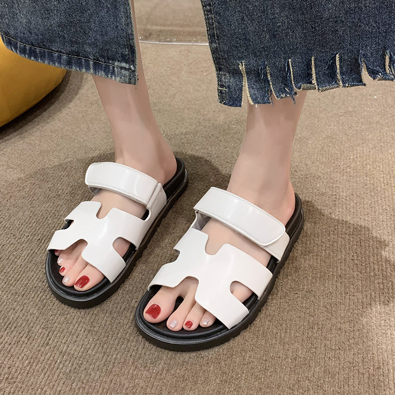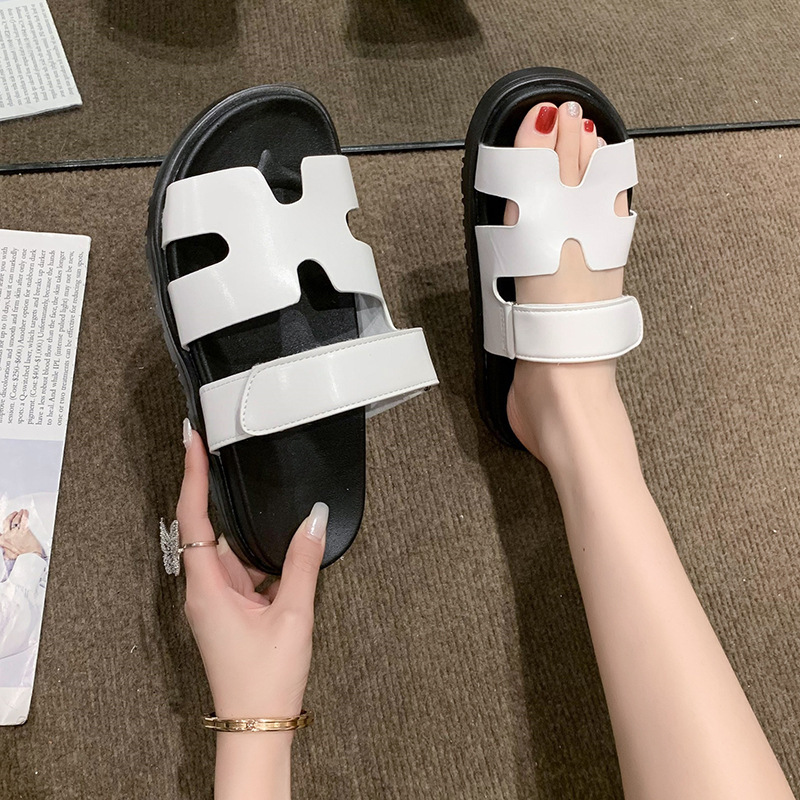 2023夏季新款外贸拖鞋女大码厚底一字魔术贴欧美休闲拼色slippers